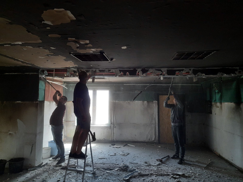 Mając na uwadze ogrom zniszczeń jaki powstał w wyniku pożaru, strażacy Komendy Miejskiej Państwowej Straży Pożarnej w Piekarach Śląskich podjęli w sierpniu br. inicjatywę wsparcia klubu w wyremontowaniu obiektu klubowego. W czasie wolnym od służby, własnoręcznie i nieodpłatnie, przeprowadzili prace remontowe obejmujące usunięcie spalonych ościeżnic drzwiowych, elementów podwieszanego sufitu oraz instalacji elektrycznej, skucie tynków i posadzek. Prace wykonywali przy użyciu sprzętu użyczonego przez sponsora klubu oraz własnego. Ponadto strażak posiadający stosowne uprawnienia dokona końcowego podłączenia nowej instalacji elektrycznej w obiekcie.
