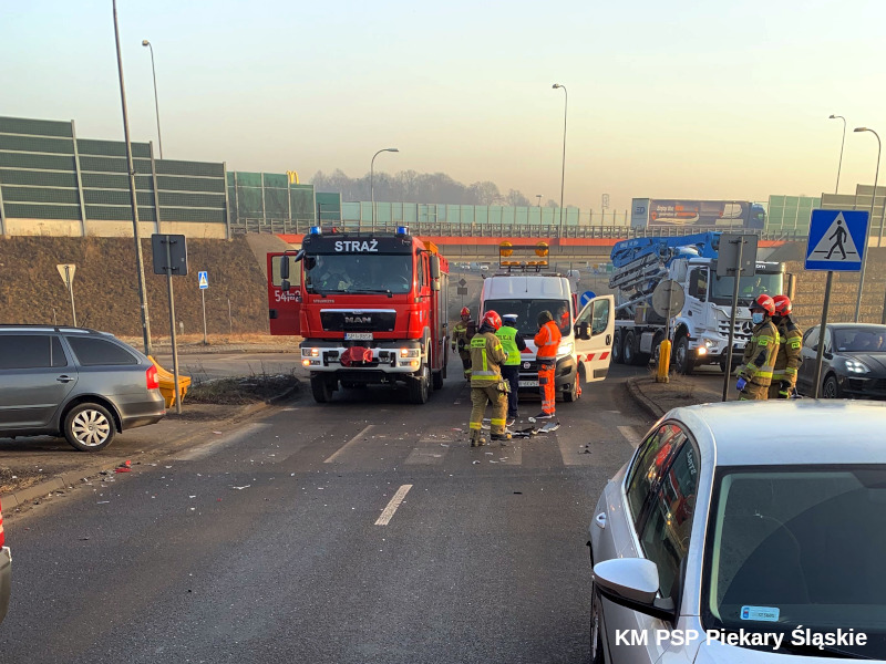 Po przybyciu zastępów straży pożarnej na miejsce zdarzenia i dokonaniu rozpoznania, kierujący działaniami ratowniczymi potwierdził, iż na przejściu dla pieszych doszło do zderzenia dwóch samochodów osobowych, z których jeden potrącił rowerzystę. Wraz z zastępami PSP na miejsce zdarzenia przybył zespół ratownictwa medycznego, którego ratownicy udzielili pomocy poszkodowanemu rowerzyście, a następnie przetransportowali go do Wojewódzkiego Szpitala Chirurgii Urazowej w Piekarach Śląskich. Kierujący samochodami osobowymi nie wymagali pomocy medycznej.