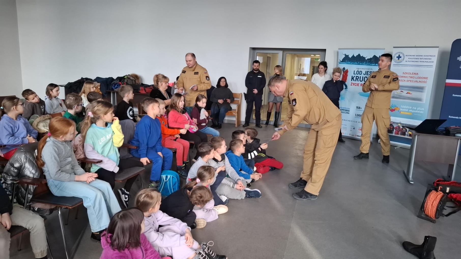 W spotkaniu wzięli również udział ratownicy WOPR. Podczas spotkań funkcjonariusze ostrzegli uczniów, aby pod żadnym pozorem nie wchodzili na zamarznięty lód przy rzekach, zbiornikach, przypominając, że pokrywa lodowa w każdym miejscu jest inna i w każdej chwili lód pod stopami może się załamać. Omówili zagrożenie jakim jest czad i co to jest czujka tlenku węgla oraz dymu. Podczas spotkań rozdano ulotki dot. zagrożeń i postępowania podczas zatruć tlenkiem węgla.