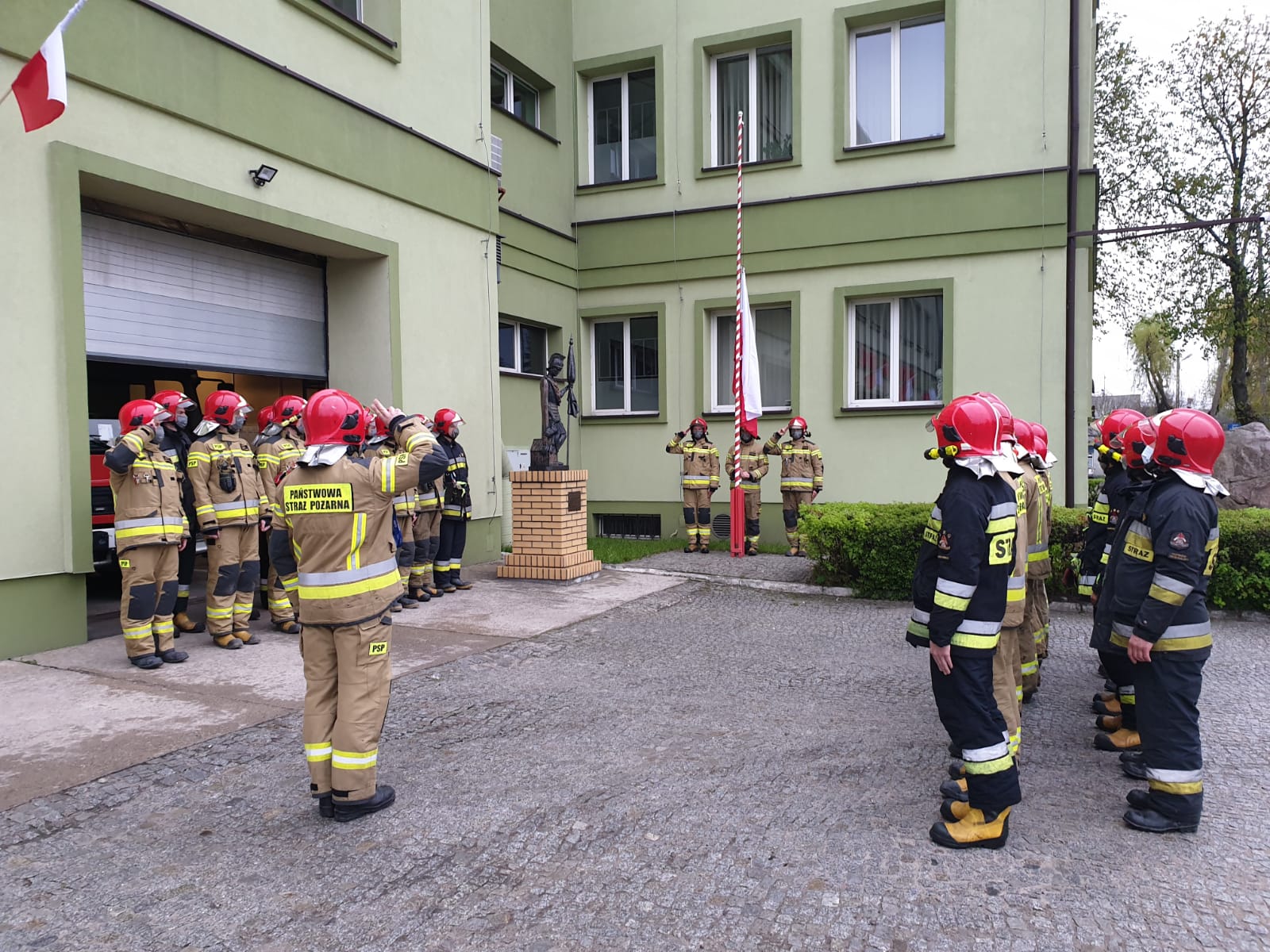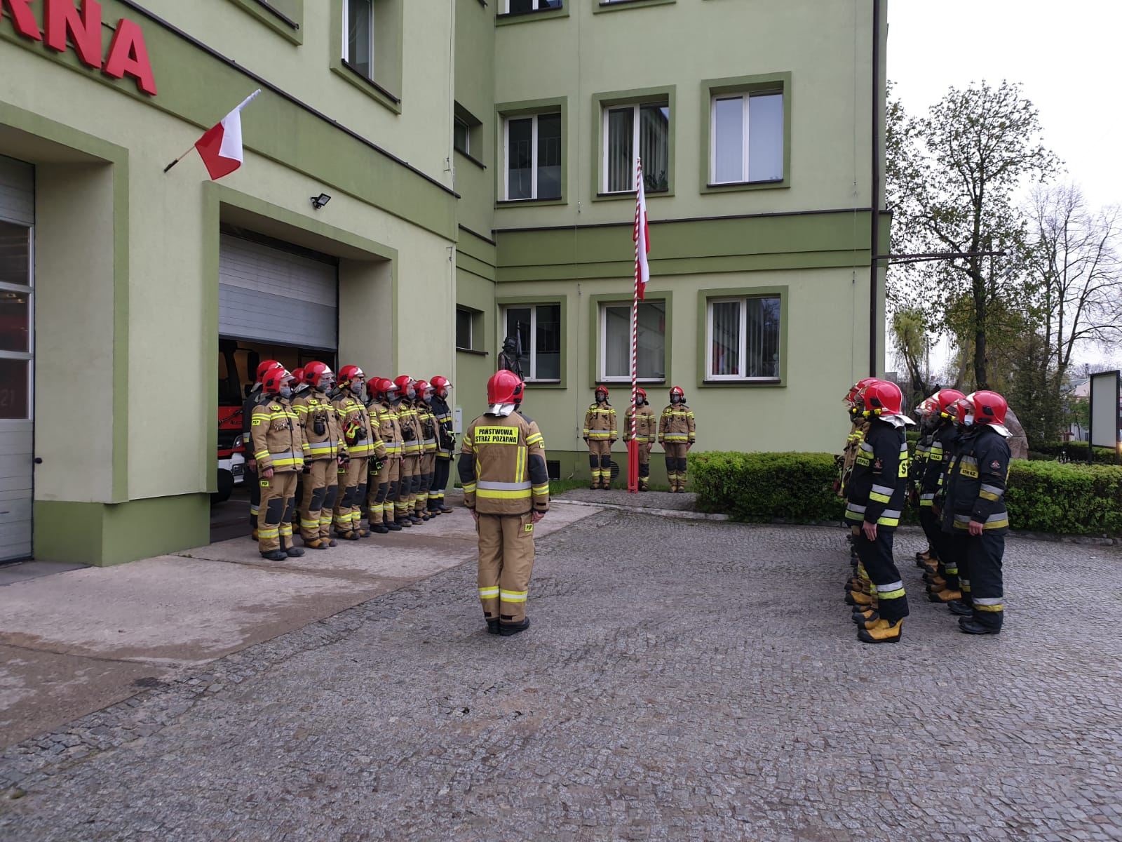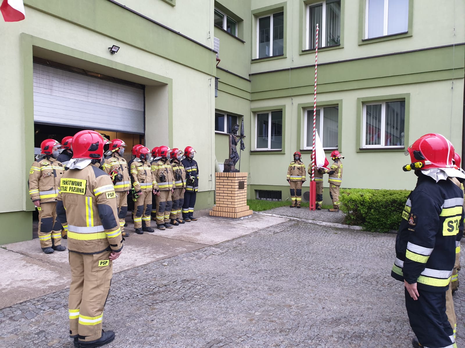 Dzień Flagi Rzeczpospolitej Polskiej został uczczony przez strażaków Komendy Miejskiej Państwowej Straży pożarnej w Piotrkowie Trybunalskim poprzez uroczyste podniesienie flagi państwowej na maszt w czasie zmiany służby.