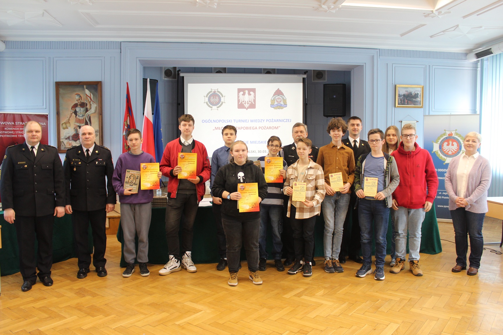 W dniu 30 marca br. w Komendzie Miejskiej PSP w Piotrkowie Tryb. zostały przeprowadzone miejskie eliminacje do XLV Edycji Ogólnopolskiego Turnieju Wiedzy Pożarniczej pod hasłem „Młodzież zapobiega pożarom”. W eliminacjach wzięło udział 26 uczniów szkół podstawowych oraz ponadpodstawowych z terenu miasta Piotrkowa Trybunalskiego. Patronatem honorowym eliminacji był Prezydent Miasta Piotrkowa Trybunalskiego Krzysztof Chojniak, który ufundował nagrody główne - książki.