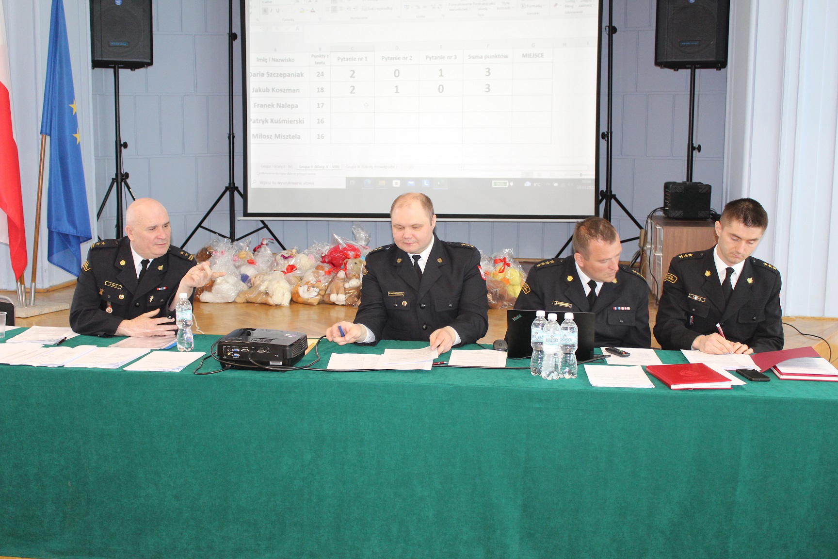 Wręczenia nagród i dyplomów dla finalistów konkursu dokonali: Komendant Miejski PSP w Piotrkowie Trybunalskim bryg. Paweł Dela, Prezes Oddziału Ratownictwa Wodnego OSP w Piotrkowie Trybunalskim st. bryg. w st. spoczynku Włodzimierz Kapiec oraz Pani Renata Sosnowska - Nowak z Referatu Zarządzania Kryzysowego i Obrony Urzędu Miasta.