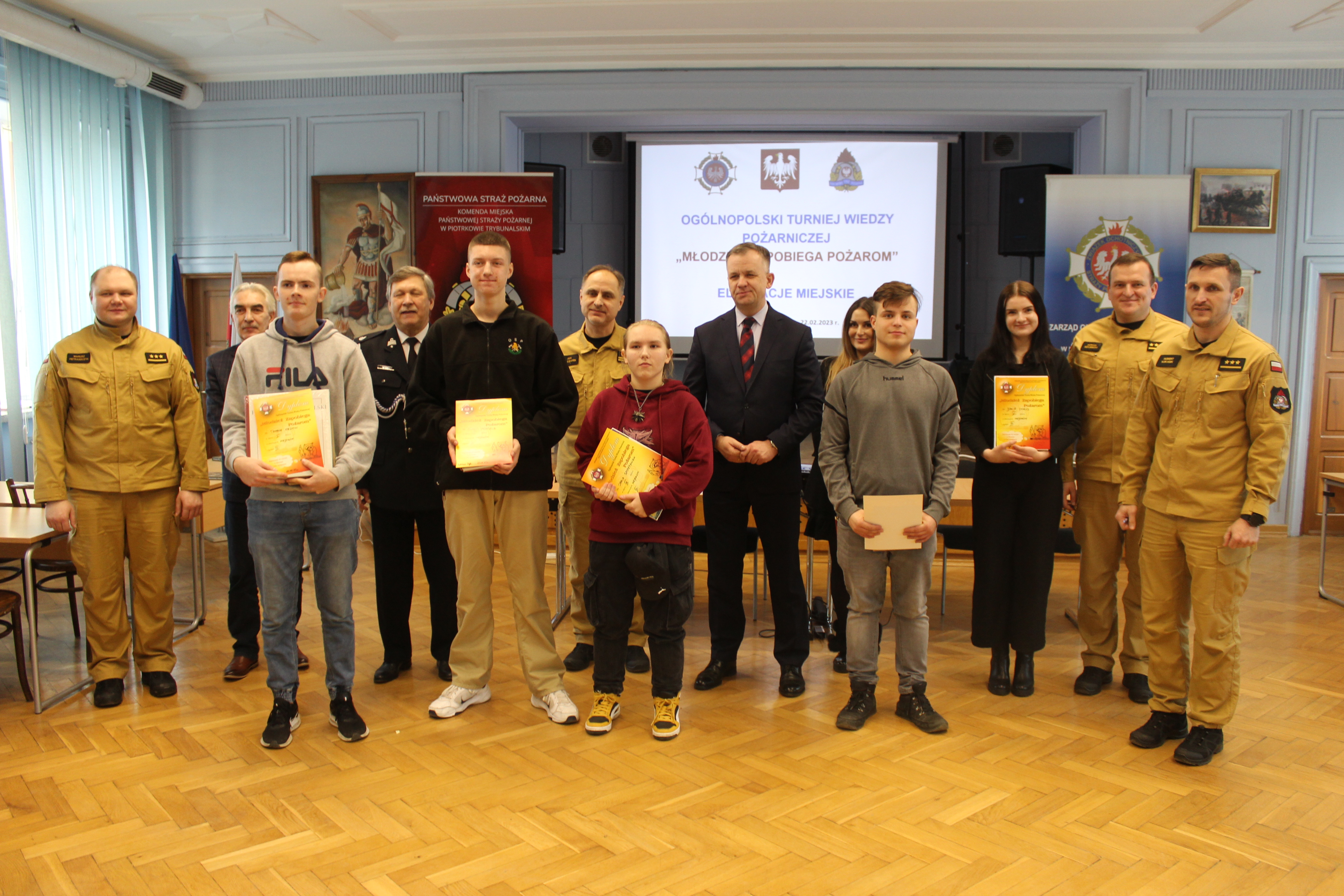 W dniu 22 lutego br. w Komendzie Miejskiej PSP w Piotrkowie Tryb. zostały przeprowadzone miejskie eliminacje do Ogólnopolskiego Turnieju Wiedzy Pożarniczej pod hasłem „Młodzież zapobiega pożarom”. W eliminacjach wzięło udział 27 uczniów szkół podstawowych oraz ponadpodstawowych z terenu miasta Piotrkowa Trybunalskiego. Patronatem honorowym eliminacji był Prezydent Miasta Piotrkowa Trybunalskiego Krzysztof Chojniak, który ufundował nagrody główne - książki.