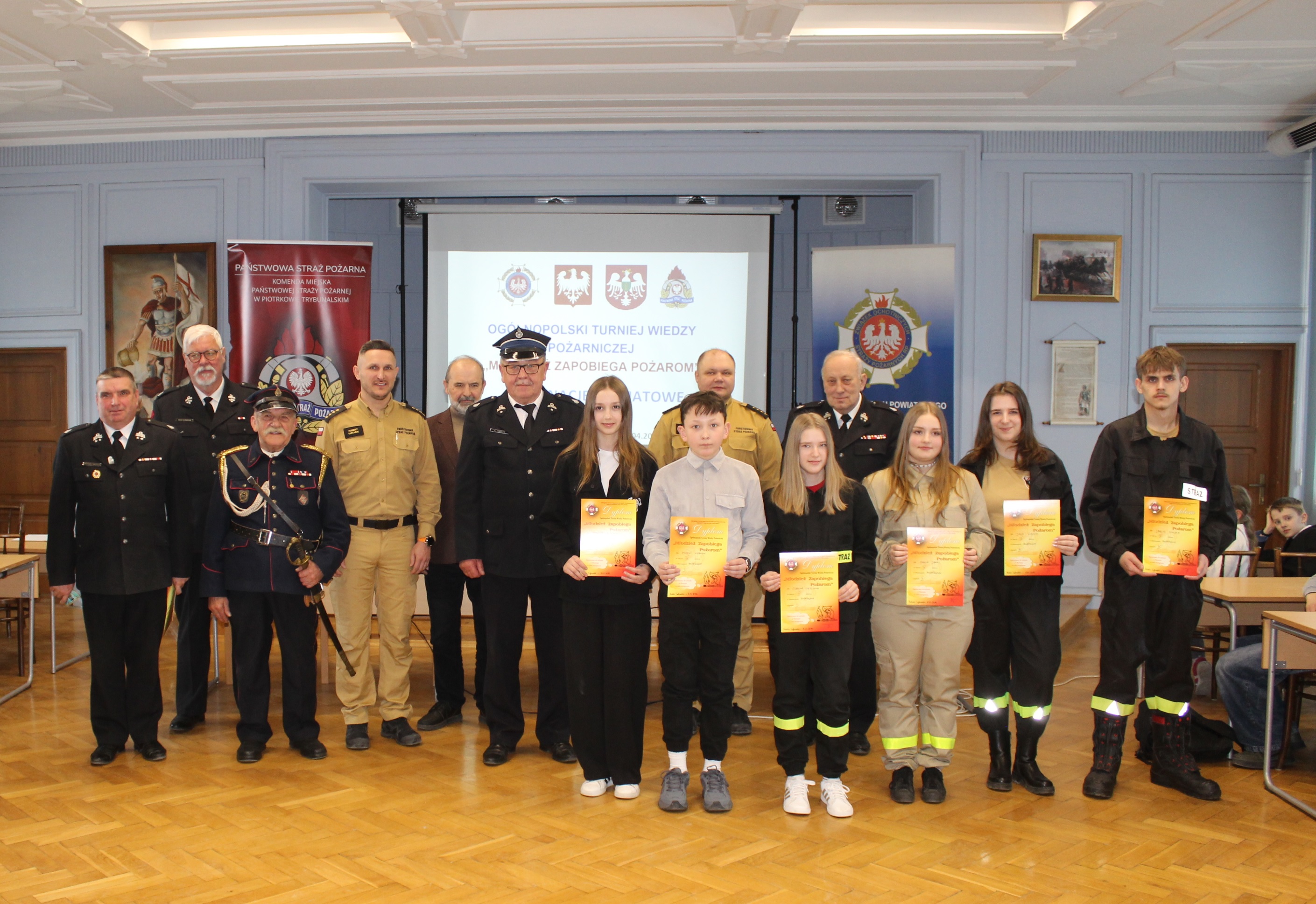 Wręczenia nagród i dyplomów dla finalistów konkursu dokonali: Prezes Zarządu Oddziału Wojewódzkiego Związku OSP RP woj. Łódzkiego nadbrygadier w st. spoczynku Tadeusz Karcz, Z-ca Komendanta Miejskiego PSP w Piotrkowie Trybunalskim st. bryg. Jan Mielczarek, bryg. w st. spocz. Dariusz Lorenc, dh Ryszard Mazurkiewicz, dh Marek Rakoczy.