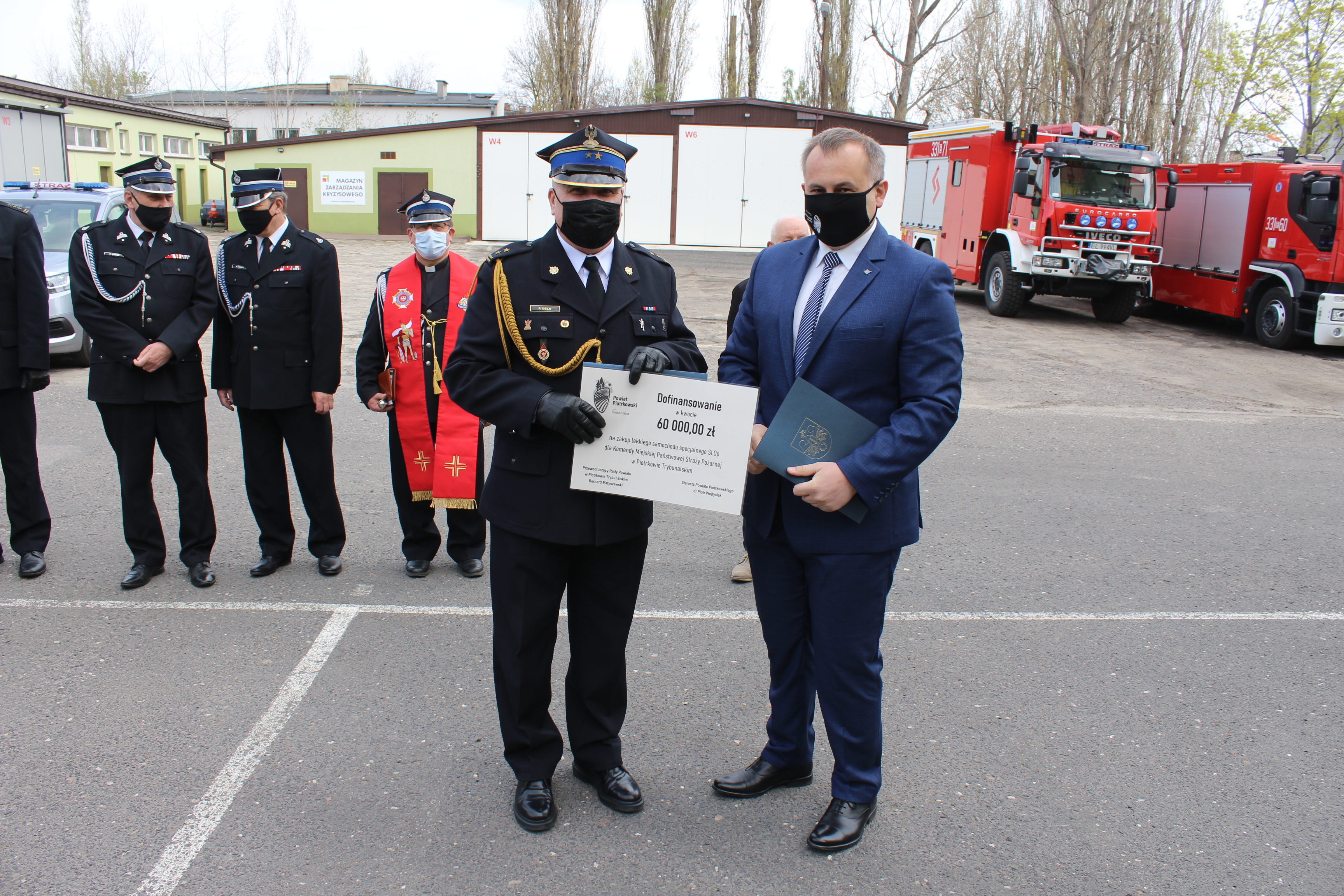 Starosta wręczył Komendantowi Miejskiemu PSP w Piotrkowie Trybunalskim symboliczny bon
