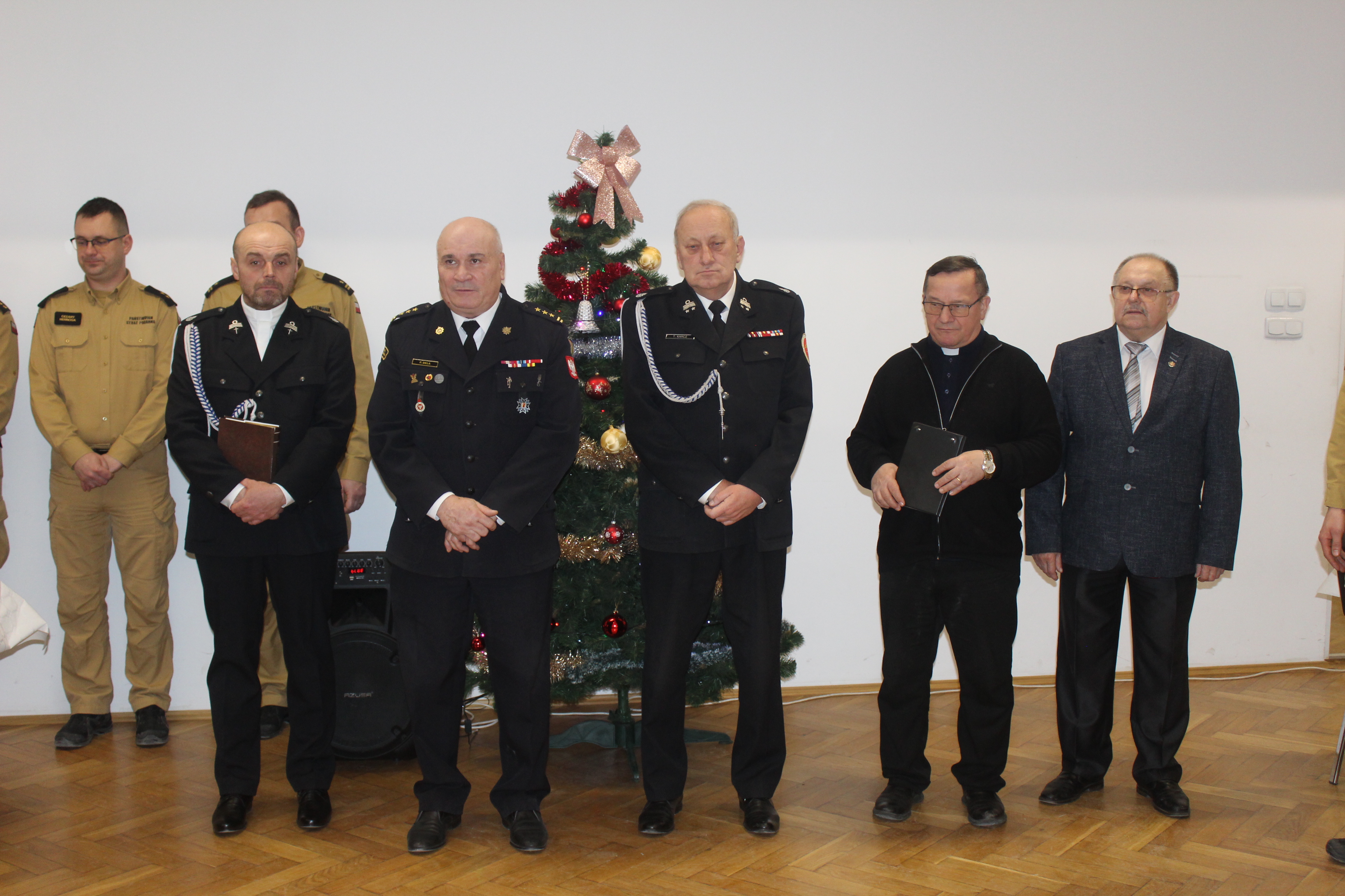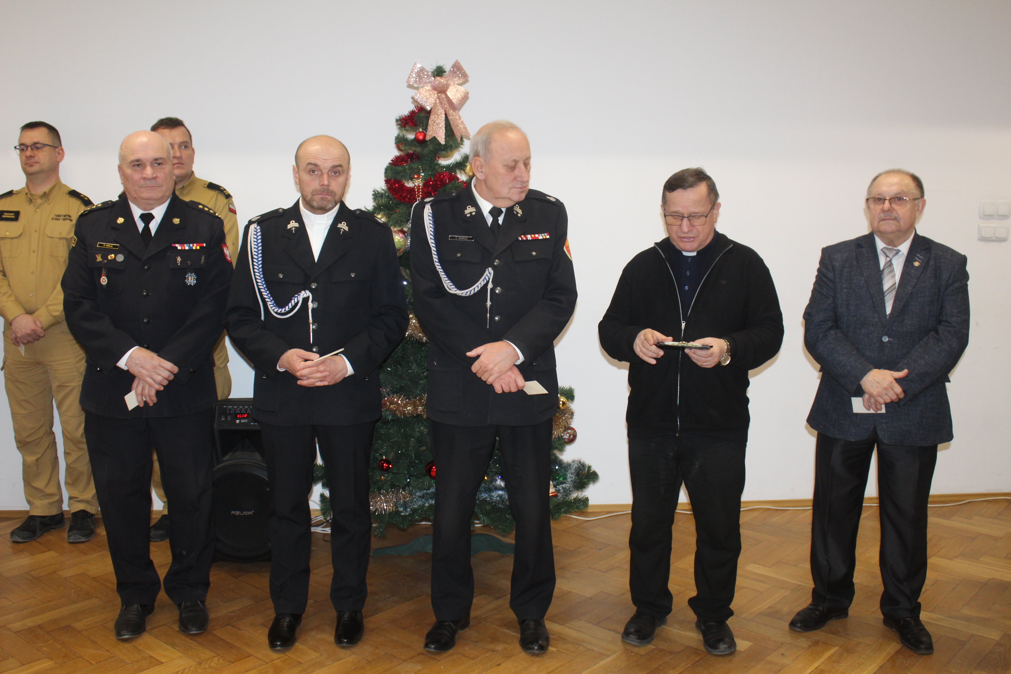 Kapelan Powiatowy Strażaków ks. Jacek Tyluś oraz ks. Prałat Grzegorz Gogol pokierowali wigilijnymi obrzędami, po których nastąpiło wspólne przełamanie się opłatkiem oraz spożywanie wigilijnych potraw.