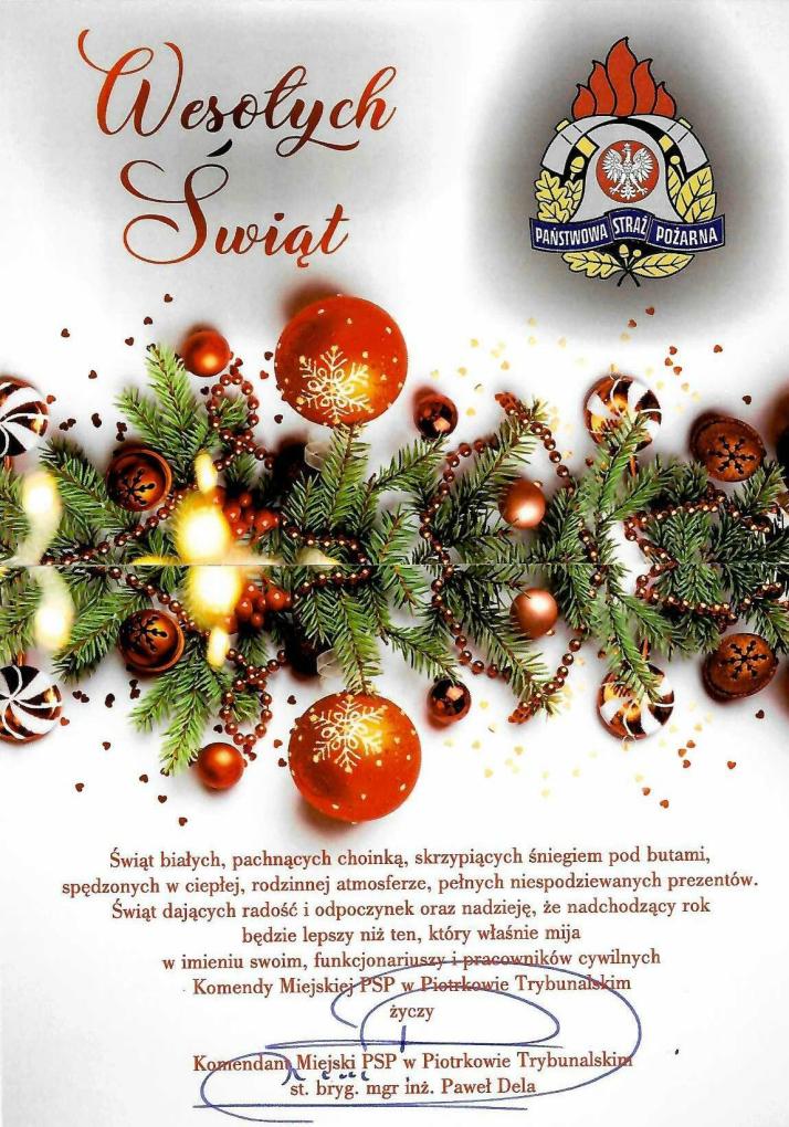 Życzenia Świąteczne Komendanta Miejskiego PSP w Piotrkowie Trybunalskim 24.12.2024 Zdjęcia (1) Pokaż zdjęcie 1 z galerii.