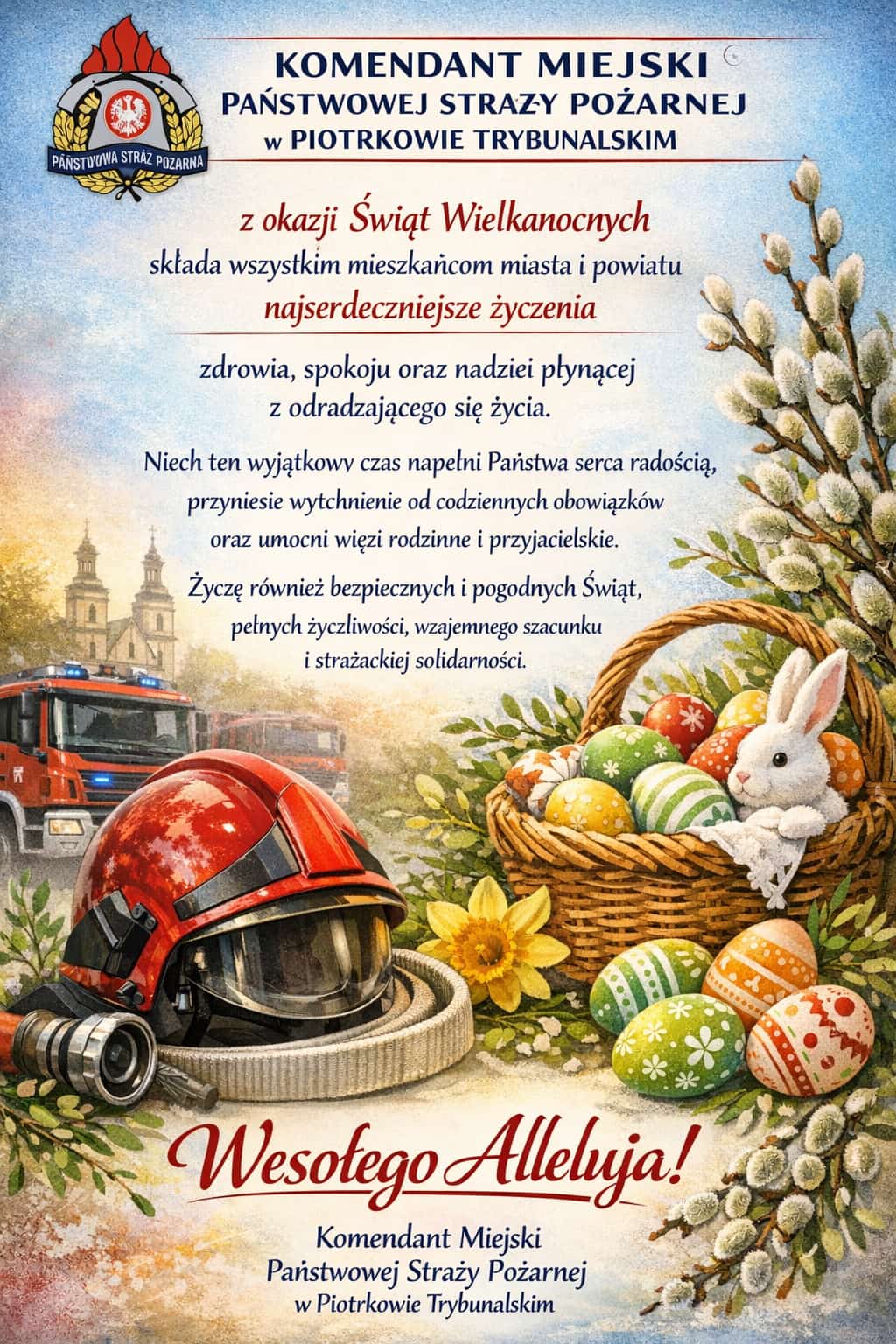 Życzenia Wielkanocne Komendanta Miejskiego PSP w Piotrkowie Trybunalskim Zdjęcia (1) Pokaż zdjęcie 1 z galerii.