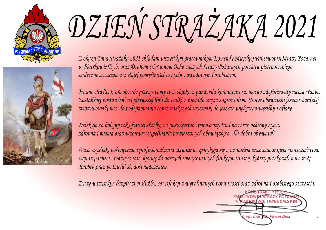Życzenia Komendanta Miejskiego Państwowej Straży Pożarnej z okazji Dnia Strażaka