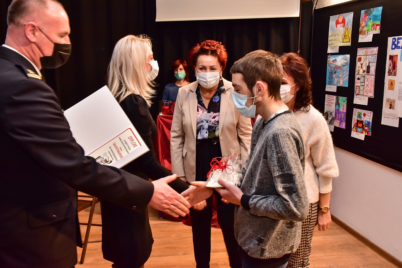 Wszyscy uczestnicy konkursu otrzymali pamiątkowe dyplomy. Dla zwycięzców w poszczególnych kategoriach szczebla miejskiego i powiatowego byli Prezydent Miasta Płocka i Starosta Płocki. Aktu wręczenia nagród dokonali: bryg. Jacek Starczewski - pełniący obowiązki Komendanta Miejskiego PSP w Płocku, Pani Iwona Sierocka – wicestarosta płocki, Pani Małgorzata Struzik- dyrektor edukacji kultury i spraw społecznych Starostwa Powiatowego w Płocku, Pani Agnieszka Harabasz- Dyrektor Wydziału Edukacji Urzędu Miasta Płocka.