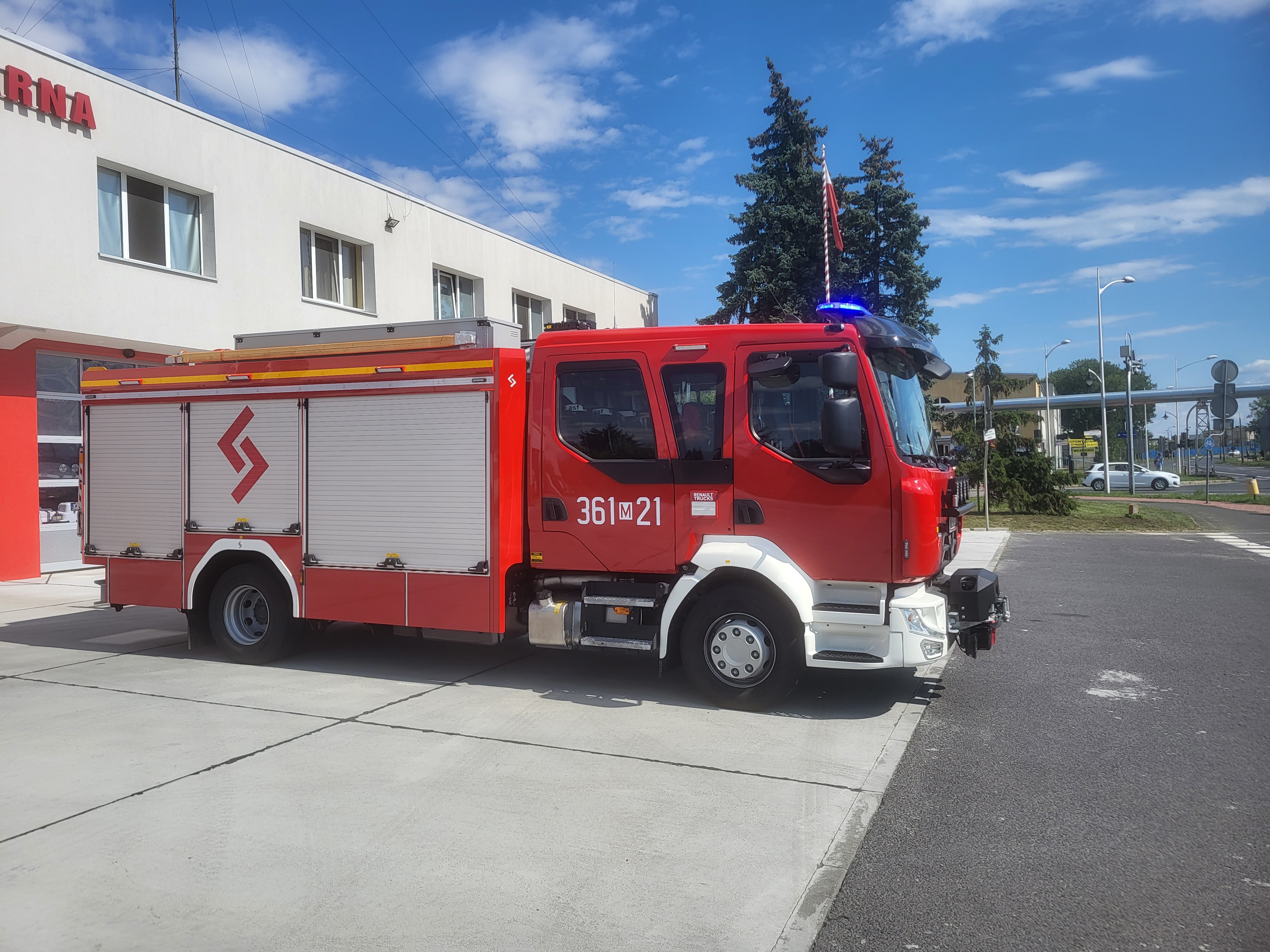 Komenda Miejska PSP w Płocku otrzymała nowy średni samochód ratowniczo – gaśniczy z systemem piany sprężonej na podwoziu marki Renault MDA3Cz przeznaczeniem dla Jednostki Ratowniczo - Gaśniczej Nr 1 przy ul. Narodowych Sił Zbrojnych 8.