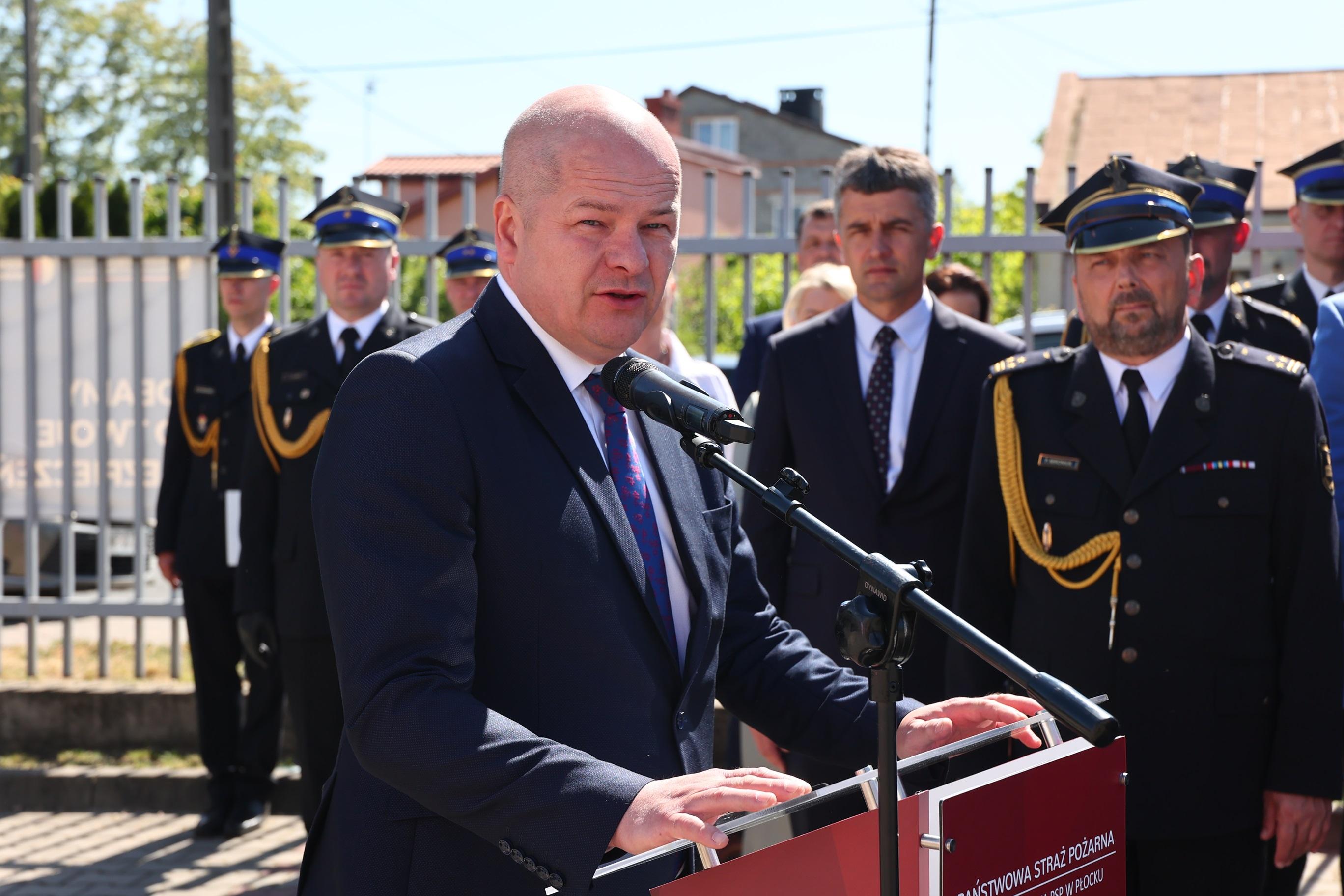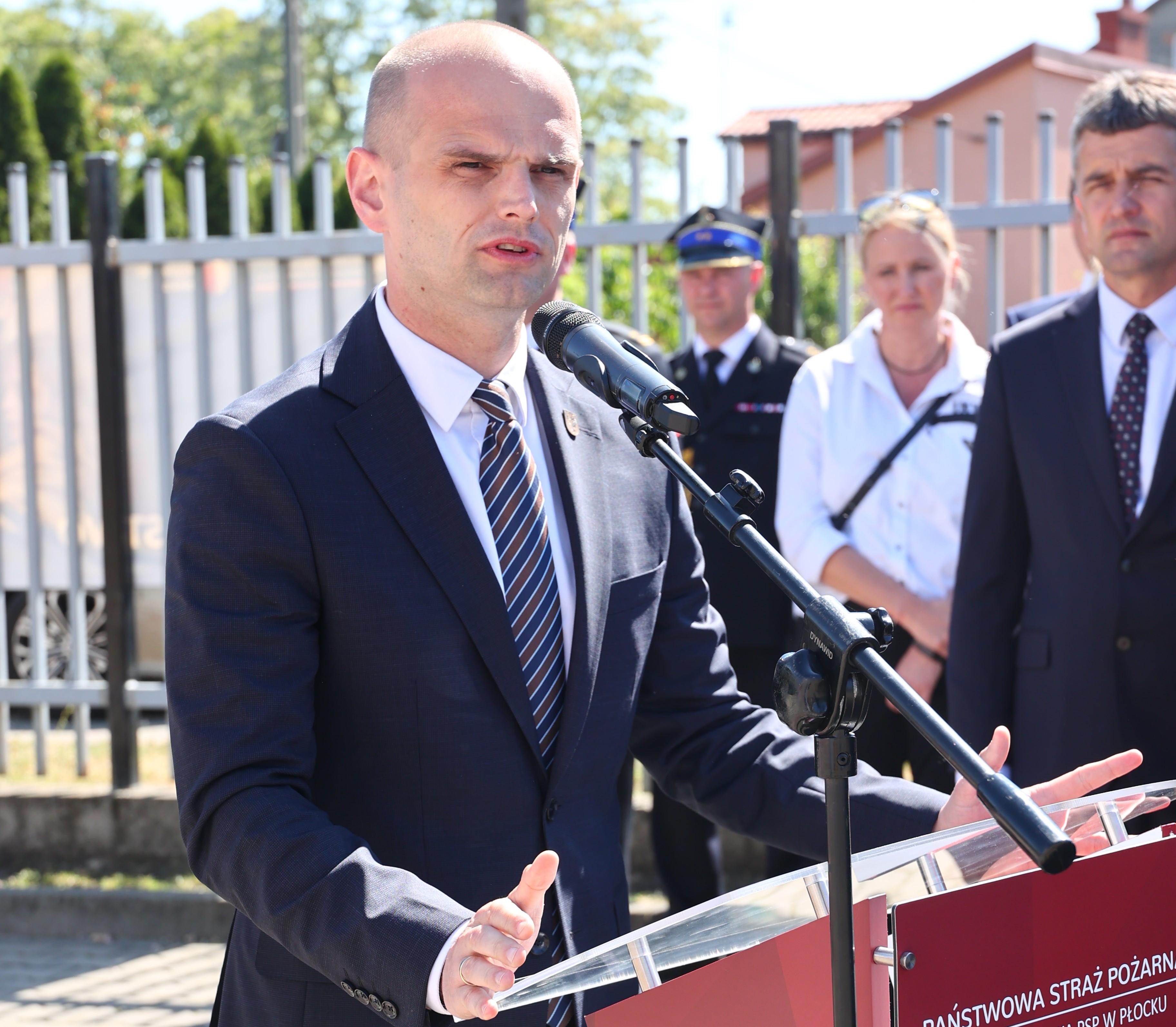 Komendant Miejski Państwowej Straży Pożarnej w Płocku wygłosił okolicznościowe przemówienie w którym dziękował wszystkim którzy współpracują z KM PSP w Płocku.