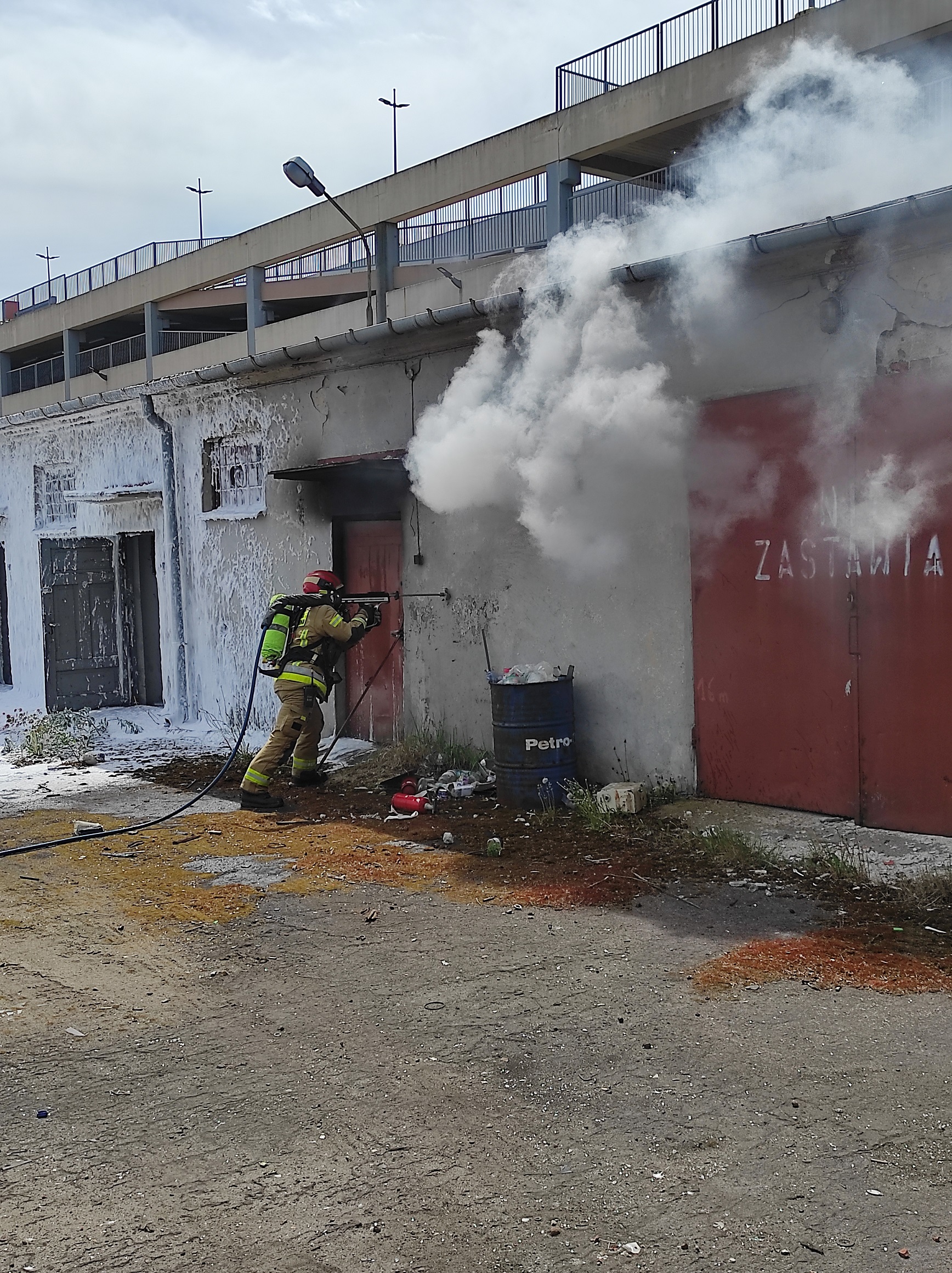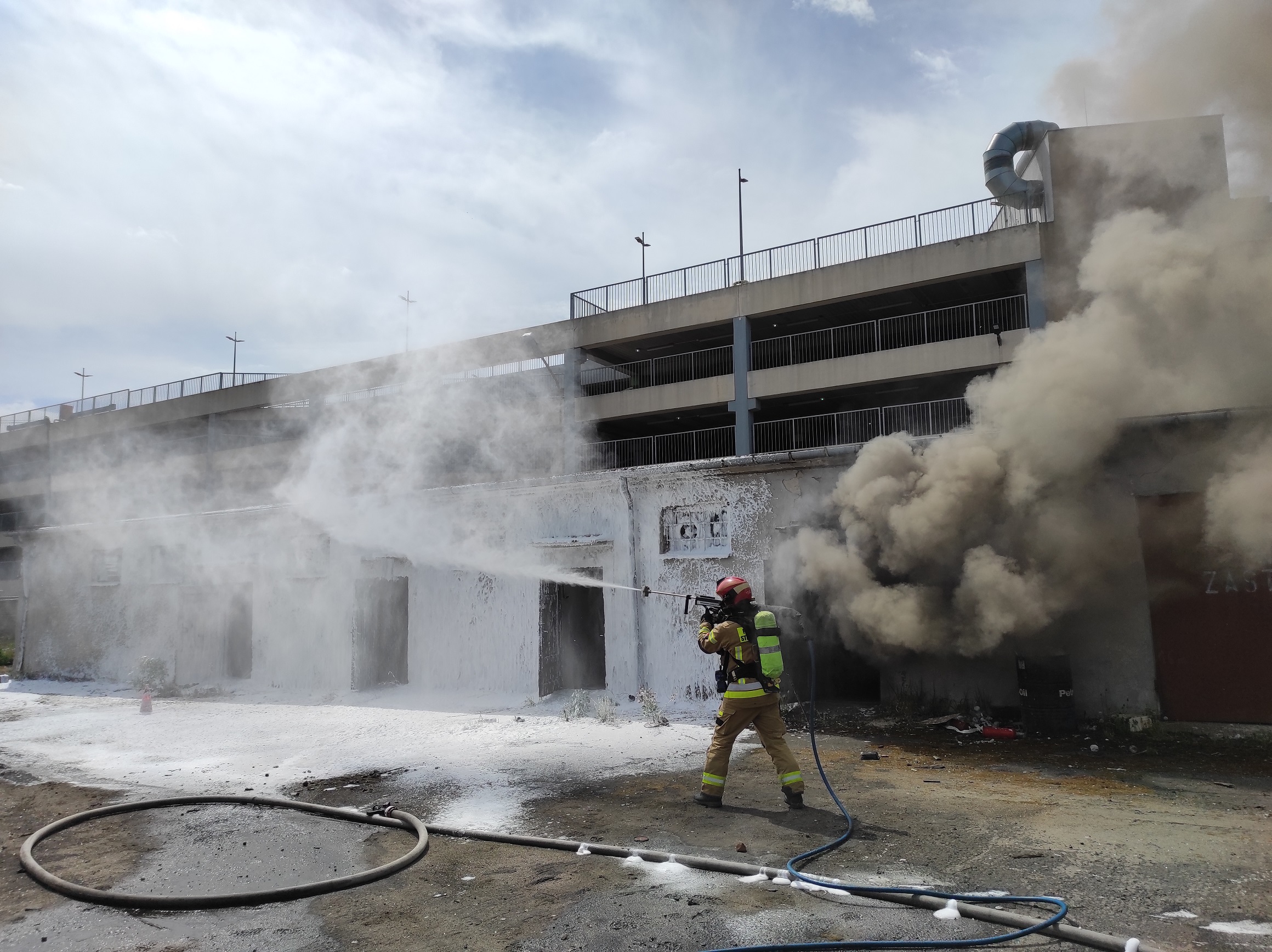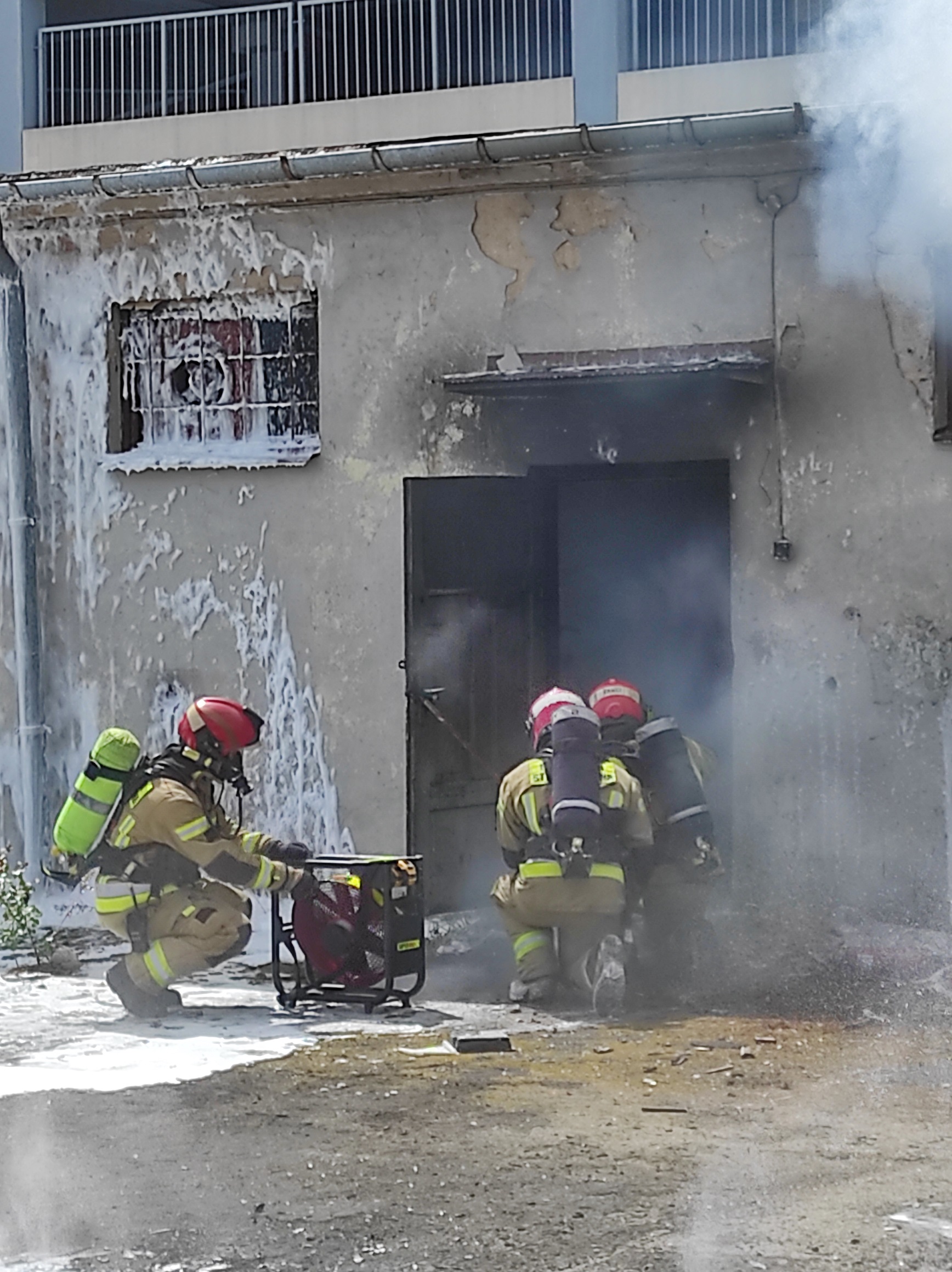 z użytkowania. Kiedy pożar wszedł w fazę rozwiniętą, przystąpiono do użycia poszczególnych narzędzi oraz obserwacji efektów.