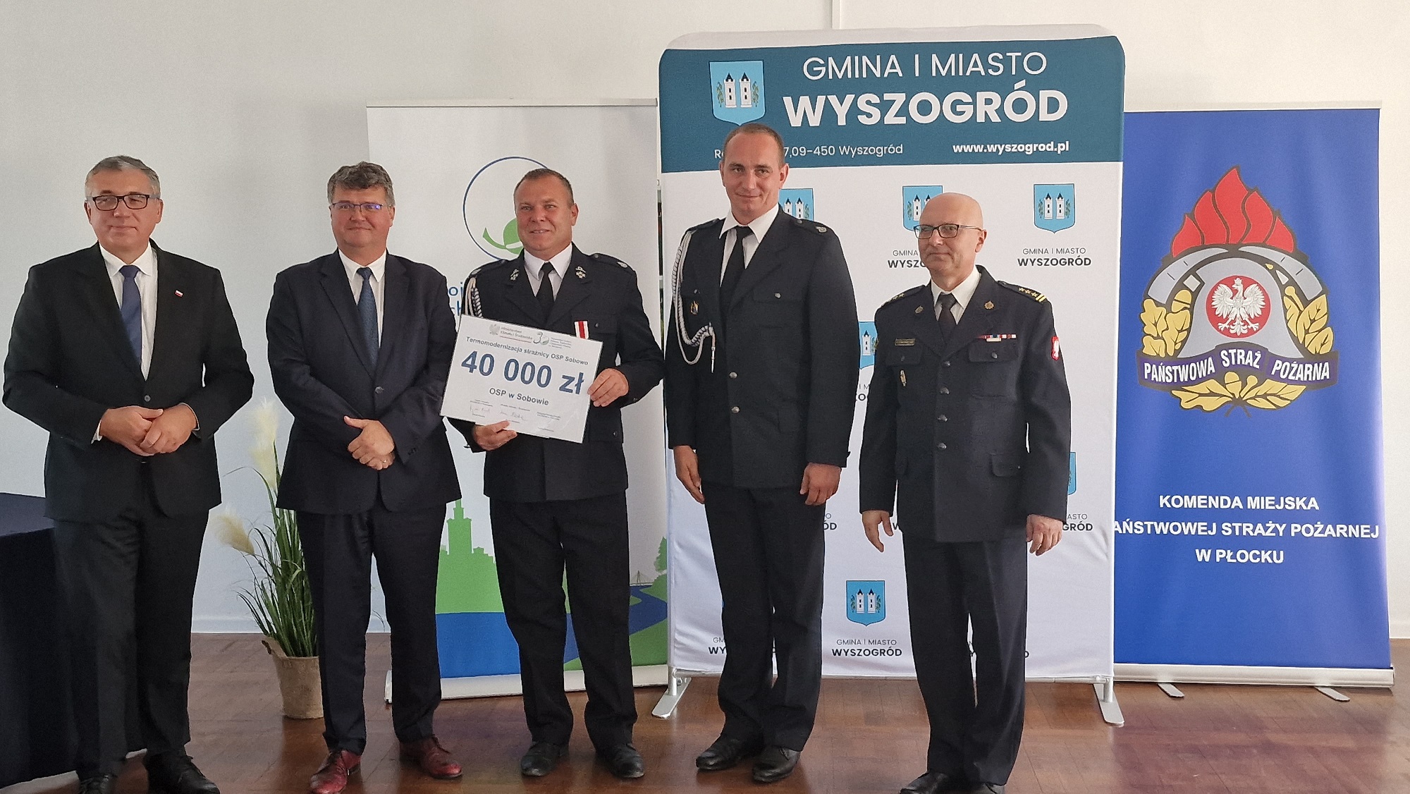 W dniu 06 września 2023 roku w Ochotniczej Straży Pożarnej w Wyszogrodzie odbyło się uroczyste podpisanie i wręczenie umów pomiędzy Wojewódzkim Funduszem Ochrony Środowiska i Gospodarki Wodnej a jednostkami Ochotniczych Straży Pożarnych na dotację zakupu sprzętu i wyposażenia służącego do prowadzenia akcji ratowniczych i usuwania skutków zagrożeń, aktywowania i doposażenia Młodzieżowych Drużyn Pożarniczych, wykonania termomodernizacji, wykonania instalacji fotowoltaicznych na strażnicach Ochotniczych Straży Pożarnych z terenu powiatu płockiego oraz Komendy Powiatowej PSP