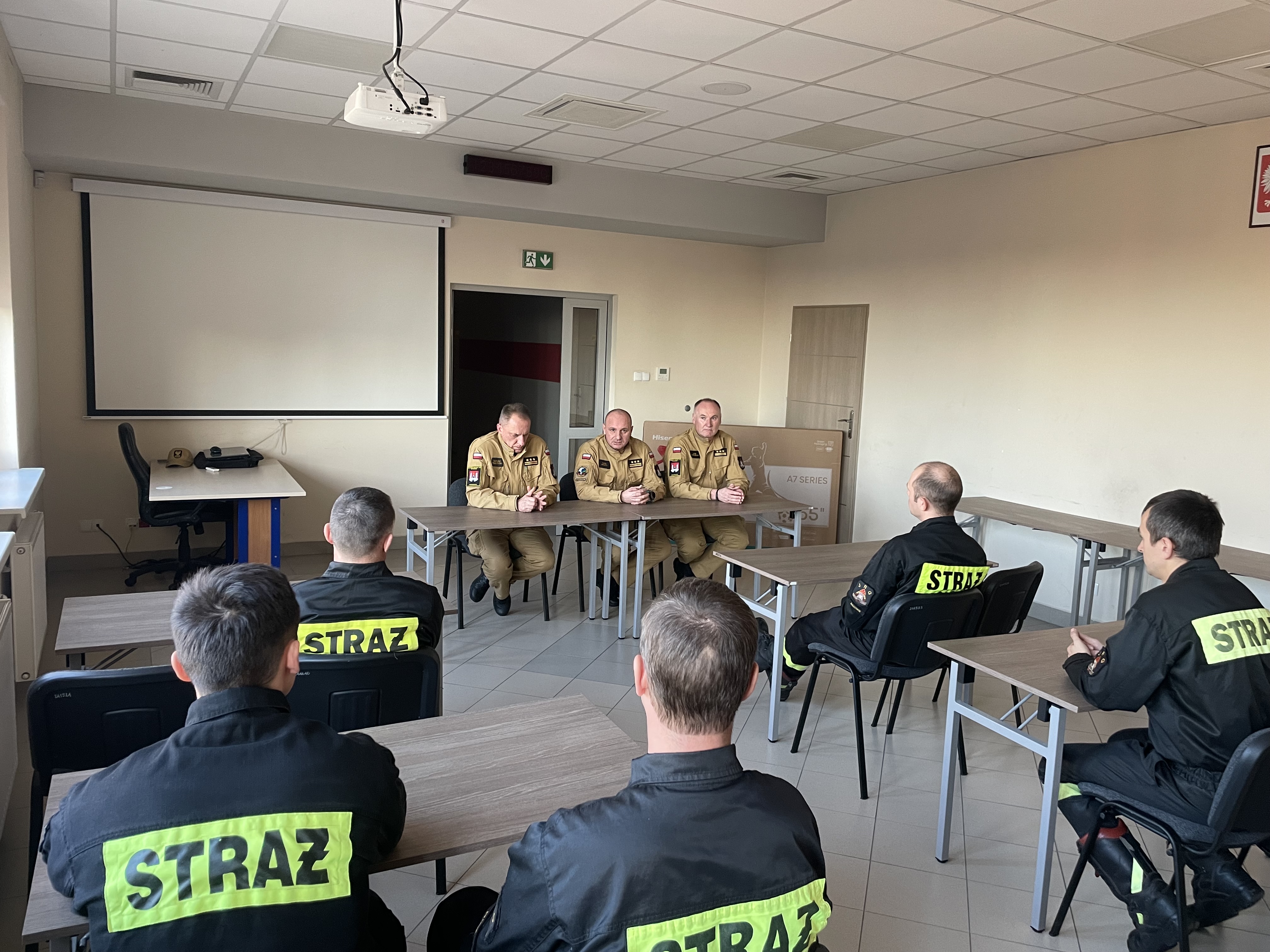 St. bryg. Maciej Bieńczyk zwrócił również uwagę na kluczową rolę szkoleń i samodoskonalenia w służbie strażaka, wskazując, że bezpośrednio przekładają się one na skuteczność i bezpieczeństwo działań ratowniczo-gaśniczych. W trakcie spotkania poruszane tematy omawiał odwołując się również do własnych doświadczeń.