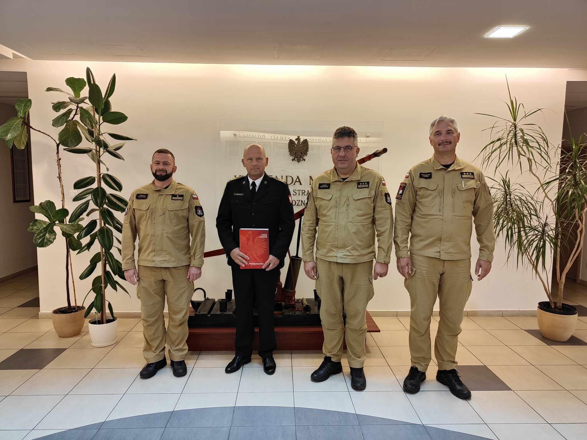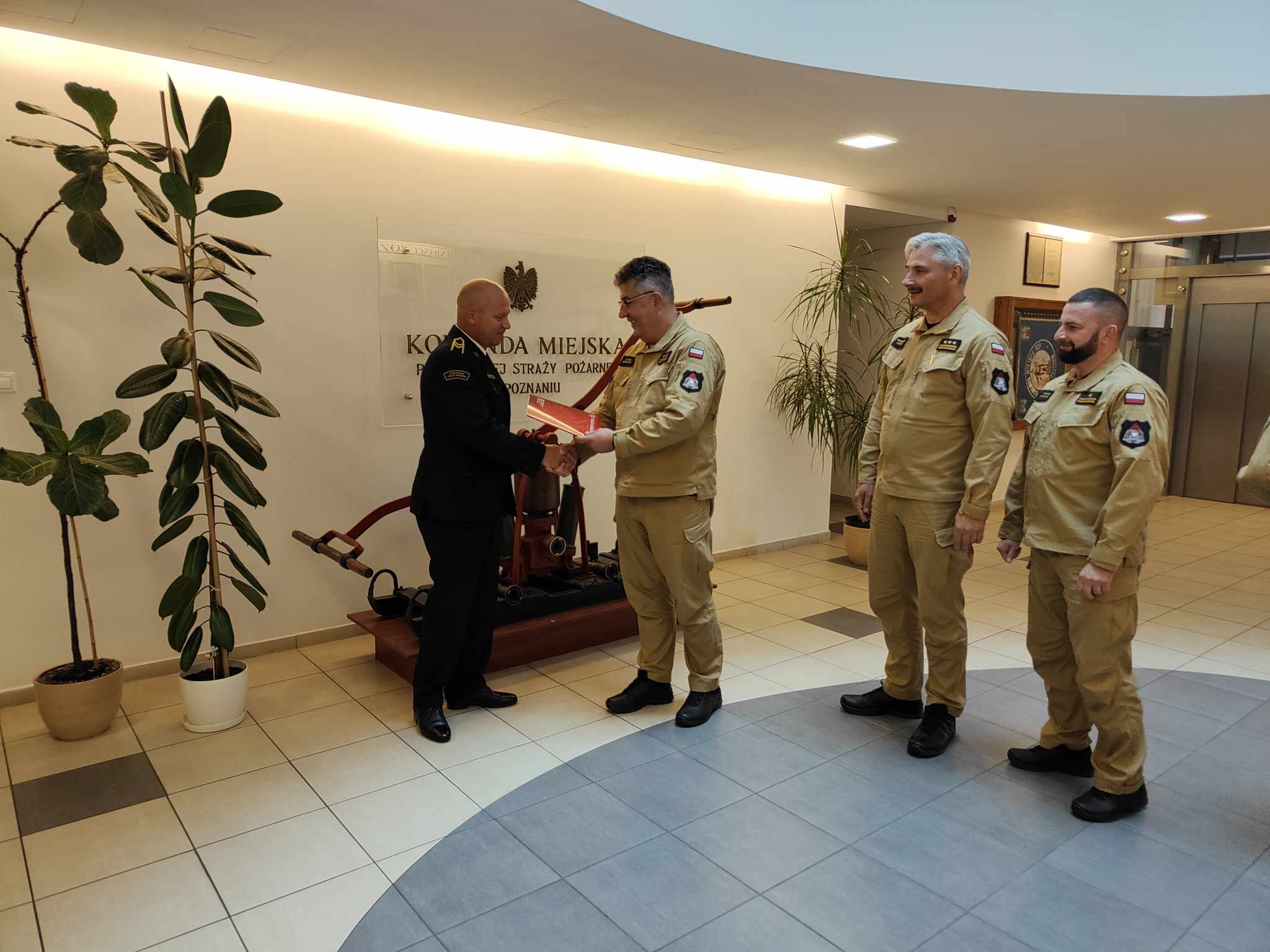 Dnia 8 sierpnia 2023r. Komendant Miejski Państwowej Straży Pożarnej w Poznaniu st. bryg. Jacek Michalak w obecności Zastępcy Komendanta – st. bryg. Radosława Hurnika oraz Dowódcy Jednostki Ratowniczo-Gaśniczej nr 6 mł. bryg. Tomasza Otłowskiego wręczył nagrodę jubileuszową za 25 lat pracy i służby - st. ogn. Tomaszowi Andrzejczakowi z JRG 6.
