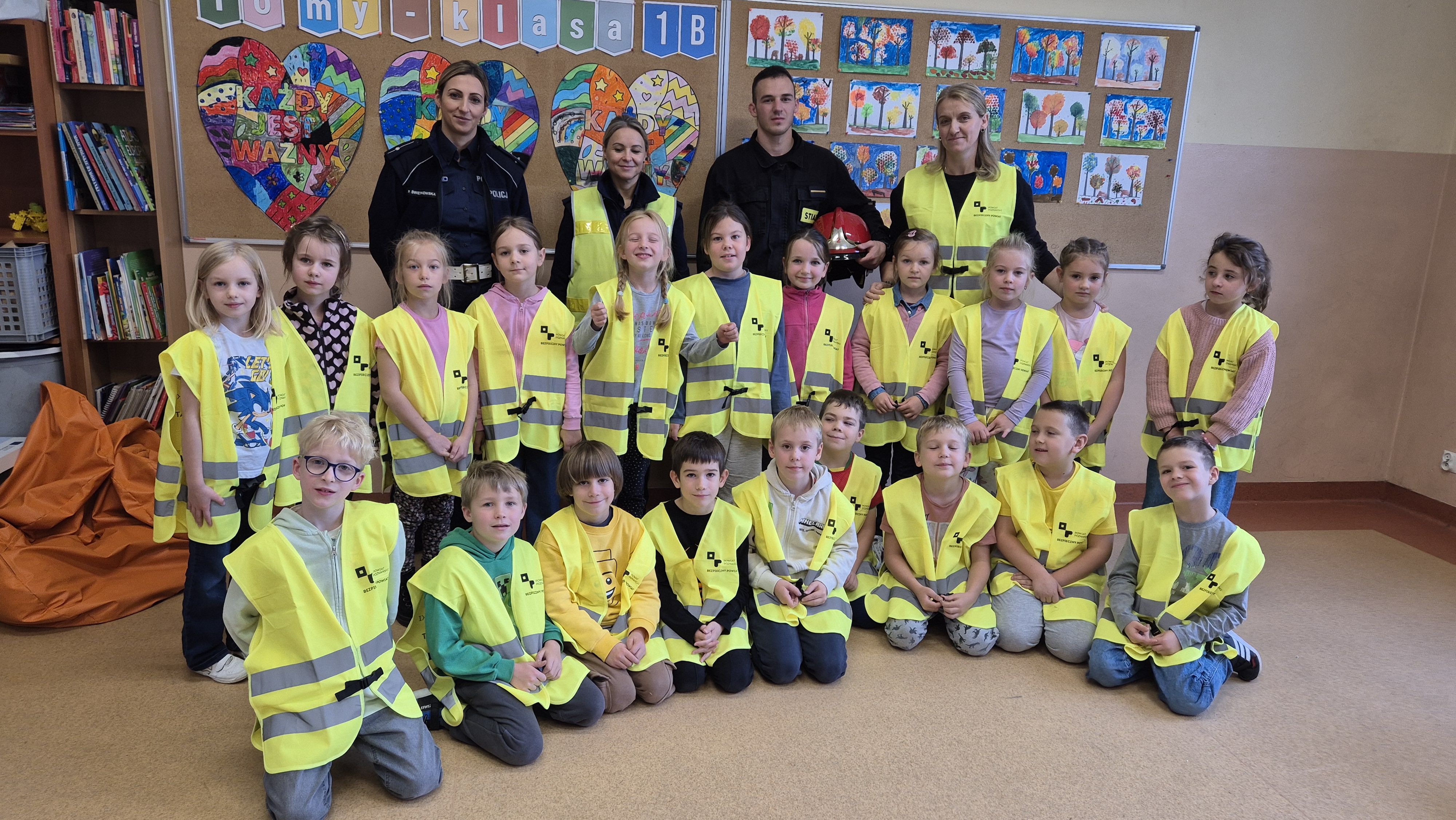 Na zakończenie spotkania przedstawiciele Starostwa Powiatowego w Poznaniu, Policji oraz Komendy Miejskiej PSP w Poznaniu wspólnie wręczyli pierwszoklasistom kamizelki odblaskowe. Dzięki nim najmłodsi mieszkańcy powiatu będą lepiej widoczni na drodze, co znacząco zwiększy ich bezpieczeństwo.