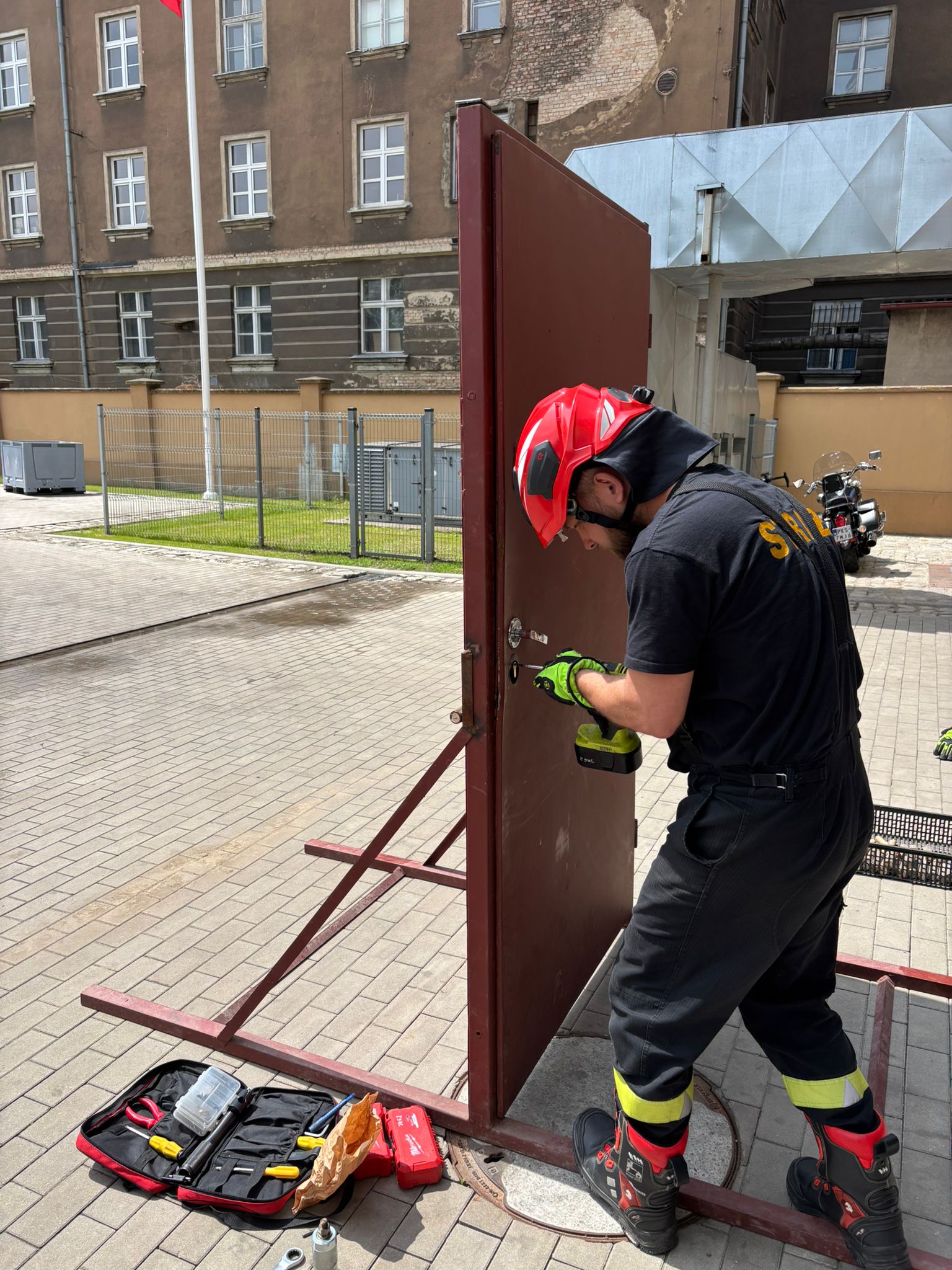 Ważnym elementem ćwiczeń było również doskonalenie technik otwierania drzwi różnymi metodami – od klasycznych technik ręcznych, przez wykorzystanie specjalistycznego sprzętu burzącego. Tego rodzaju działania są nieodzowne podczas akcji ratowniczo-gaśniczych, zwłaszcza w przypadku pożarów wewnętrznych, gdzie szybki dostęp do zagrożonych pomieszczeń może decydować o powodzeniu akcji oraz życiu poszkodowanych.