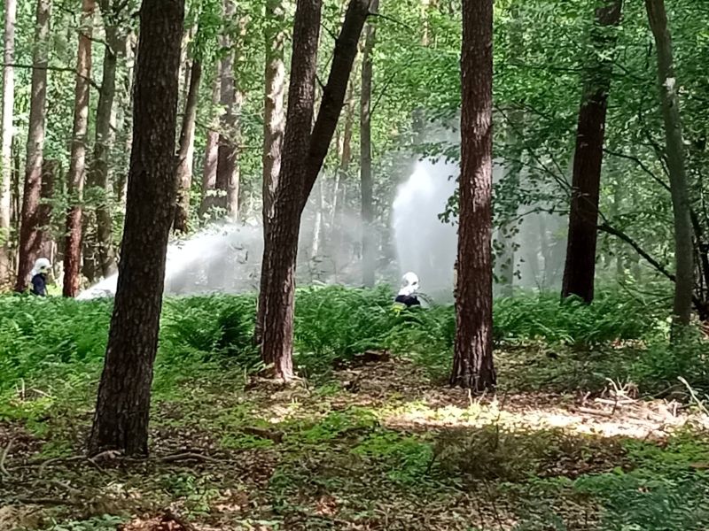 W sobotę, 28 maja 2022 roku, w lasach nad jeziorem Chomęcickim, odbyły się ćwiczenia doskonalące z zakresu gaszenia pożarów lasów.