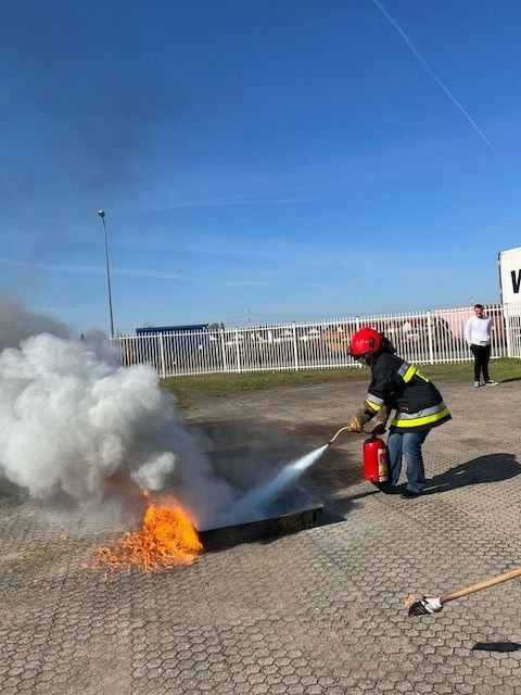 Po części teoretycznej pracownicy mieli okazję sprawdzić skuteczność gaśnic gasząc kontrolowany pożar.