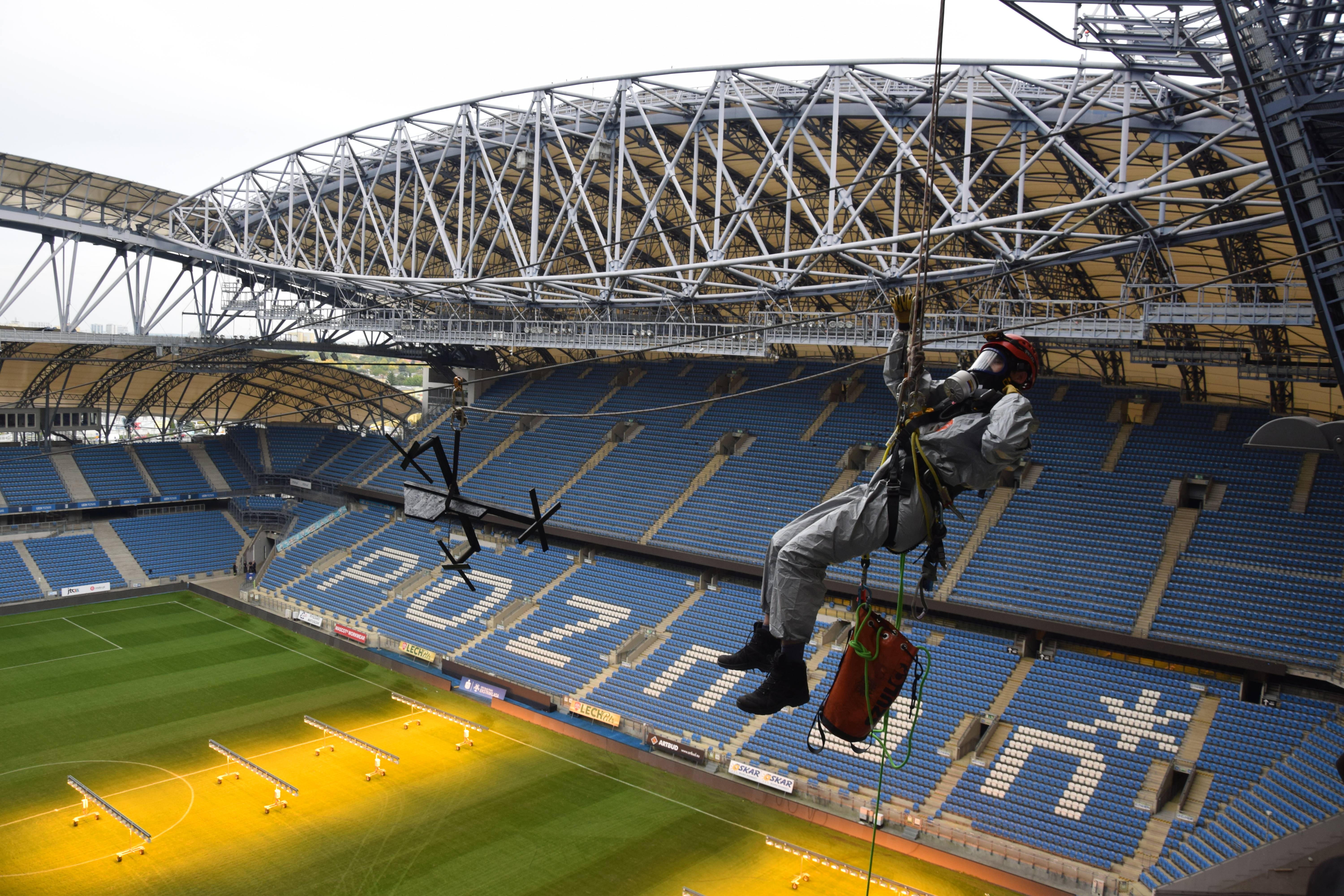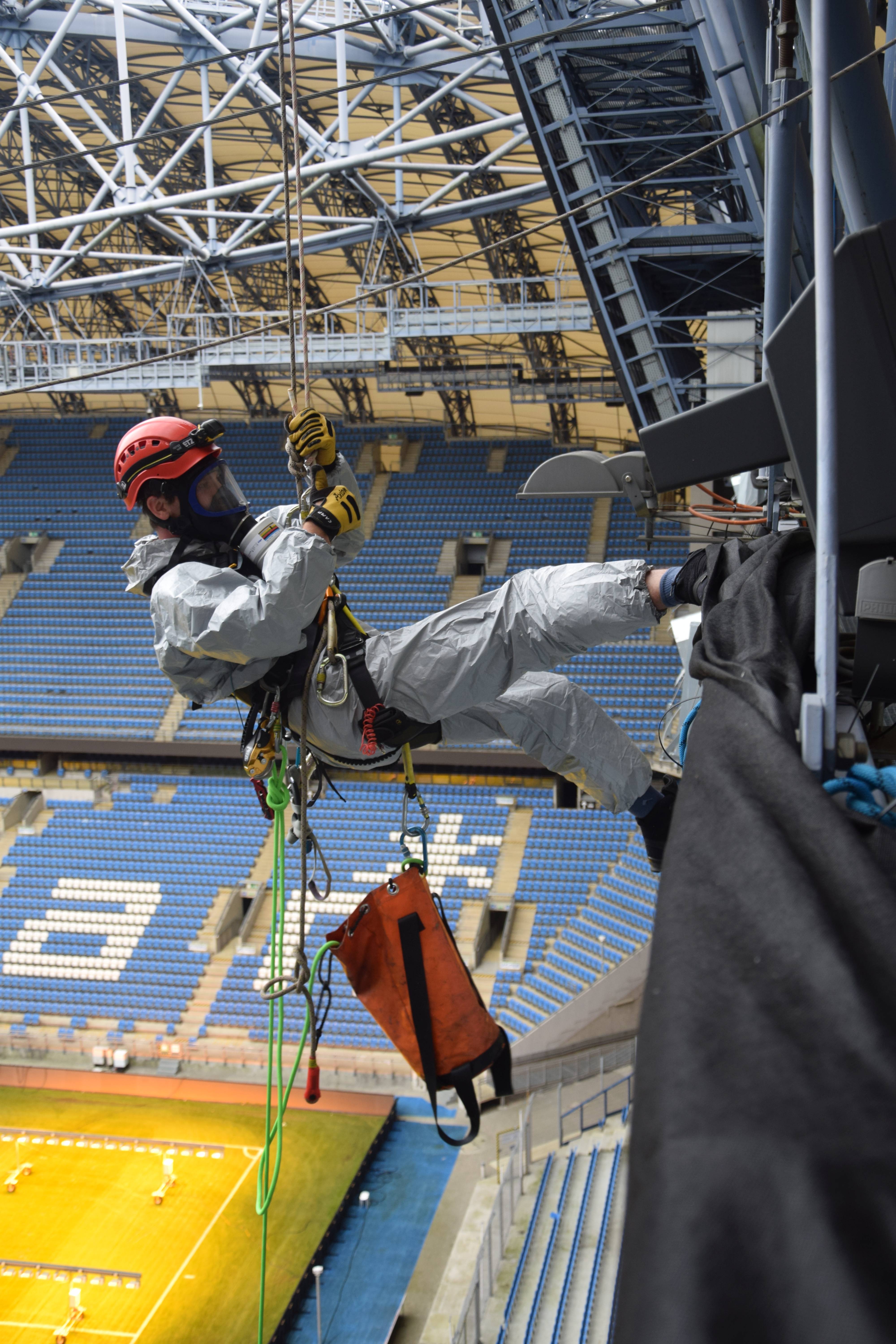 W międzyczasie odbył się kolejny epizod w którym doszło do zawieszenia niezidentyfikowanego przedmiotu na koronie stadionu. Zadysponowana została Specjalistyczna Grupa Ratownictwa Wysokościowego z JRG5, która prowadziła działania na wysokości przy współpracy ze Specjalistyczną Grupą Ratownictwa Chemiczno-Ekologicznego z JRG6.