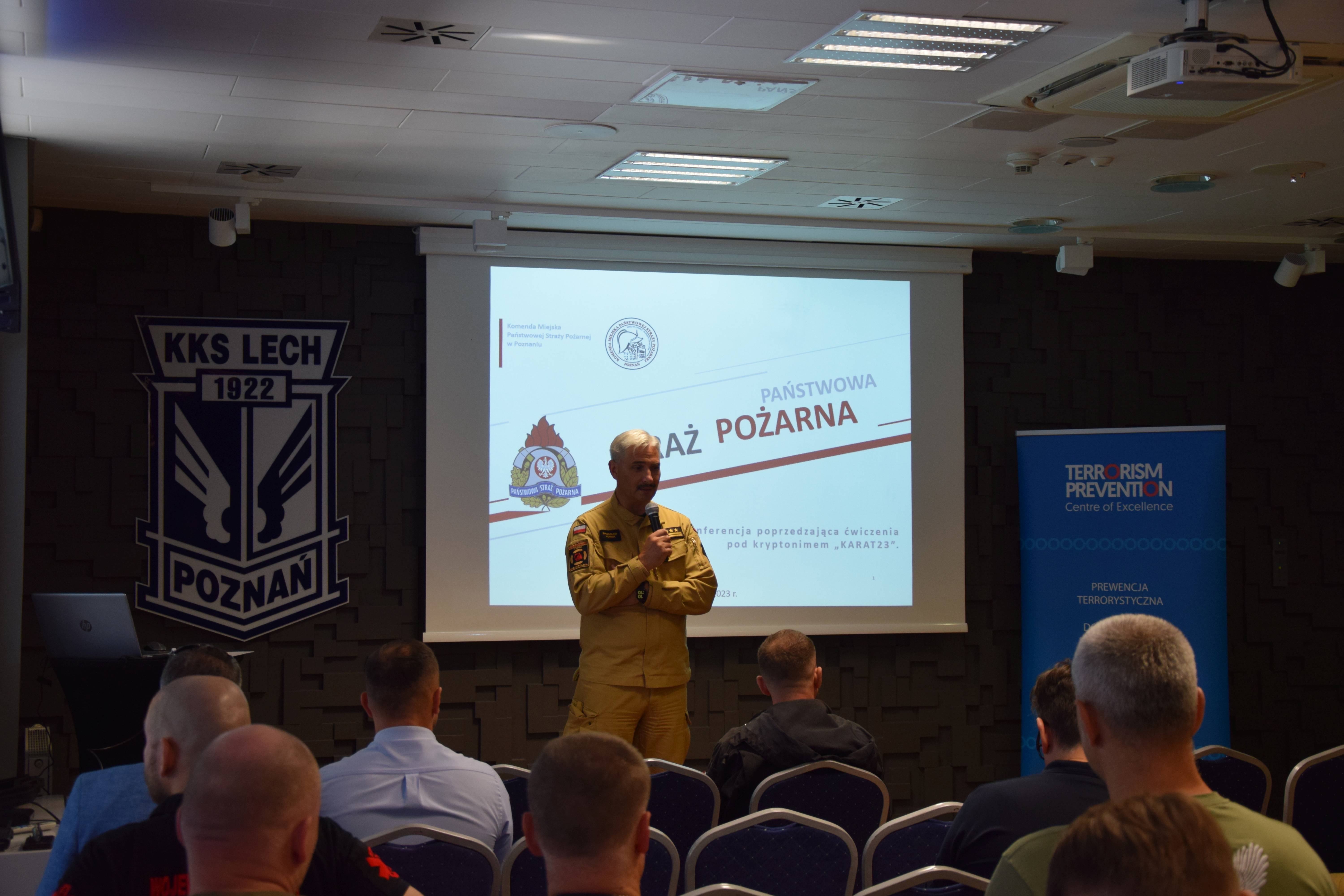 W konferencji oraz w ćwiczeniach praktycznych „Karat23” brał udział Komendant Miejski PSP w Poznaniu st. bryg. Jacek Michalak wraz z zastępcą st. bryg. Radosławem Hurnikiem, kadrą kierowniczą KM PSP w Poznaniu oraz przedstawicielami pozostałych służb.
