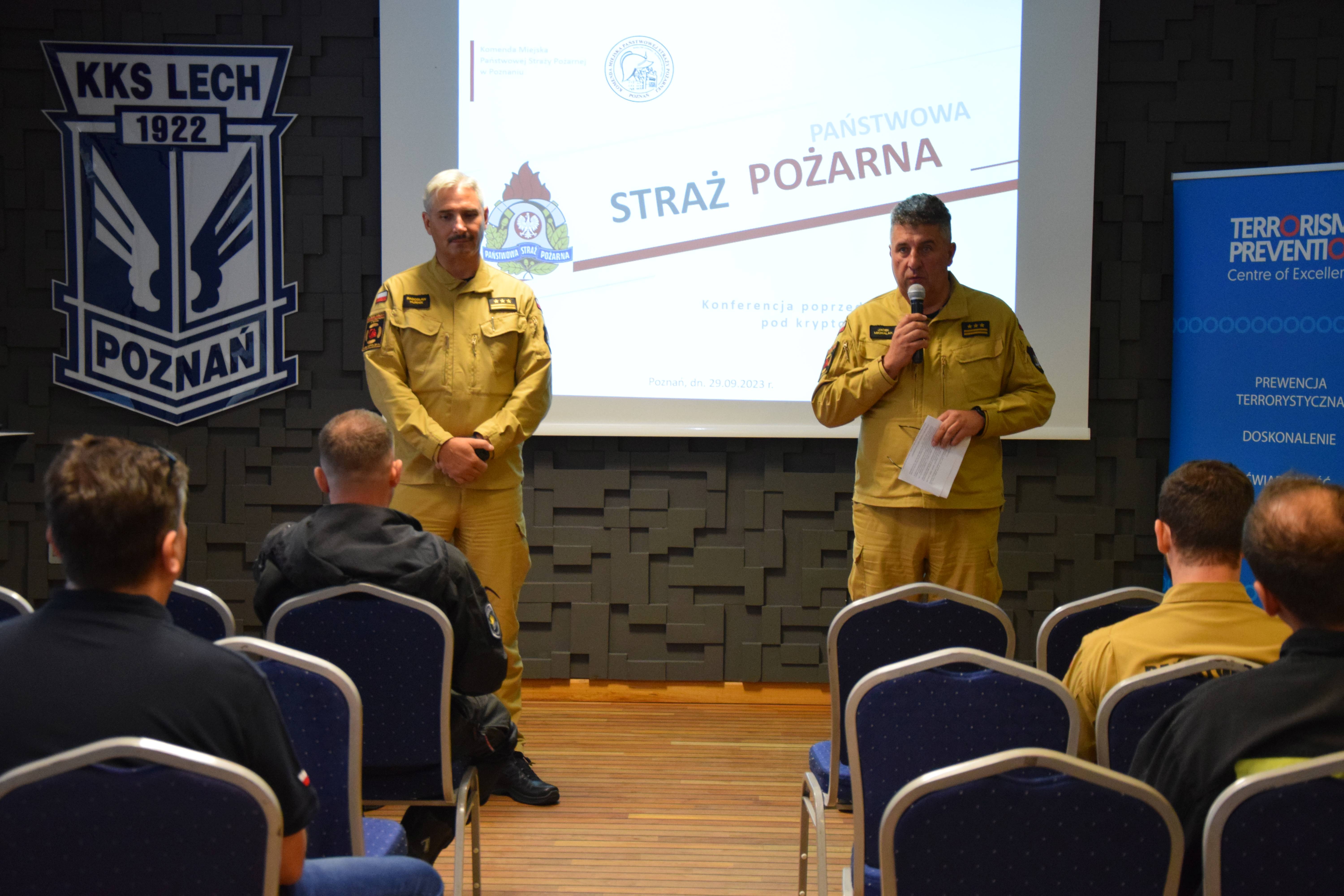 Założenia praktyczne były poprzedzone konferencją, która odbyła się w Loży Prezydenckiej stadionu. Brali w niej udział specjaliści ds. bezpieczeństwa, którzy w swoich prelekcjach omawiali m.in.: problematykę działań CBRNE w infrastrukturze krytycznej, wykorzystanie bezzałogowych statków powietrznych oraz bezpieczeństwo CBRNE na arenach sportowych.