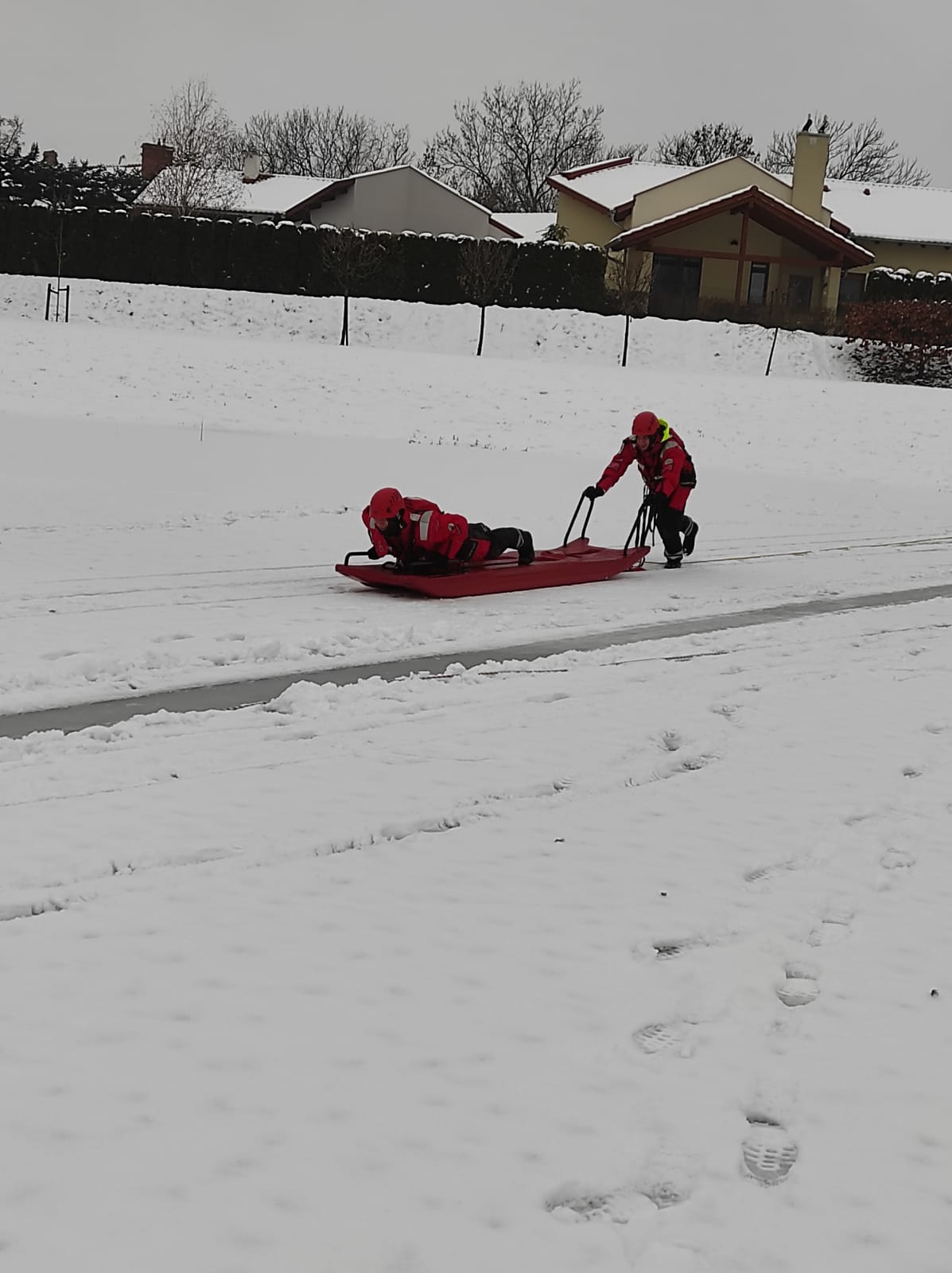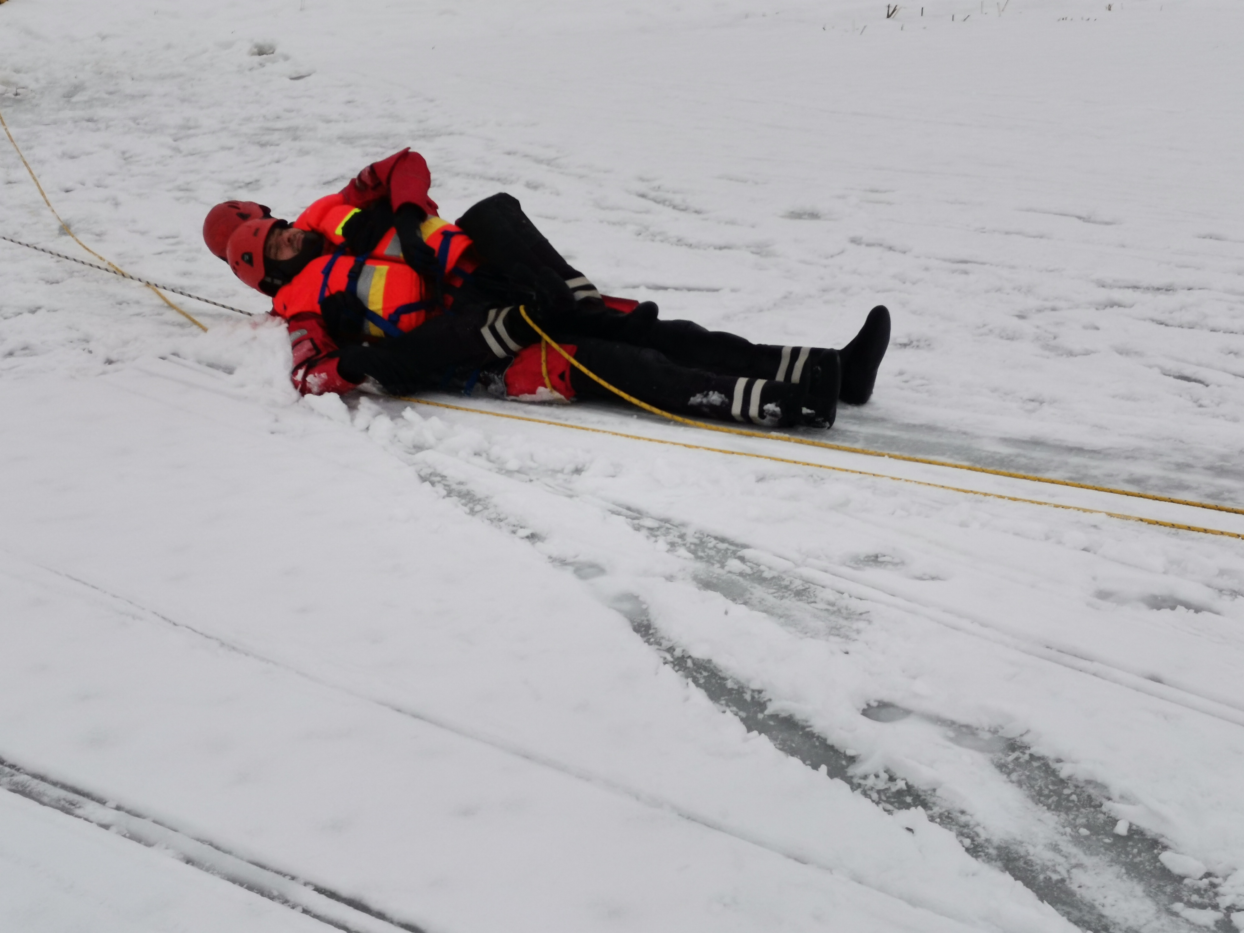 Dnia 19.01.2021 r. strażacy z JRG-6 ćwiczyli doskonalenie działań ratowniczych na akwenach pokrytych lodem. Głównym tematem zajęć był odpowiedni dobór technik ratowania poszkodowanych, którzy w wyniku zapadnięcia się lodu pod stopami wpadli do wody. Przećwiczono dwa warianty ewakuacji osoby tonącej tj. przy wykorzystaniu sań lodowych oraz przy tradycyjnej asekuracji odpowiednio zabezpieczonego ratownika z brzegu akwenu. Omówiono także zagadnienia medyczne związane z wychłodzeniem, hipotermią. Powyższe zajęcia są przydatne do wypracowania odpowiedniej taktyki działań adekwatnej do zastanej sytuacji na miejscu zdarzenia (istotną rolę odgrywa stan tafli lodowej) oraz do prawidłowego doboru sprzętu i wyposażenia ratownika.