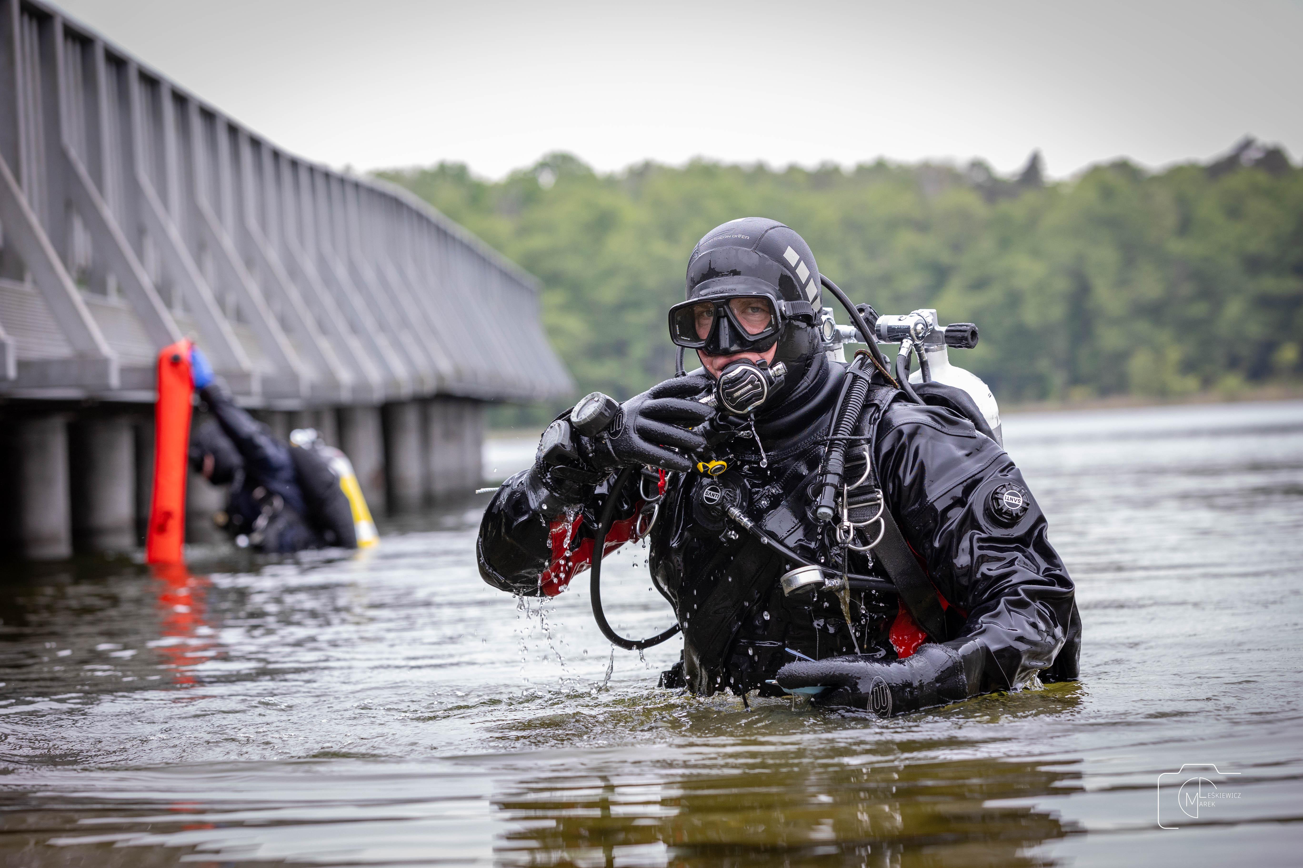 Dnia 16 czerwca 2024 r. strażacy ze Specjalistycznej Grupy Wodno-Nurkowej przeprowadzili szereg praktycznych ćwiczeń na Jeziorze Strzeszyńskim. Zajęcia polegały m.in. na utrwaleniu wiedzy w zakresie współpracy pomiędzy nurkiem, a strażakiem odpowiedzialnym za obsługę bazy prac podwodnych. Sprawdzono też umiejętność orientacji pod wodą oraz przepłynięcia wyznaczonej odległości z punktu A do punktu B posługując się kompasem.