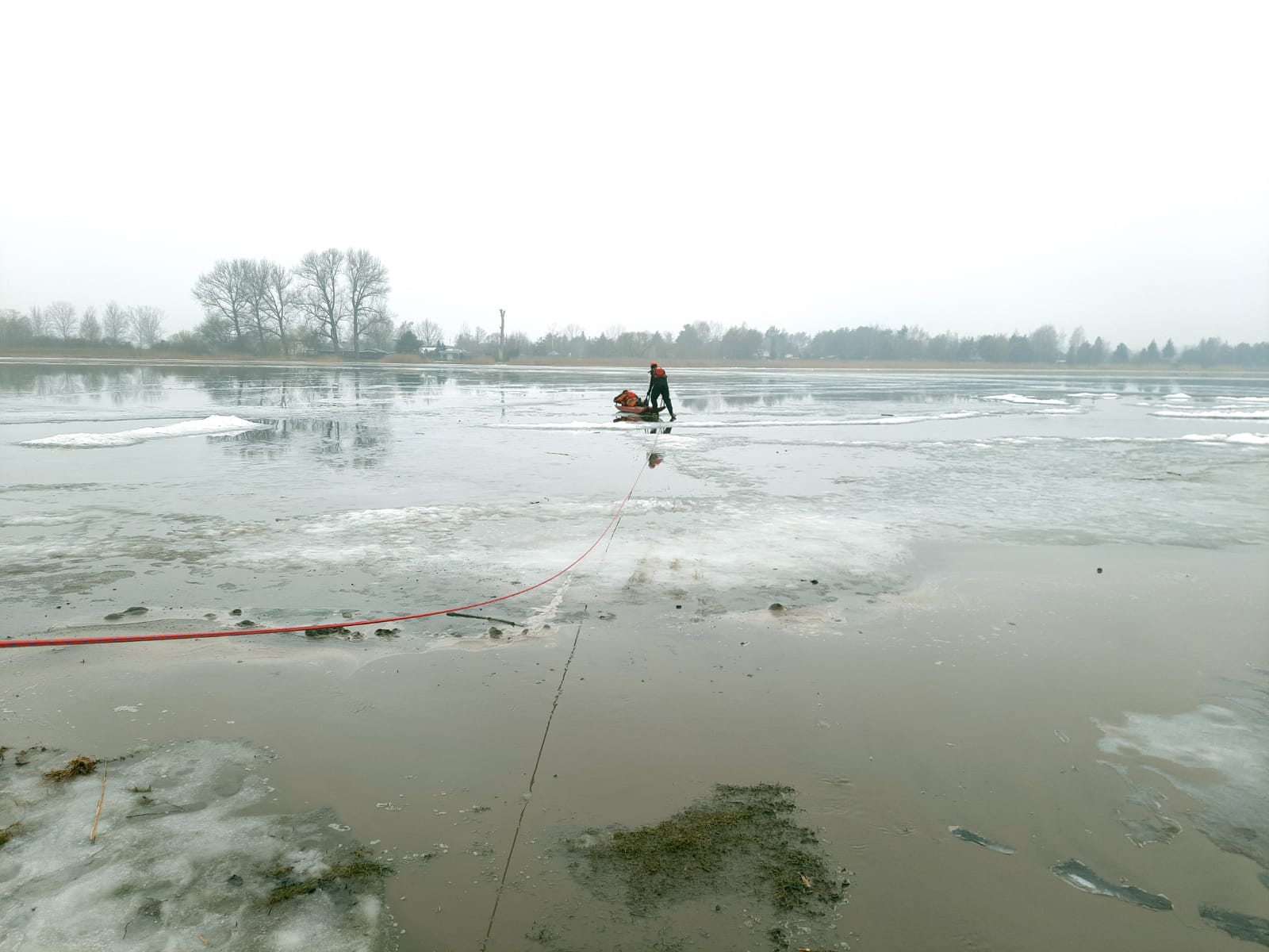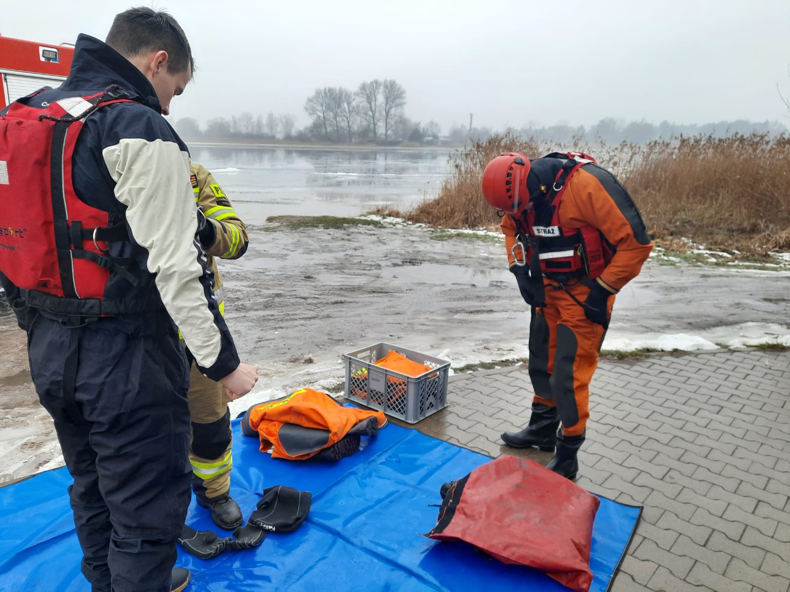 W dniu 18 lutego 2021 roku zmiana C zgodnie z planem doskonalenia zawodowego udała się na jezioro w miejscowości Dymaczewo Stare. Tematem realizowanych ćwiczeń było „Zasady bezpieczeństwa przy wchodzeniu na pokrywę lodową. Podczas zajęć omówiono taktykę prowadzenia działań ratowniczych na lodzie przy użyciu dostępnego sprzętu. Zajęcia praktyczne polegały m.in. na: przećwiczeniu technik wyciągania osób poszkodowanych z wody przy użyciu sań lodowych, budowie stanowisk ratowniczych na zamarzniętych akwenach oraz omówieniu zagadnień związanych z hipotermią. Przed ćwiczeniami omówiono zasady BHP podczas tego typu działań oraz zgranie zespołu pod kątem różnorodności zadań jakie zespół ma do wykonania.