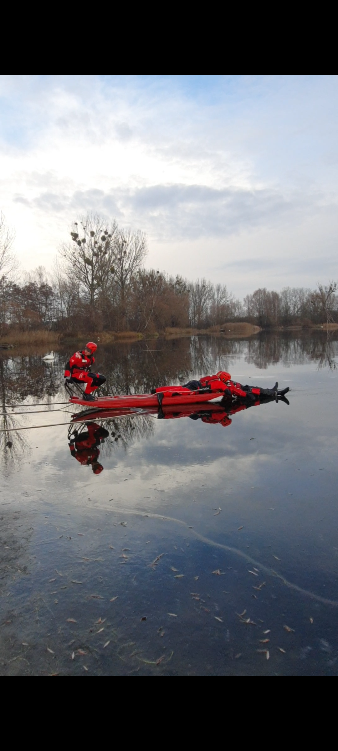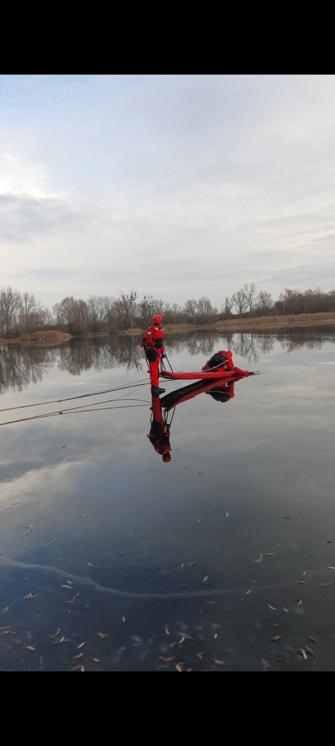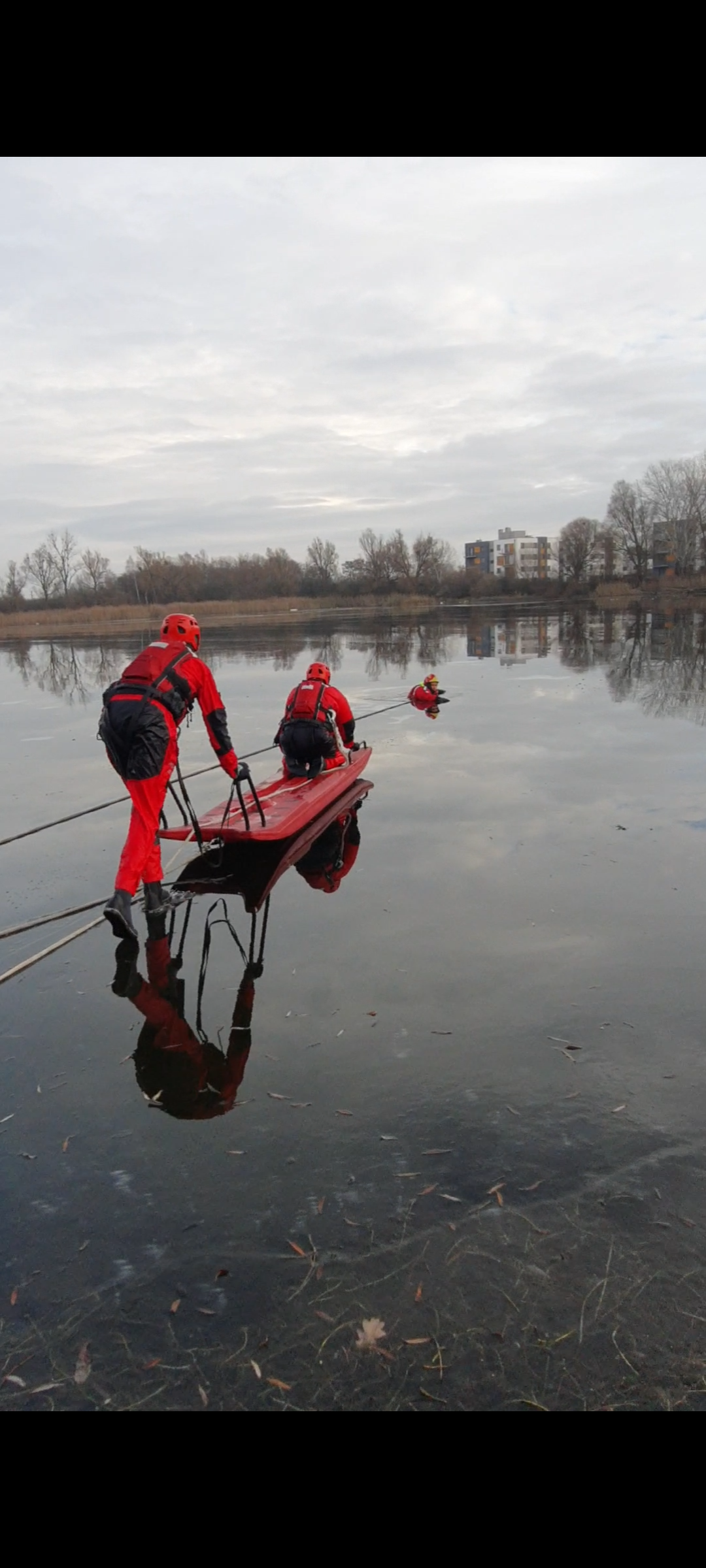 W ramach zajęć doskonalenia zawodowego, w dniach 15, 19 i 20 grudnia 2022 r. strażacy z Jednostki Ratowniczo – Gaśniczej nr 6 w Poznaniu przeprowadzili ćwiczenia z zakresu ratownictwa lodowego na zbiorniku wodnym Koninko.