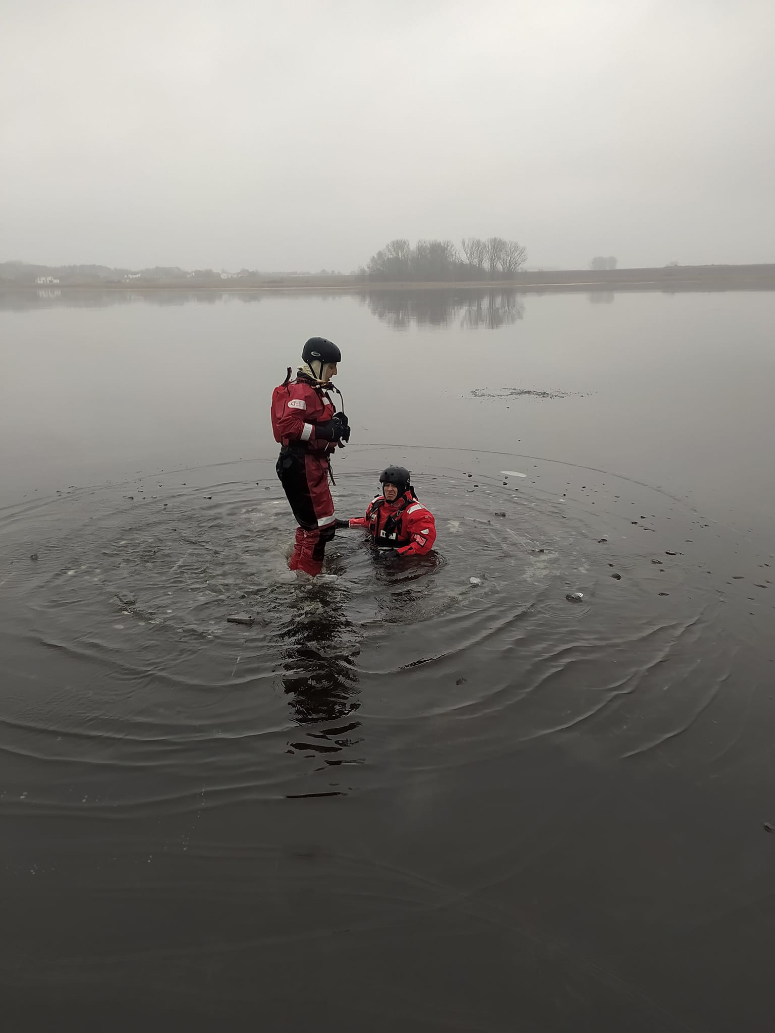 W dniach kiedy pogoda sptzyjała i akweny były pokryte cienkim lodem prowadzono ćwiczenia praktyczne. Podczas zajęć doskonalono techniki poruszania się po warstwie nośnej, sposoby zabezpieczenia i asekuracji, samoratowanie w przypadku wpadnięcia ratownika do wody, dotarcie do osoby poszkodowanej oraz jego ewakuację.