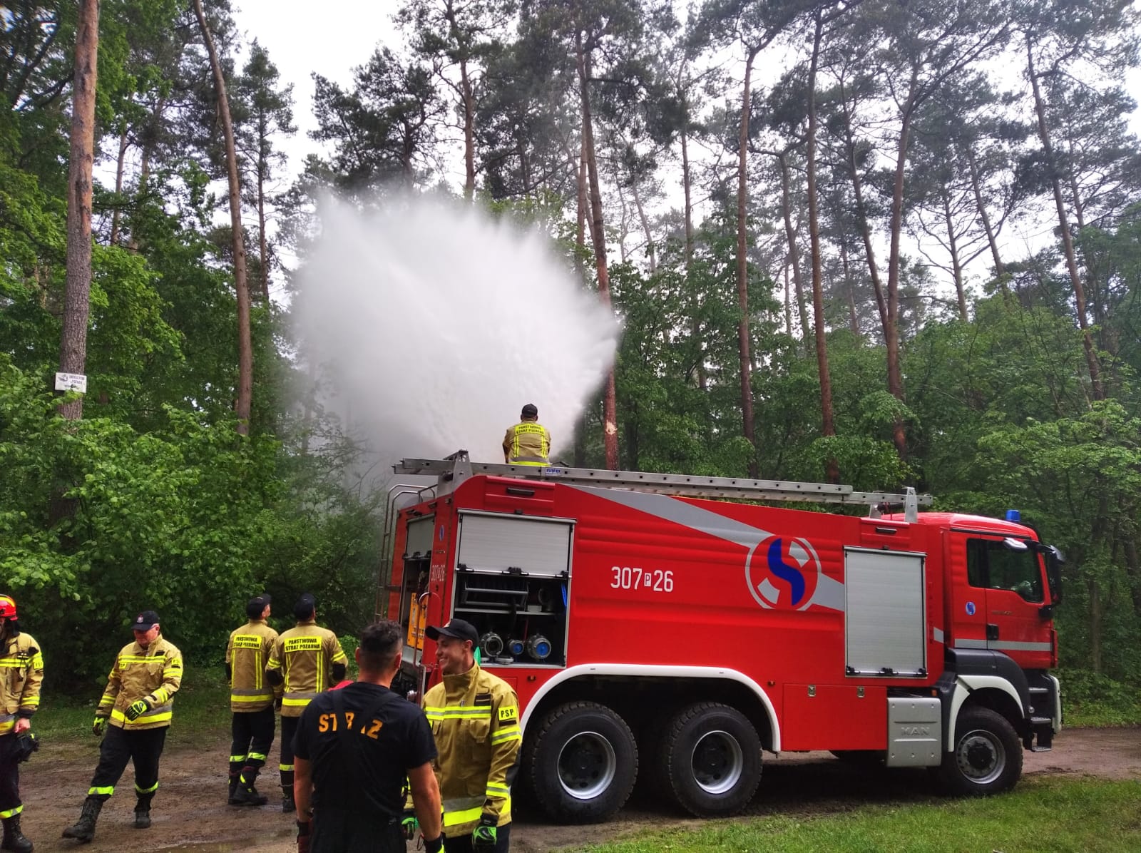 Na prośbę funkcjonariuszy z Jednostki Ratowniczo - Gaśniczej nr 7 w Poznaniu wraz ze strażakami z Jednostki Ratowniczo - Gaśniczej nr 3 zorganizowano ćwiczenia na obszarze leśnym w Jeziercach.