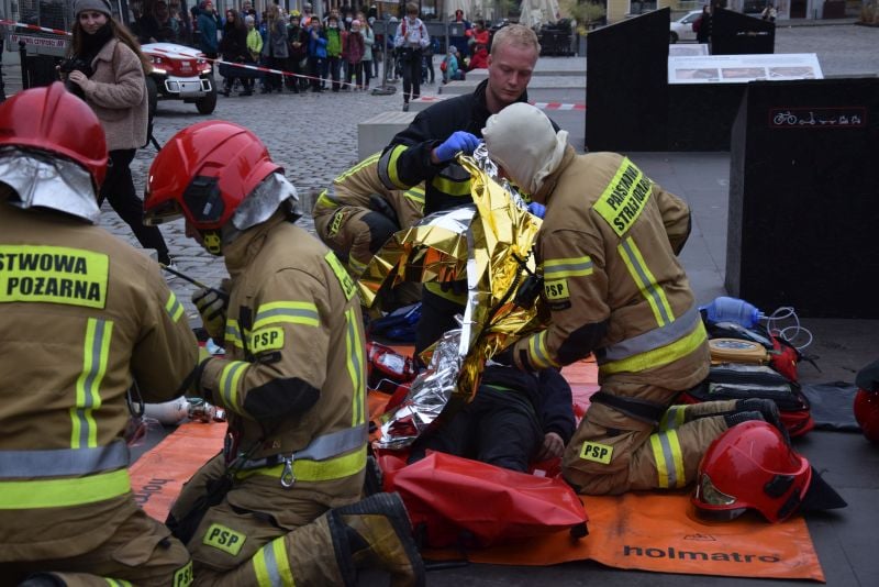Na szczęście to tylko scenariusz ćwiczeń jakie odbyły się dzisiaj na placu Starego Rynku, a konkretnie budynku poznańskiego Ratusza.