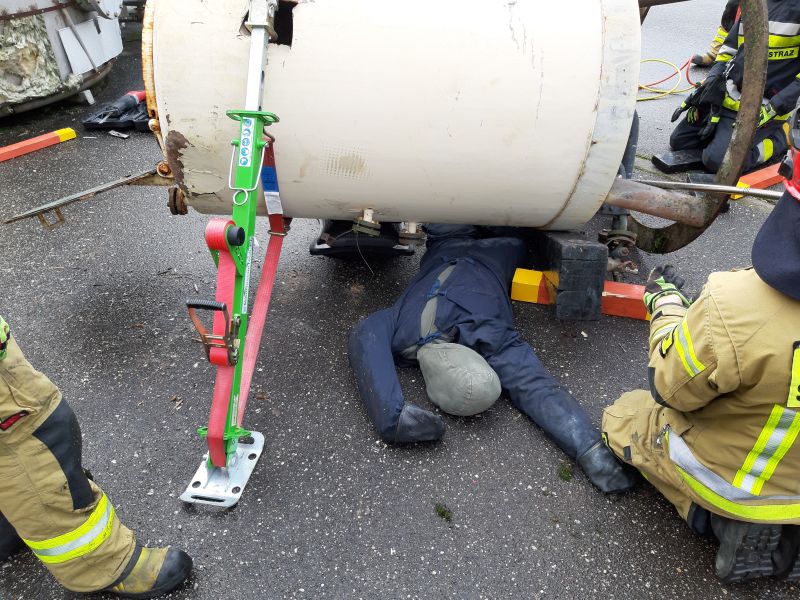 - osoba przygnieciona zbiornikiem – wydobycie oraz udzielenie kwalifikowanej pierwszej pomocy