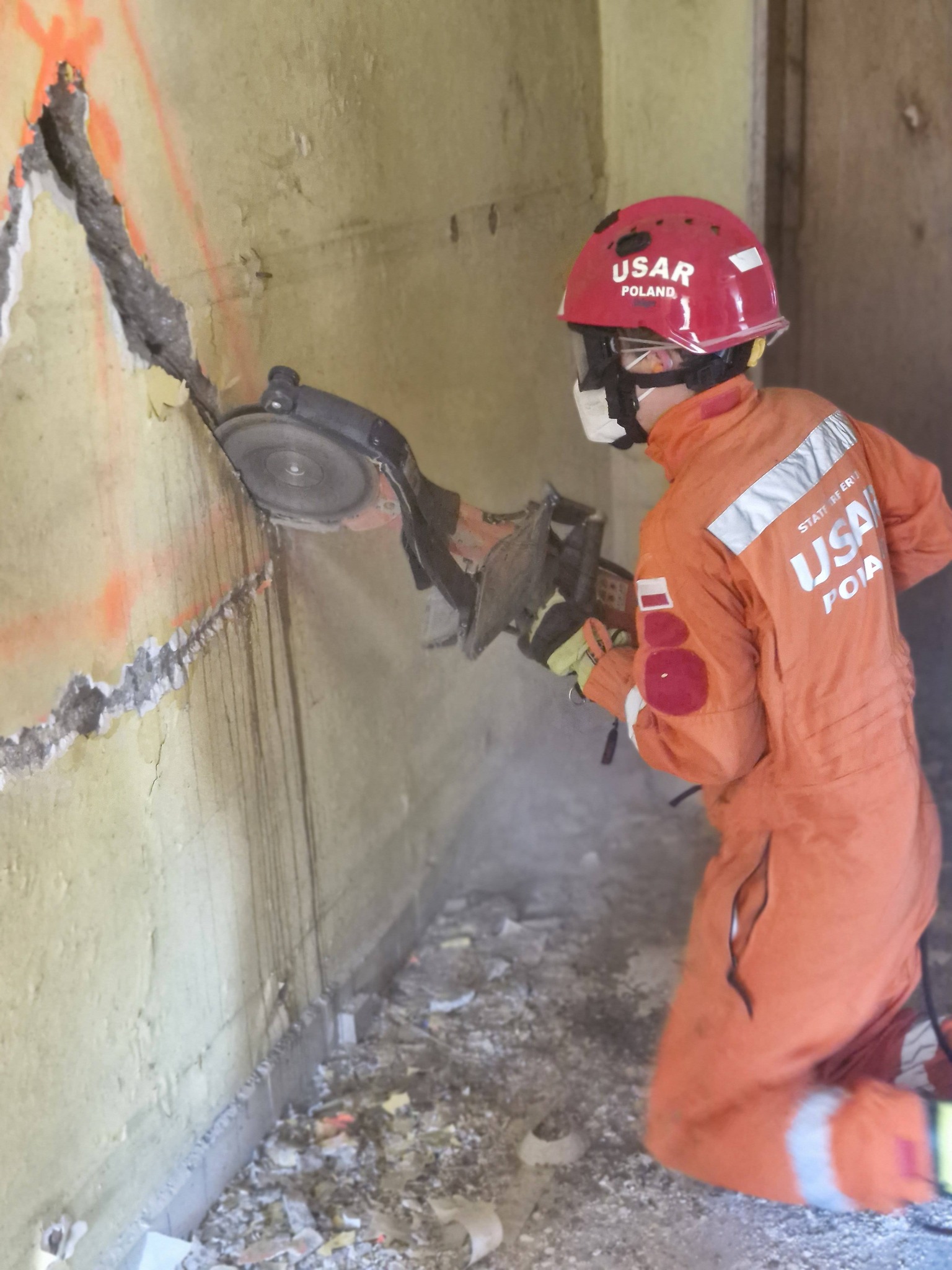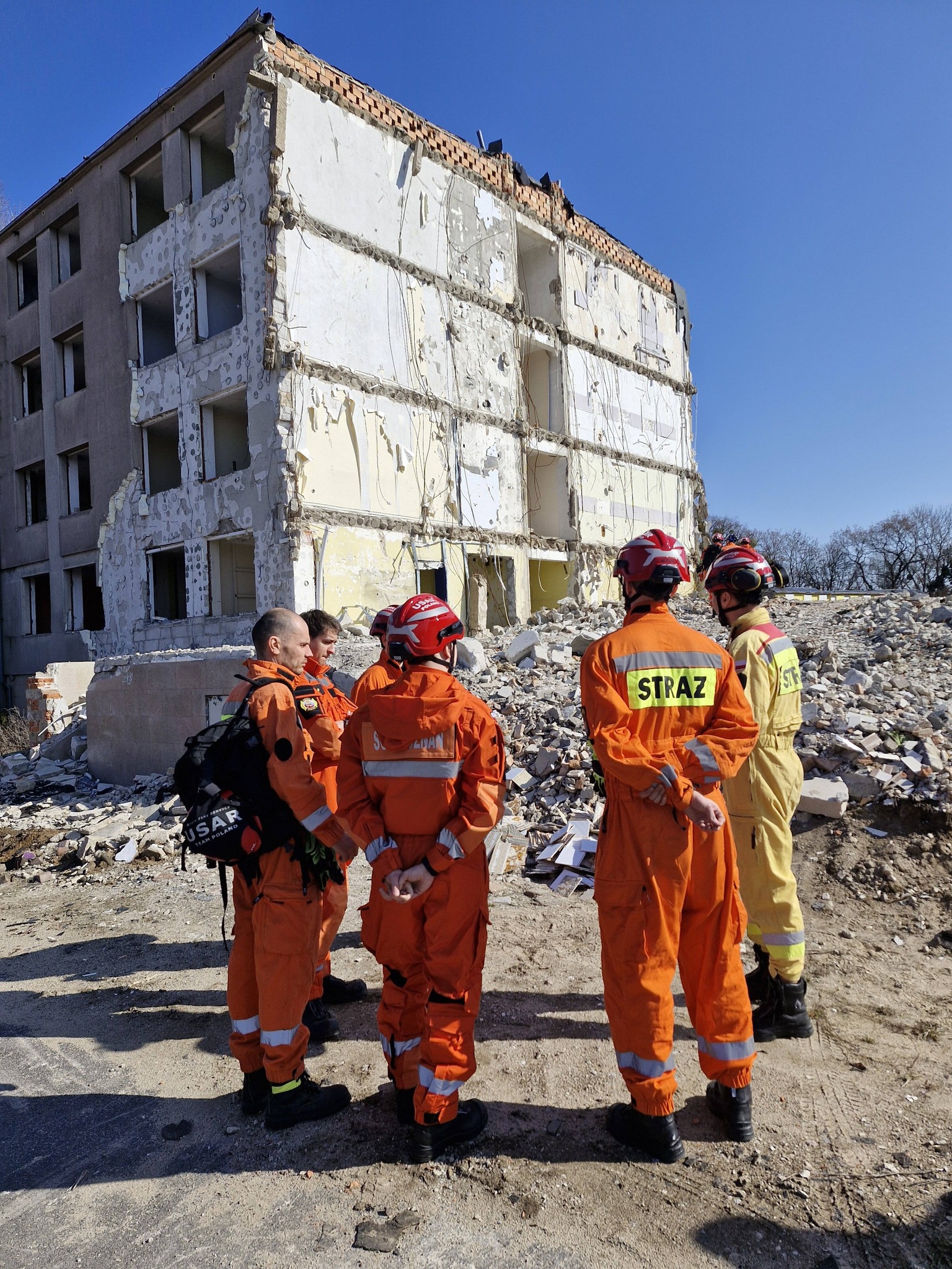Działania miały miejsce na terenie rozbiórkowym w którym brały udział kolejno wszystkie zmiany służbowe. We współpracy z Wojewódzkim Koordynatorem ds. działań poszukiwawczo-ratowniczych przeprowadzono ćwiczenia z zakresu: