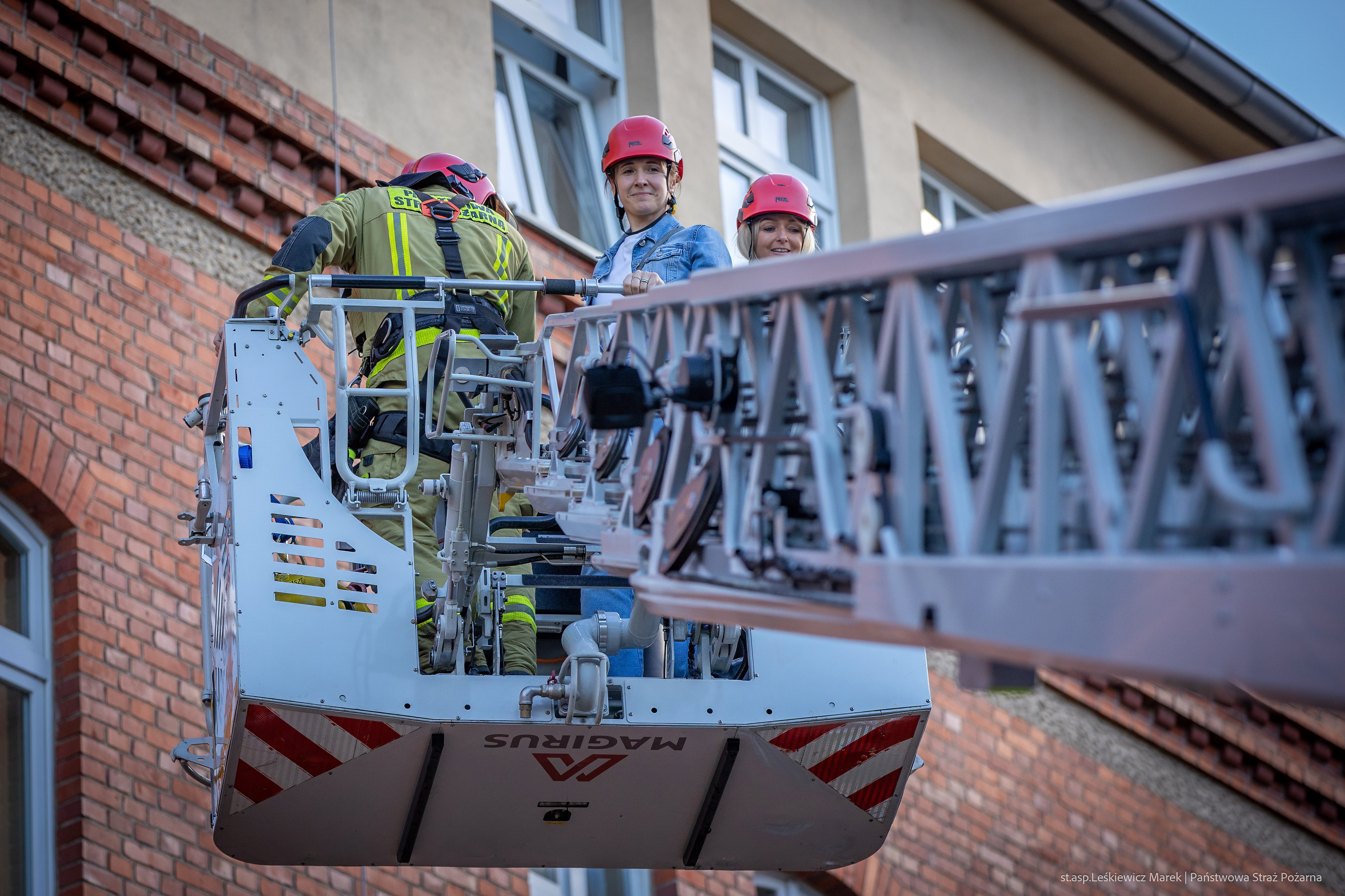 - przeszukania pomieszczeń i ewakuacji dwóch osób poszkodowanych z drugiego piętra z wykorzystaniem drabiny mechanicznej,