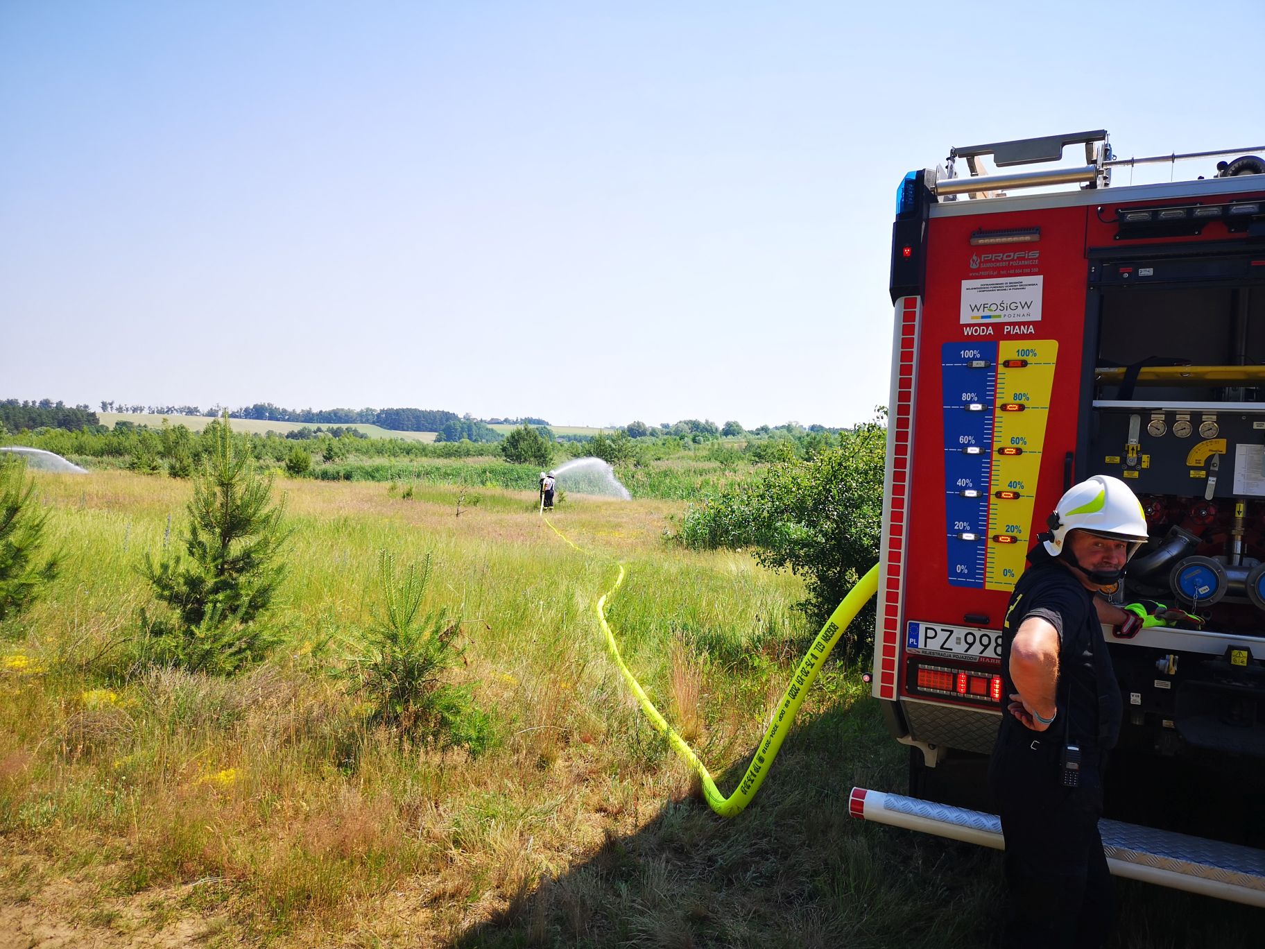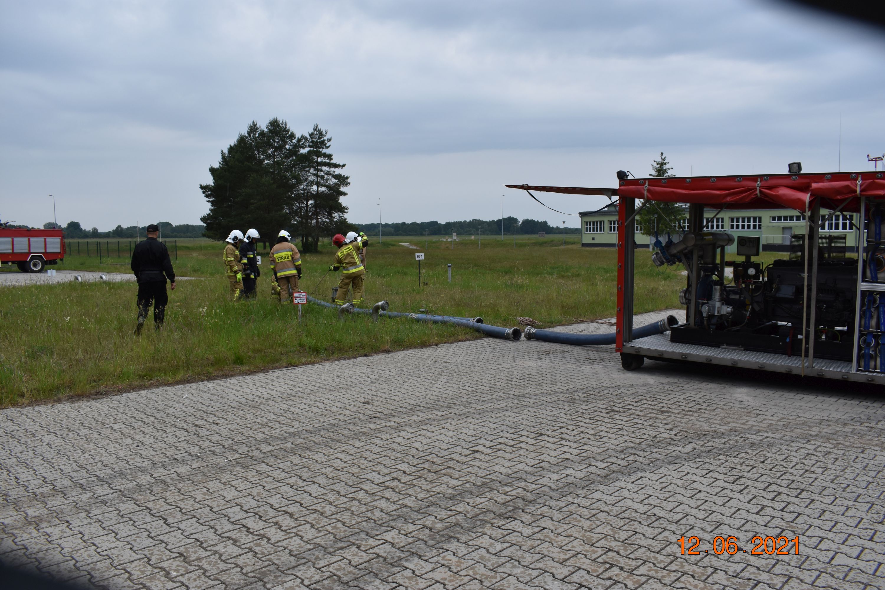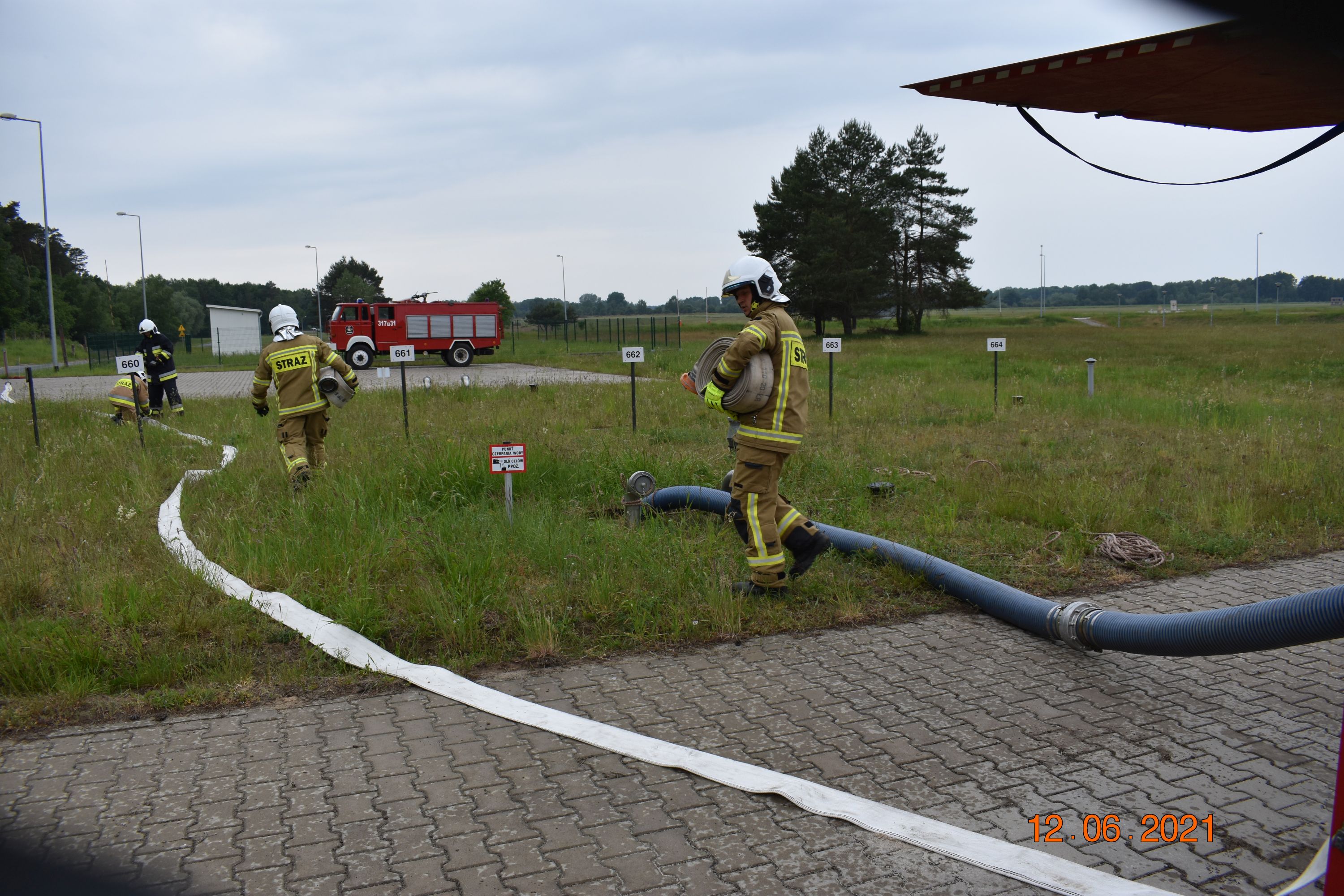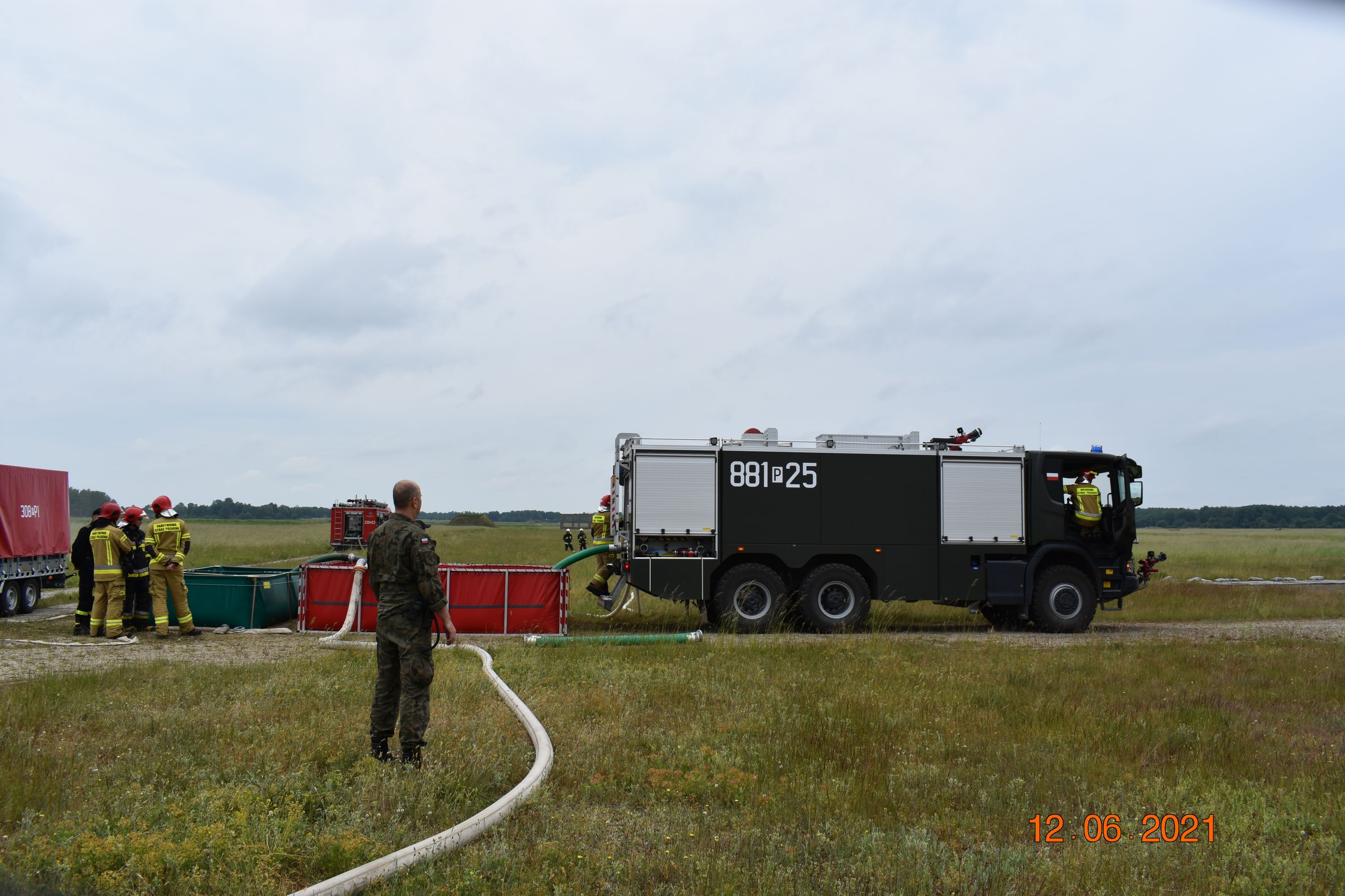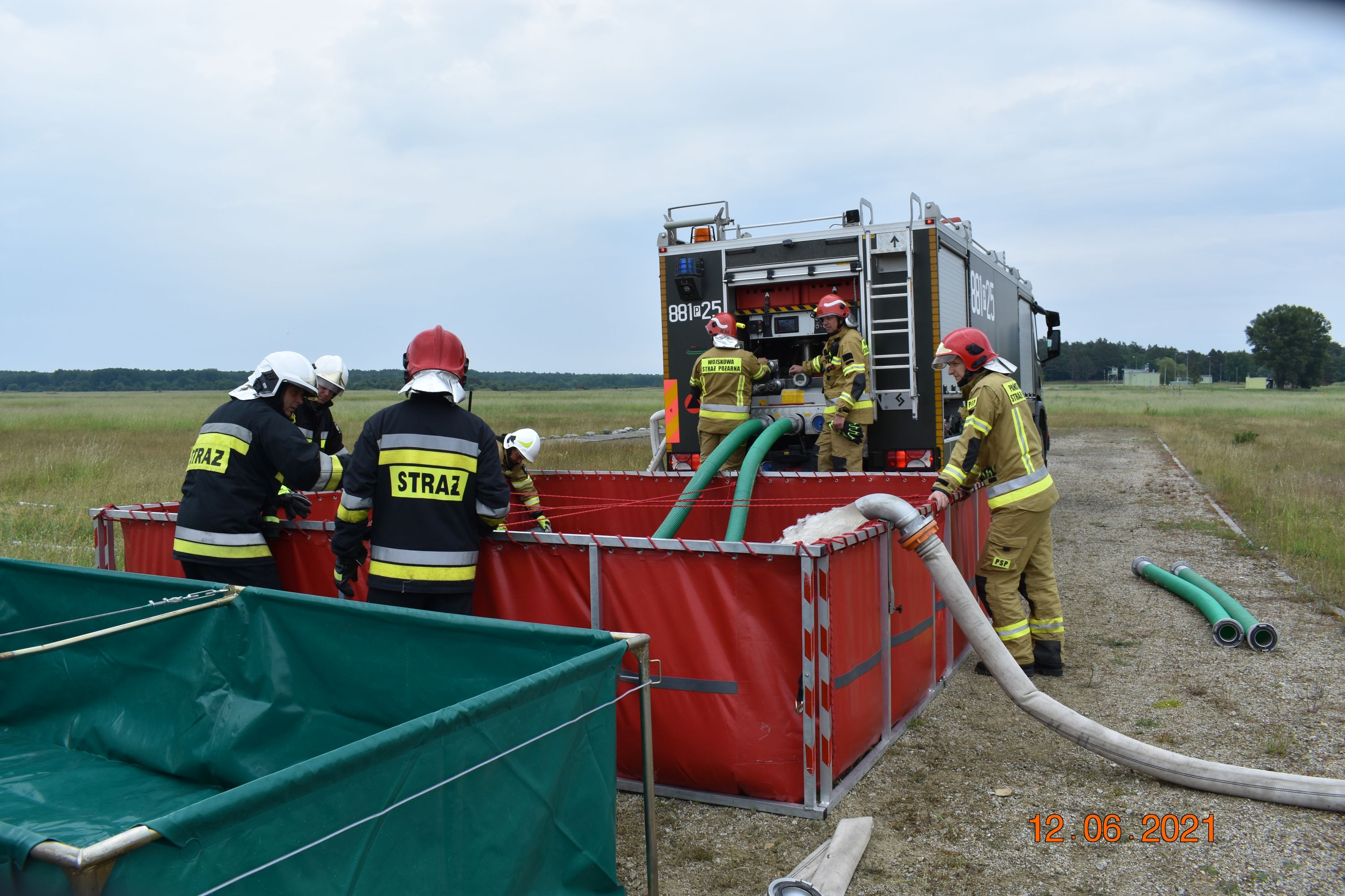Sobota 12.06.2021r. to ćwiczenia na terenie poligony Centrum Szkolenia Wojsk Lądowych w Biedrusku, w których udział brały JRG 8, OSP Czerwonak, OSP Promnice, Wojskowa Straż Pożarna z Biedruska oraz przedstawiciel Nadleśnictwa Łopuchówko. Zadanie polegało na zbudowaniu PCW wykorzystując do tego podziemne zbiorniki ppoż. przy strzelnicy czołgowej o łącznej pojemności 200m3 wyposażone w automatyczny systemem napełniania z pomp głębinowych. Jednocześnie budowano magistralę wodną, która dostarczyła wodę do stanowisk gaśniczych oddalonych o ok. 800m.