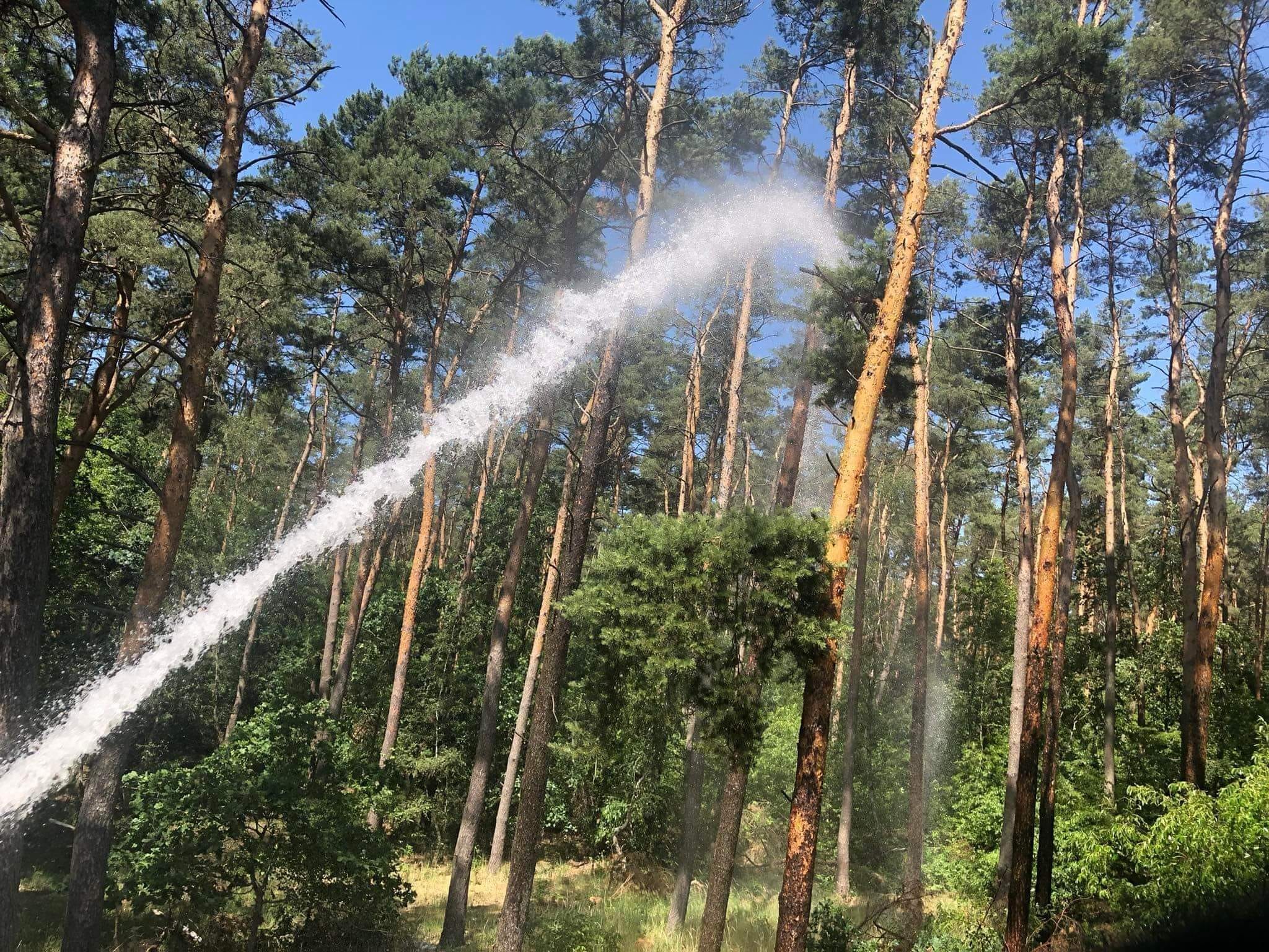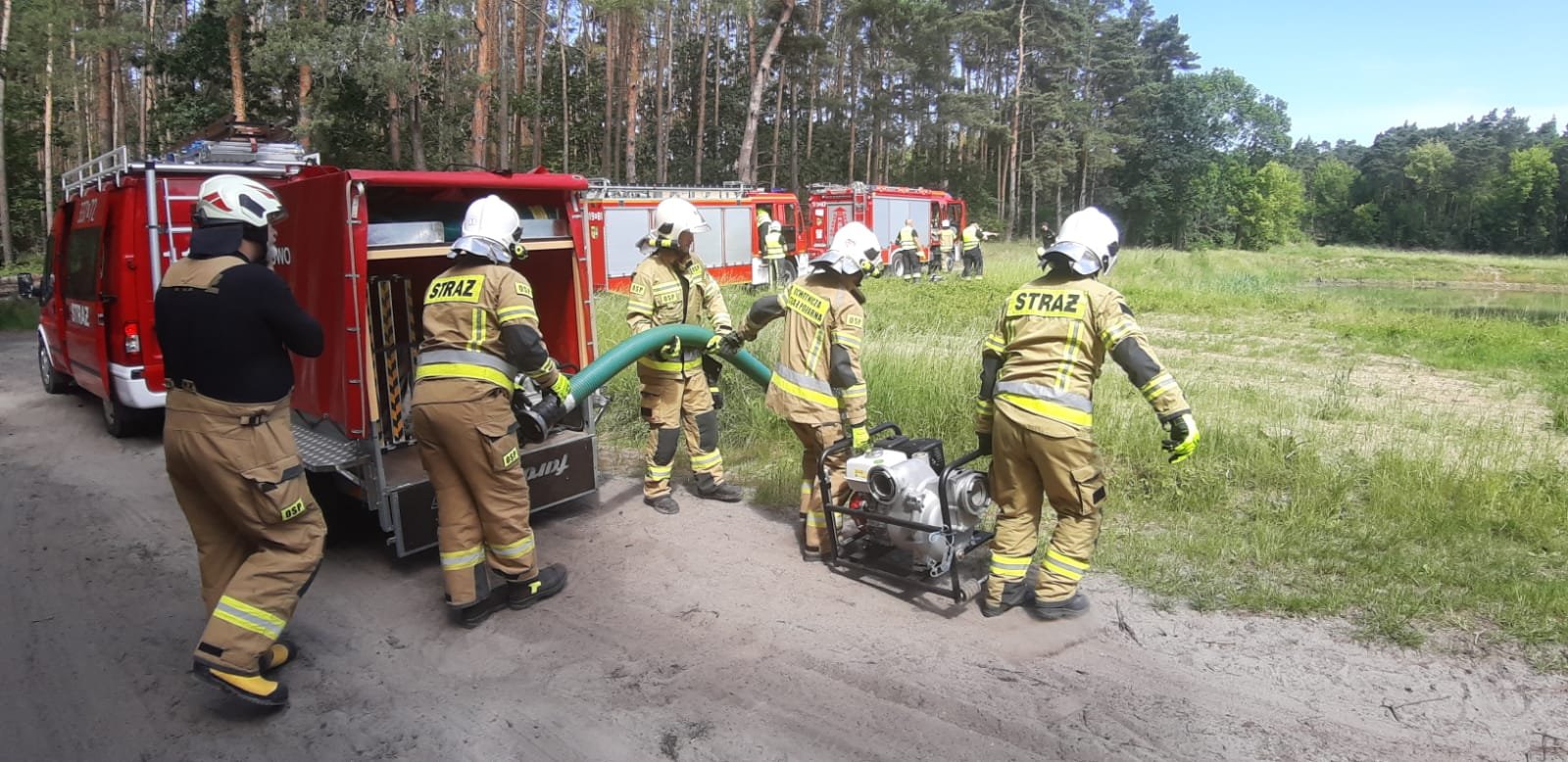 W sobotę, 18 czerwca 2022 roku, odbyły się ćwiczenia z zakresu podawania wody na duże odległości podczas pożaru lasu.