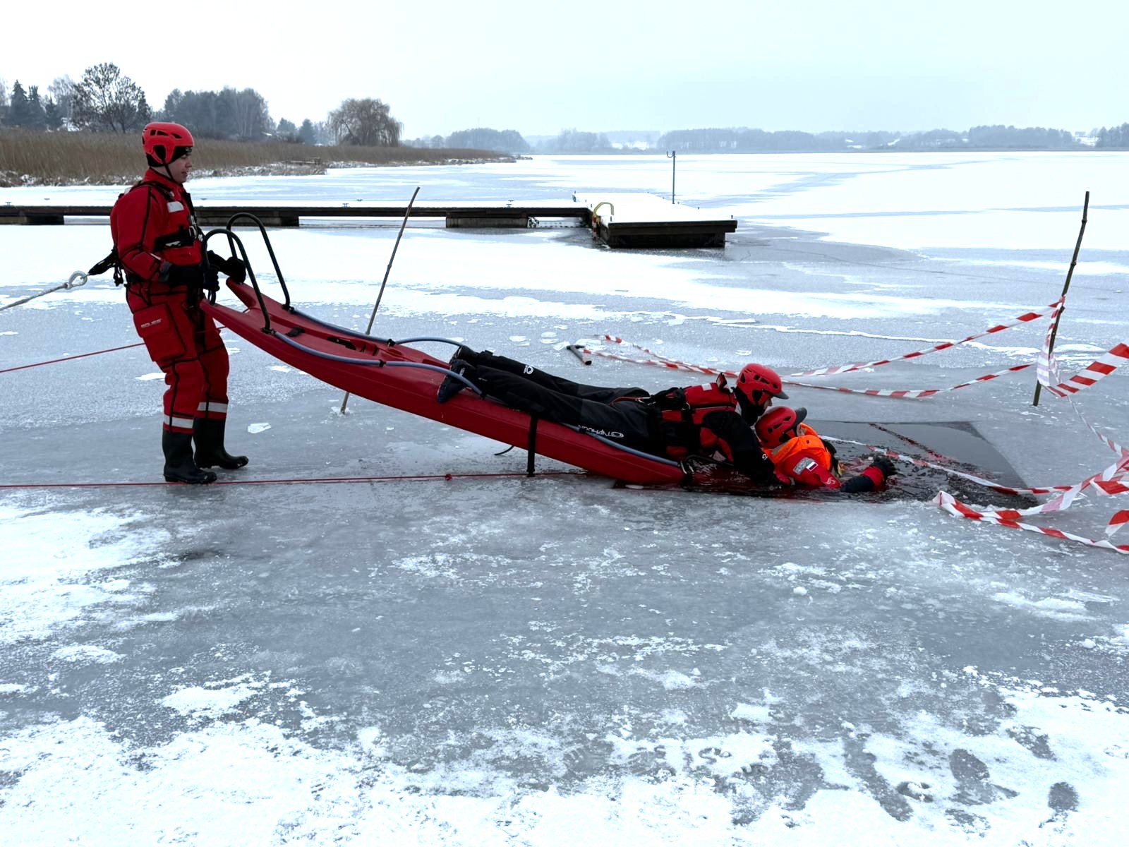 W trakcie ćwiczeń przećwiczono scenariusz podejmowania osoby poszkodowanej, pod którą doszło do załamania pokrywy lodowej. Strażacy doskonalili techniki bezpiecznego dotarcia do poszkodowanego, jego ewakuacji oraz zabezpieczenia ratowników przed wtórnym zagrożeniem.