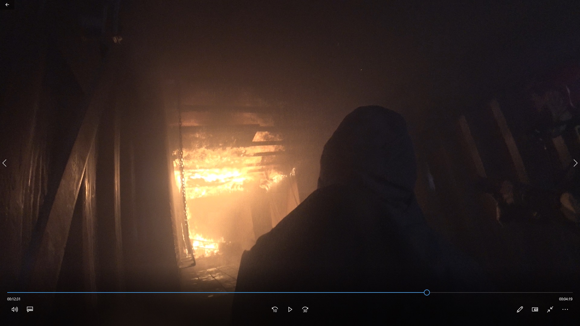 W drugiej części wykonano ćwiczenie praktyczne w natarciu na pożar wraz z ewakuacją poszkodowanych wykorzystując technikę zwaną „wentylacją dla życia”.