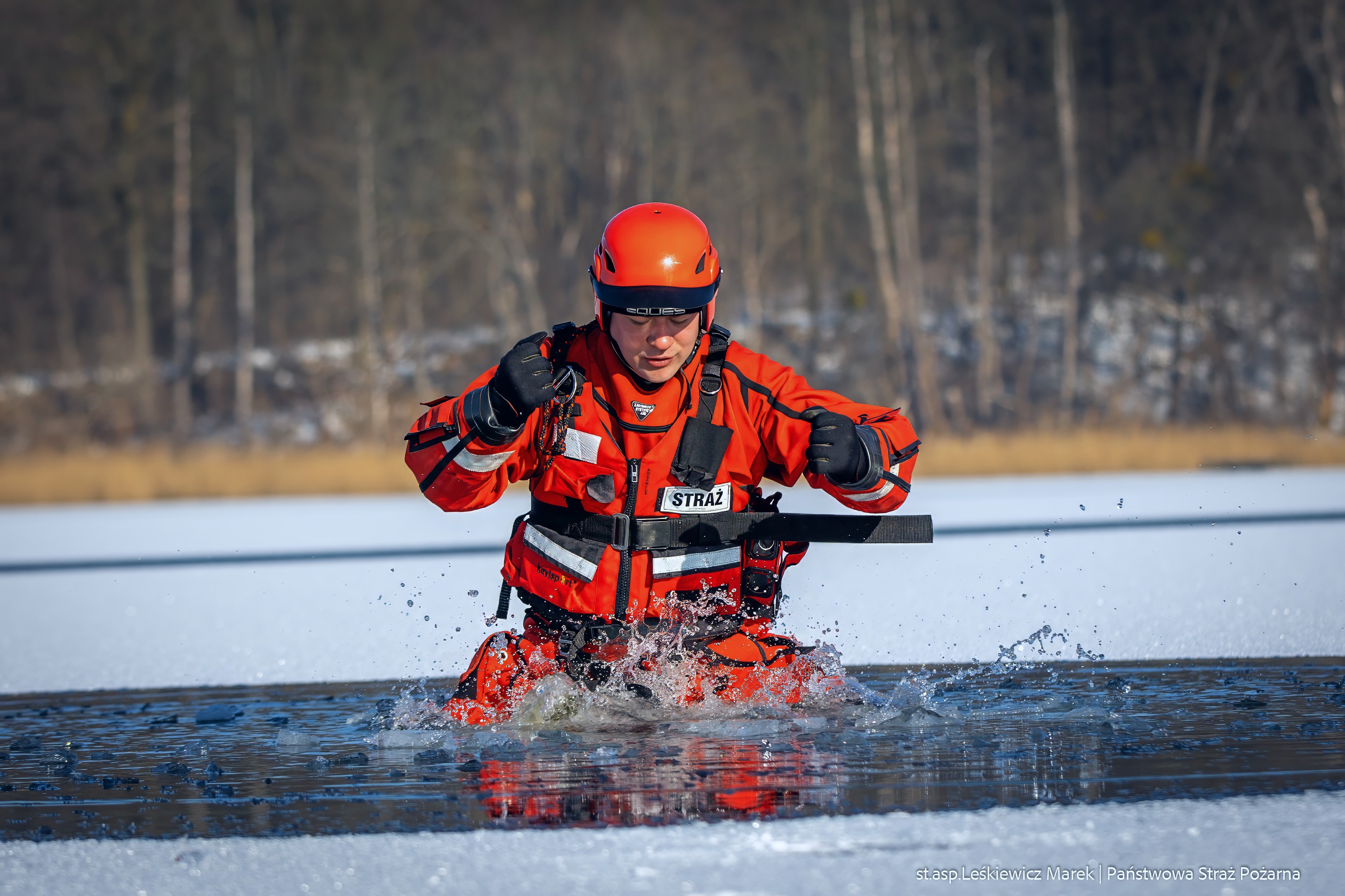Szkolenie z ratownictwa lodowego w zakresie podstawowym w Państwowej Straży Pożarnej ma na celu przygotowanie funkcjonariuszy do skutecznego i bezpiecznego udzielania pomocy osobom zagrożonym na oblodzonych zbiornikach wodnych. Program kursu obejmuje zarówno teorię, jak i praktykę, aby uczestnicy zdobyli niezbędną wiedzę oraz umiejętności w zakresie działań ratunkowych na akwenach zamarzniętych.