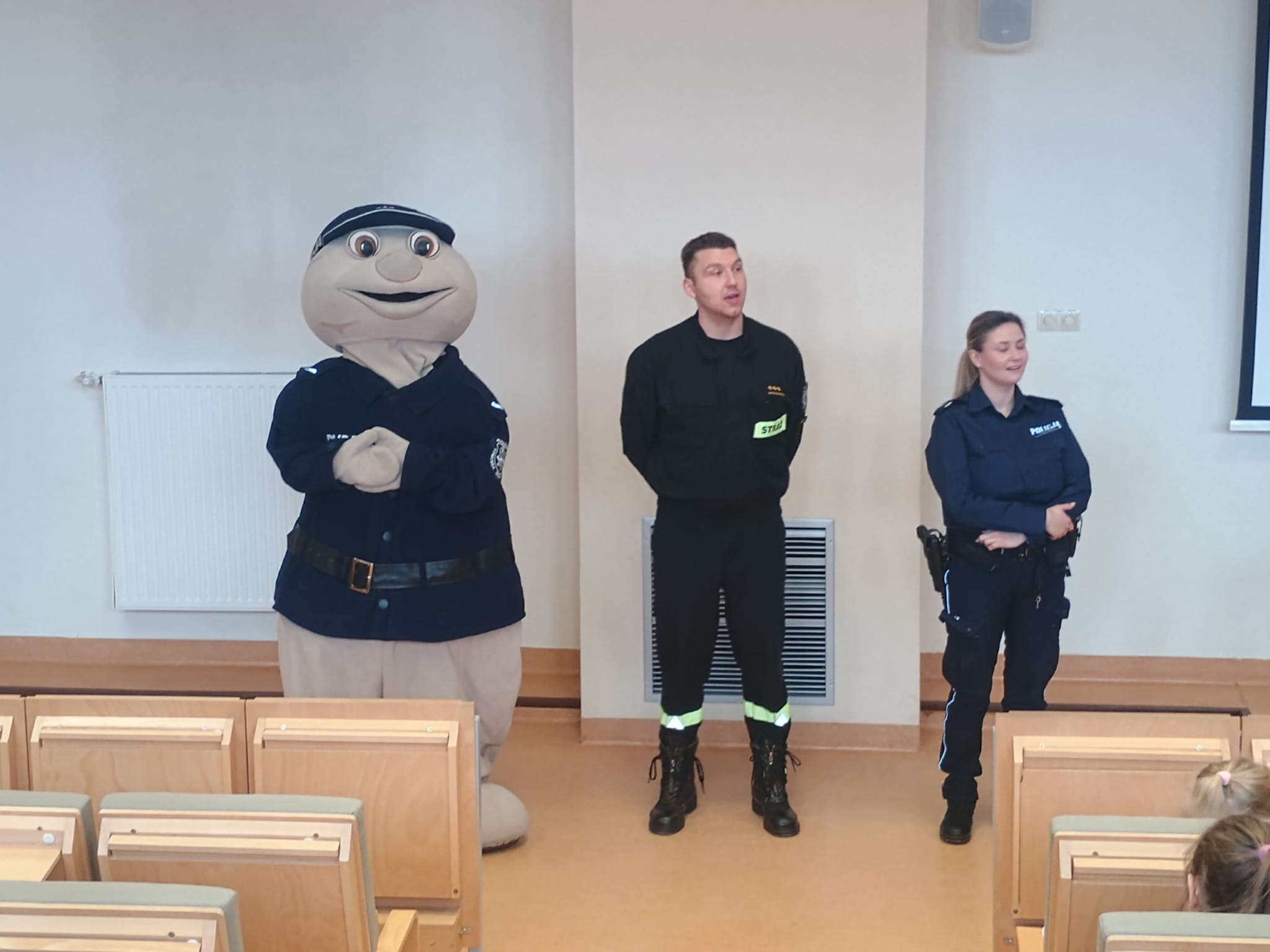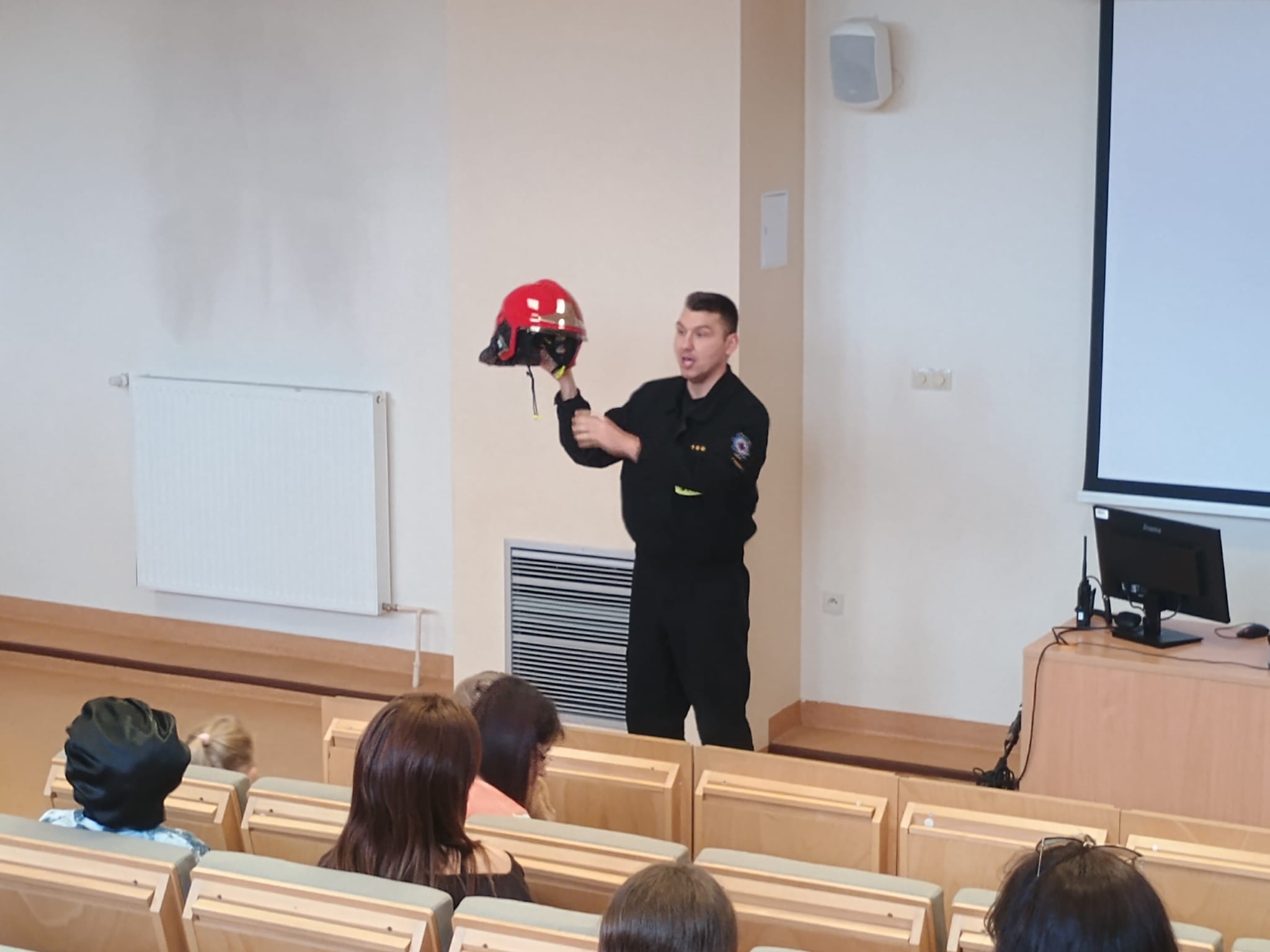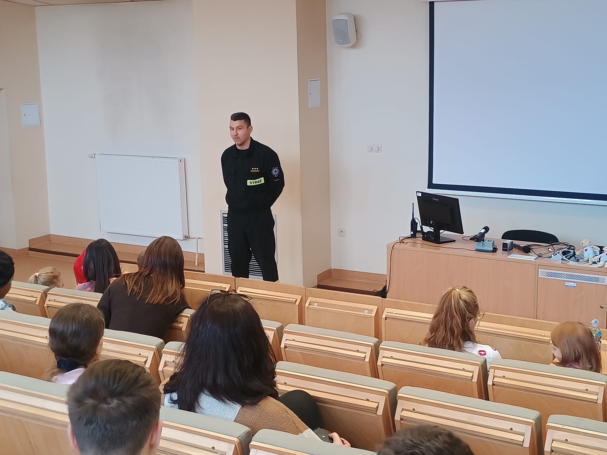 - Profilaktyka przeciwpożarowa: - strażacy przybliżyli tematykę zagrożeń związanych z tlenkiem węgla (czadem) oraz zasady ewakuacji z zadymionych pomieszczeń.