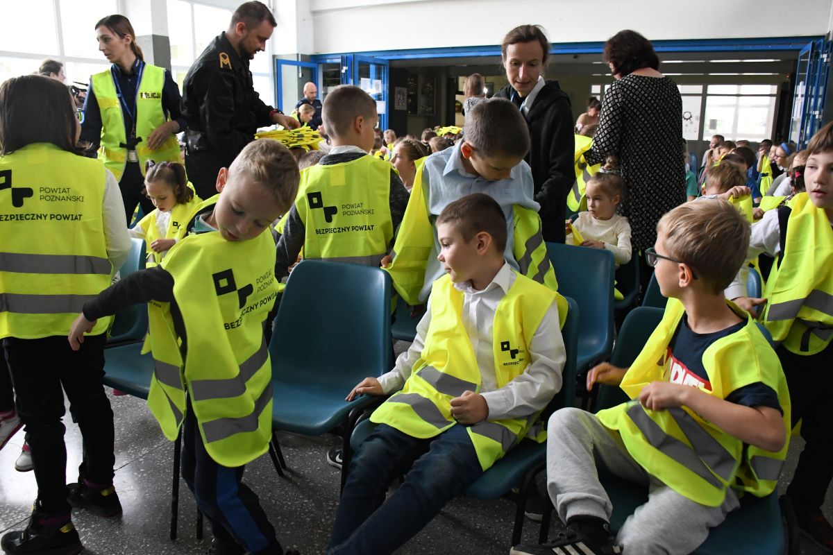 Aż 6 800 kamizelek odblaskowych trafi w najbliższych dniach do uczniów pierwszych klas wszystkich szkół podstawowych z powiatu poznańskiego. Inauguracja akcji pod nazwą „Bezpieczny pierwszoklasista” odbyła się w Szkole Podstawowej im. gen. Stefana Roweckiego „Grota” w Koziegłowach.