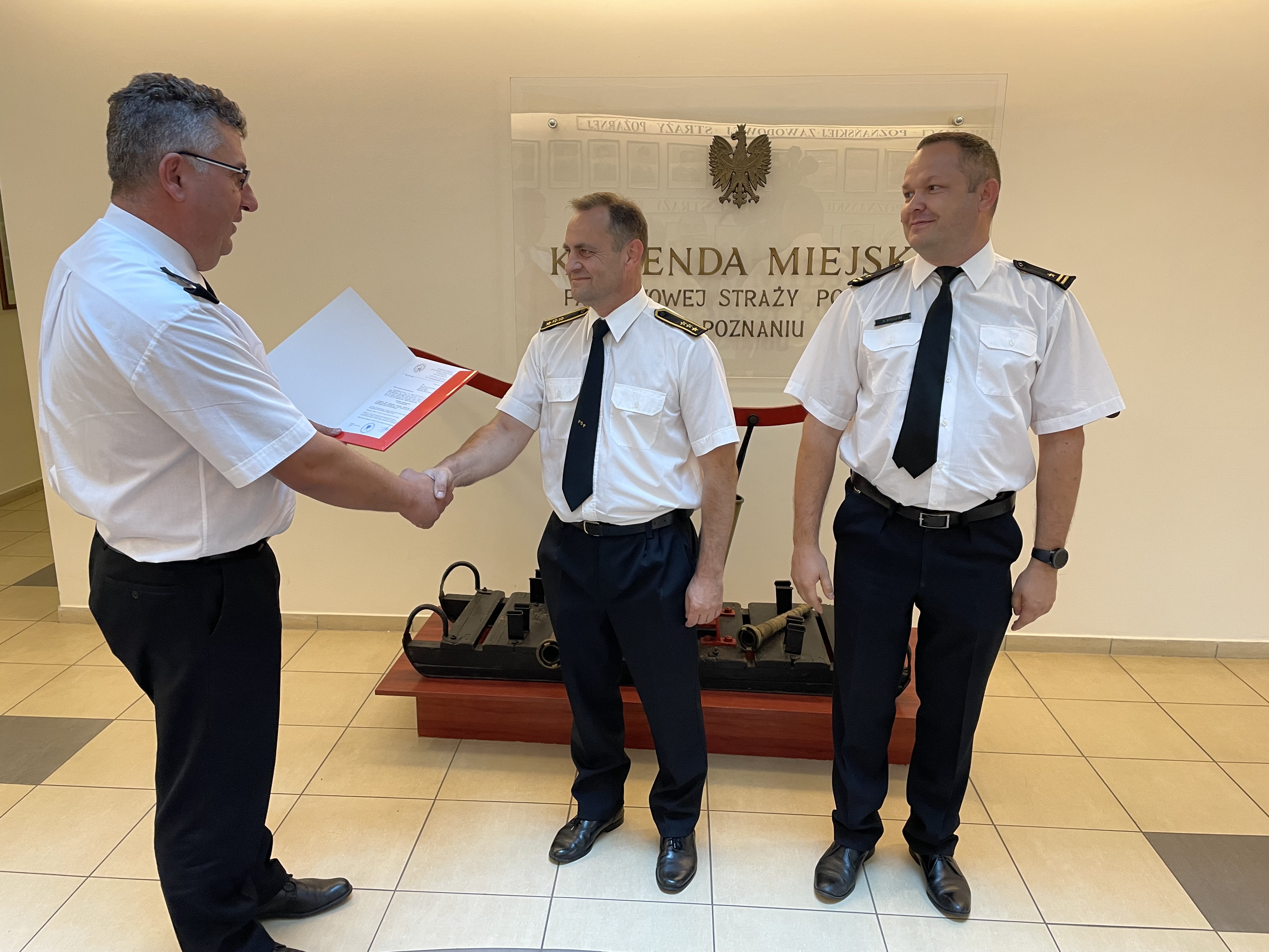 st. bryg. Jacek Michalak – Komendant Miejski PSP w Poznaniu 13 września br. spotkał się z funkcjonariuszem JRG 2 asp. sztab. Krzysztofem Grzelką obchodzącym jubileusz 25 lat pracy/służby. Komendant Miejski pogratulował funkcjonariuszowi wieloletniego zaangażowania oraz rzetelnej i sumiennej służby.