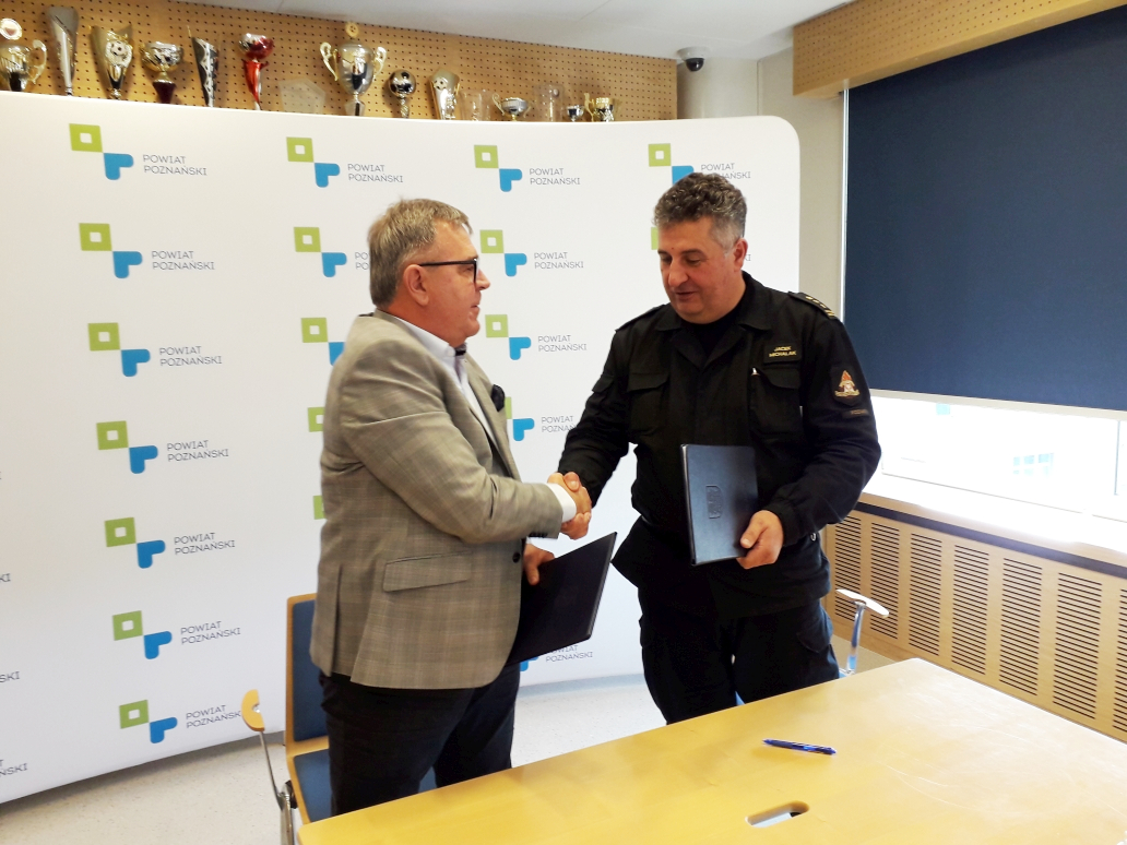 Na koniec spotkania, Starosta Poznański Jan Grabkowski oraz Komendant Miejski PSP w Poznaniu st. bryg. Jacek Michalak podpisali regulamin tegorocznej edycji programu edukacyjnego z zakresu bezpieczeństwa pożarowego „Czujka tlenku węgla może uratować Twoje życie”. Konkurs skierowany jest do mieszkańców Powiatu Poznańskiego. Co dwa tygodnie w Starostwie Powiatowym w Poznaniu komisja konkursowa przyzna nagrody (w postaci czujki tlenku węgla) 10 uczestnikom.