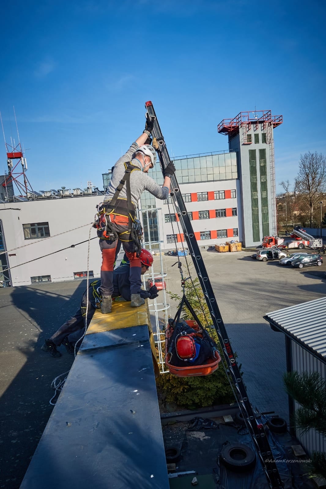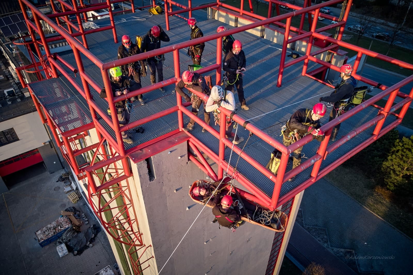 W programie kursu nie brakowało zajęć praktycznych - zgodnie z założeniami niesamowitych instruktorów, miało być dużo ćwiczeń praktycznych poprzedzonych oczywiście wykładem z teorii taktyki prowadzenia działań ratowniczych przy wykorzystaniu technik linowych. Instruktorzy nie zawiedli i zapewnili kursantom intensywne zajęcia na różnych obiektach, na których poznawali tajniki ratownictwa wysokościowego.