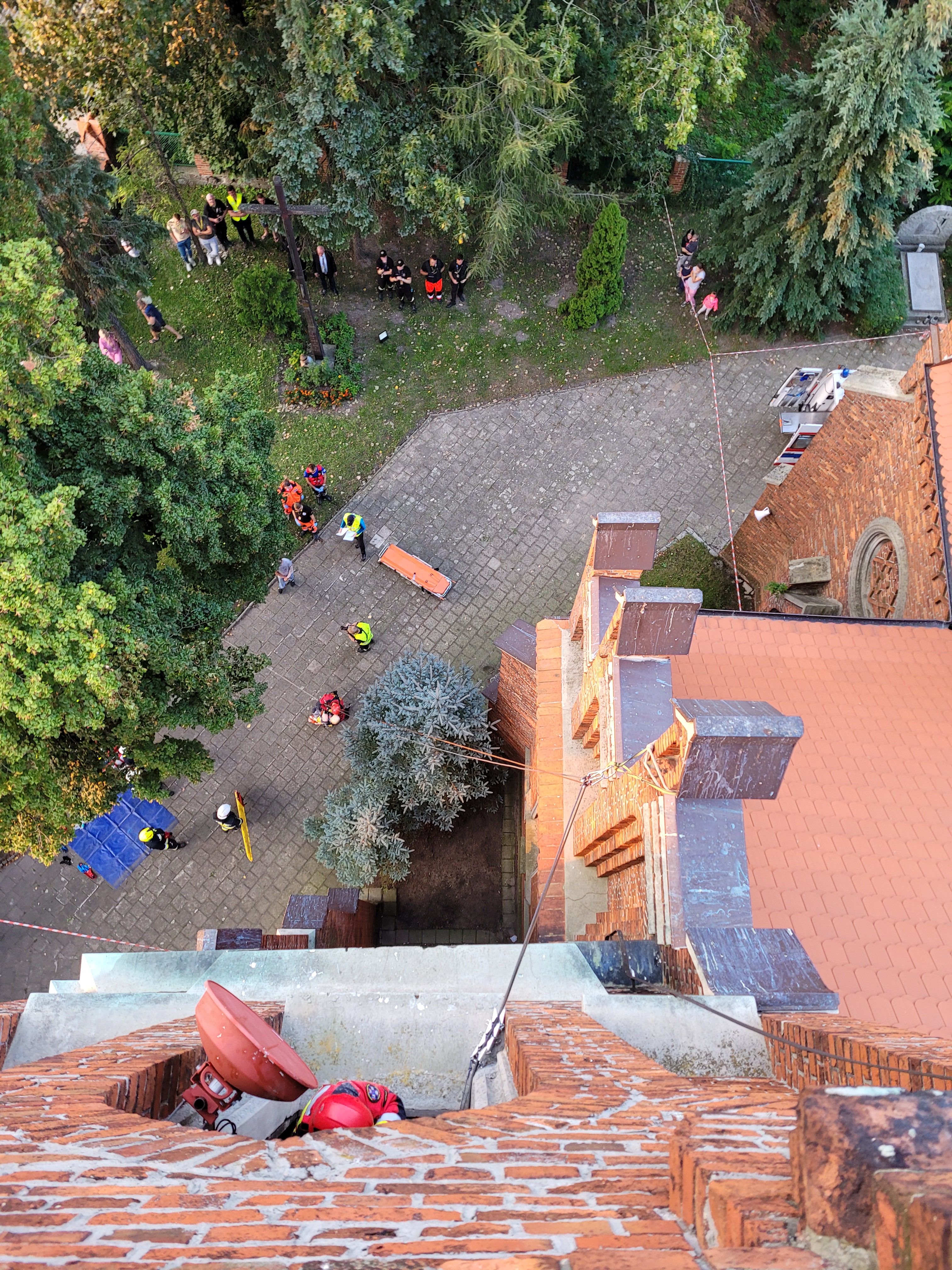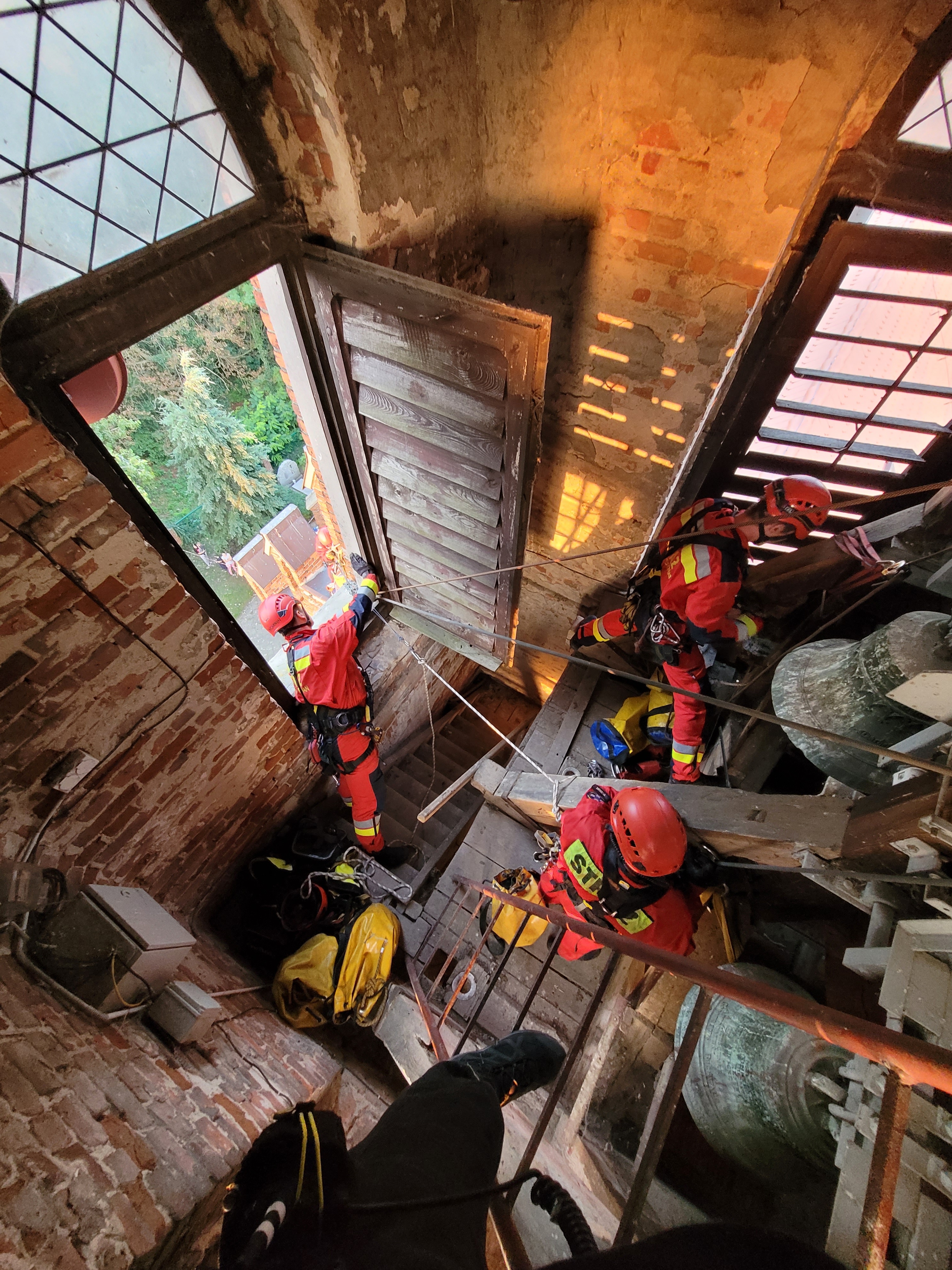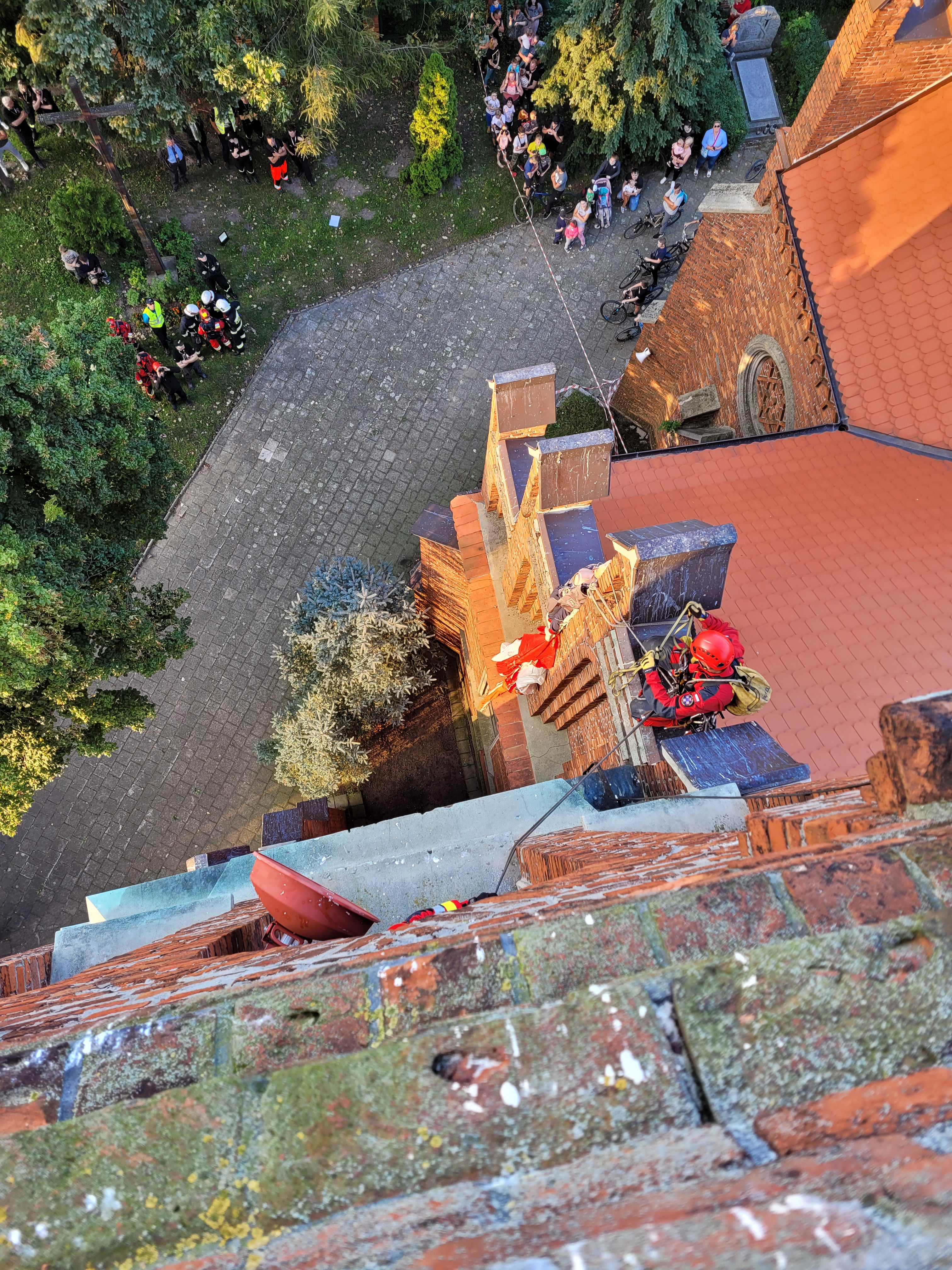 Zadaniem jakie przypadło SGRW Poznań było dotarcie do poszkodowanego „spadochroniarza” który zawisł na jednej z wież kościoła w miejscowości Mokronos.