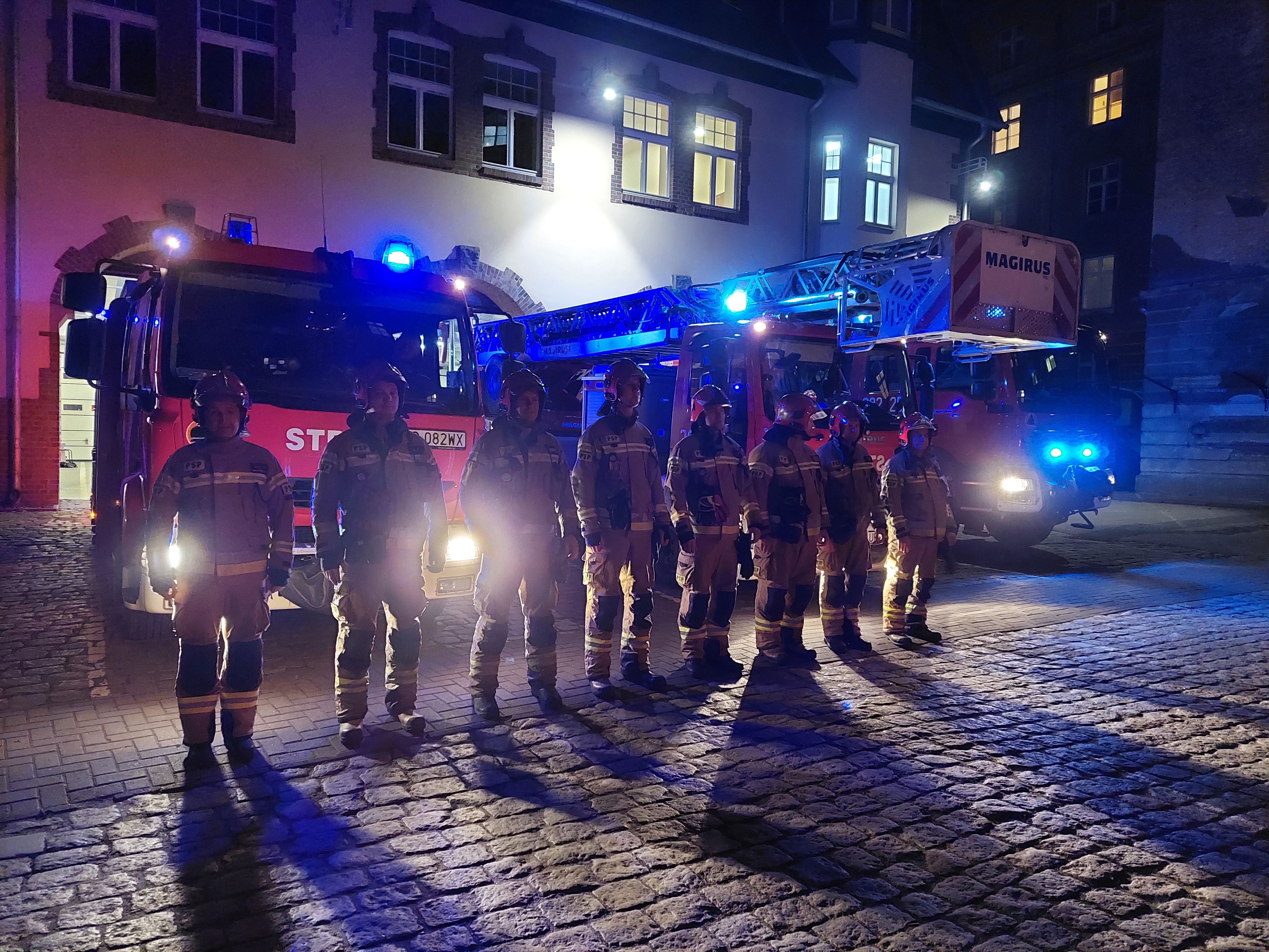 Strażacy z Komendy Miejskiej Państwowej Straży Pożarnej w Poznaniu minutą ciszy uczcili tragicznie zmarłych druhów z OSP Czernikowo.