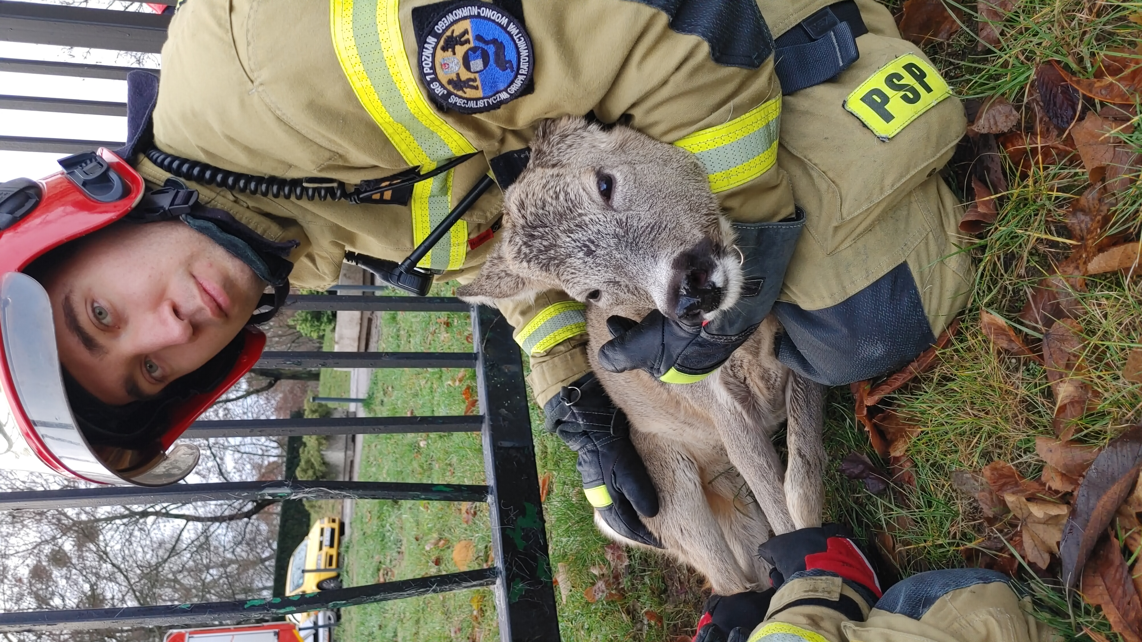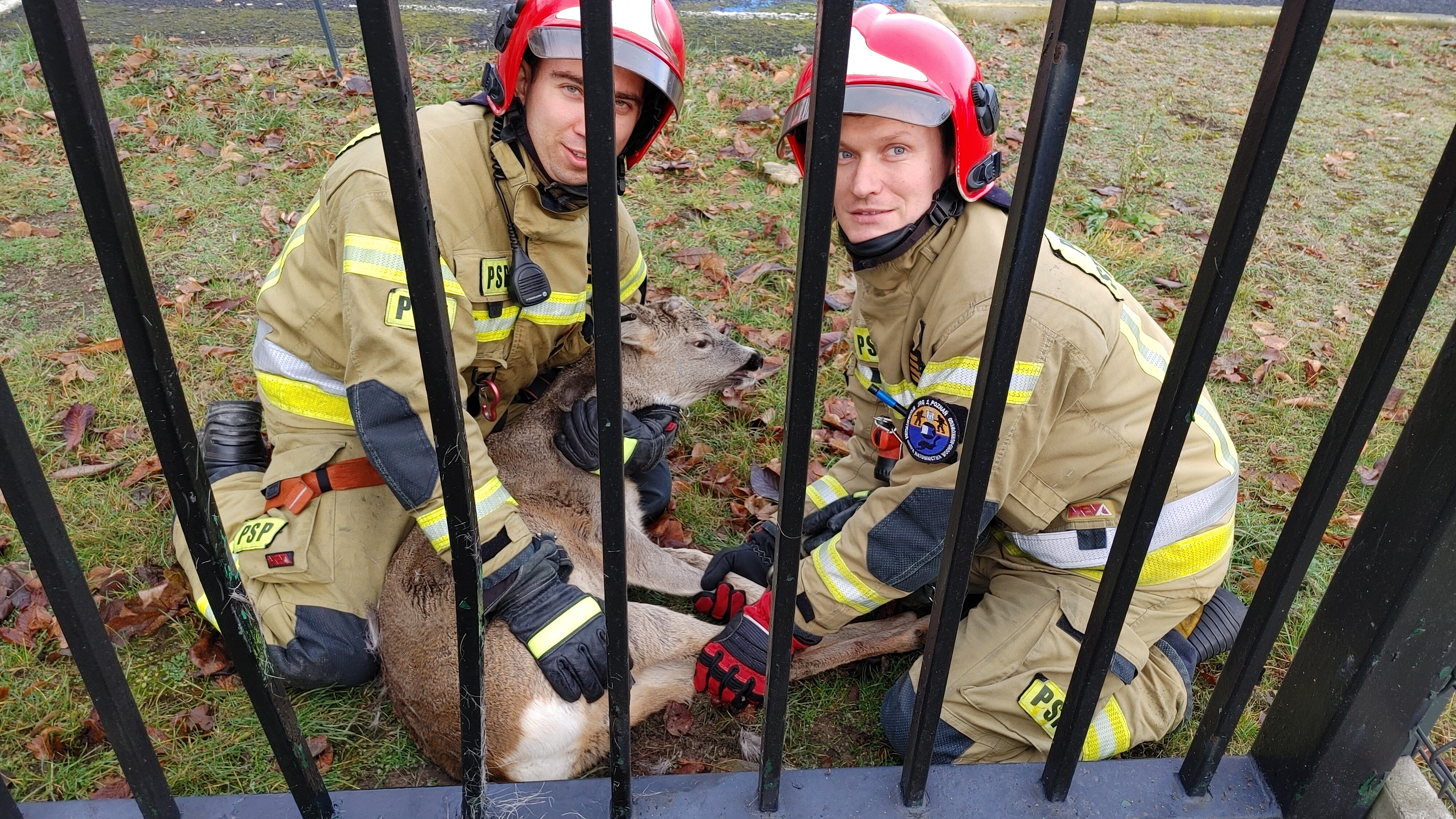 Zastęp z Jednostki Ratowniczo-Gaśniczej nr 1 został zadysponowany do nietypowego zdarzenia. Po przybyciu na miejsce okazało się, że pomocy potrzebuje sarna, która utknęła w metalowym ogrodzeniu. Działania strażaków polegały na zabezpieczeniu miejsca zdarzenia oraz uwolnieniu zwierzęcia przy pomocy narzędzi hydraulicznych. Sarnę w bardzo dobrej kondycji przekazano pracownikowi Centrum Zarządzania Kryzysowego, który po przebadaniu wypuścił zwierzę do lasu.